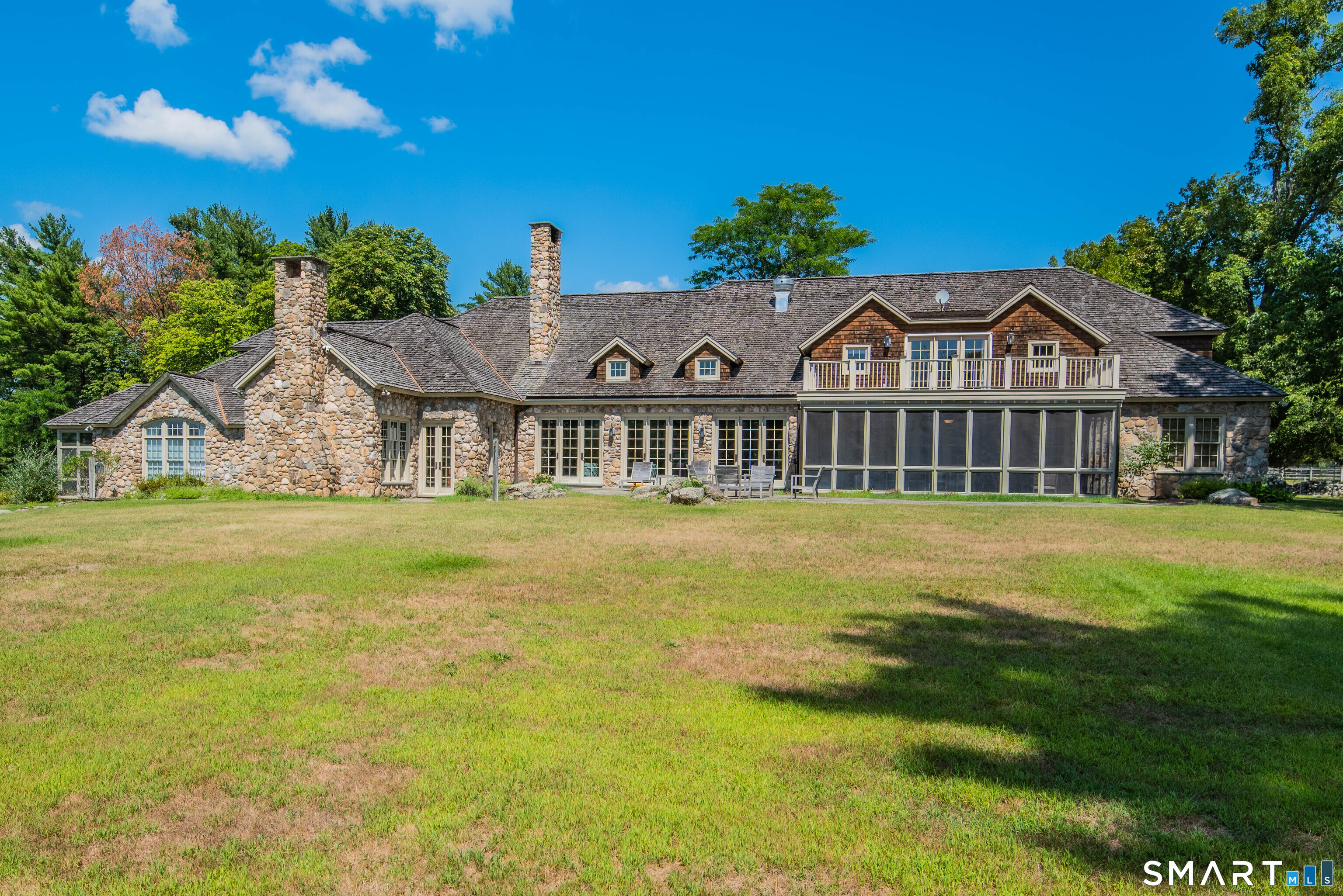 Welcome to this extraordinary stone and shingle country estate, nestled on 70 acres of private retreat. This property boasts spectacular western views, ponds, a greenhouse, and a horse barn. The meticulously crafted residence showcases exquisite taste, featuring high-end finishes and top-of-the-line appliances in the granite chef's kitchen, which is complemented by a butler's pantry and a spacious dining area. The formal dining room, captivating great room, and elegant living room feature soaring ceilings, slate floors, and two impressive stone fireplaces that stretch from floor to ceiling. With 7 generous bedrooms and 5. 2 bathrooms-including two screened-in sunrooms, ample French doors, and Palladian windows-this home is filled with natural light throughout. Step outside to take in breathtaking views from the expansive slate patio and large deck, perfect for entertaining or quiet relaxation. The finished lower level provides additional living space with a full kitchen and two mudrooms-one with a separate laundry area, shower, and wash sink-offering both functionality and luxury. Truly a hidden gem designed for refined living. Schedule your private tour today and discover this unparalleled estate. See agent-to-agent remarks for additional details. Short-term rentals only: $3, 500/day with a minimum 5-day booking and a maximum lease term of 28 days. Tenant is responsible for paying a 16 percent short-term rental tax. You can also lease house without horse farm around 3 acres.