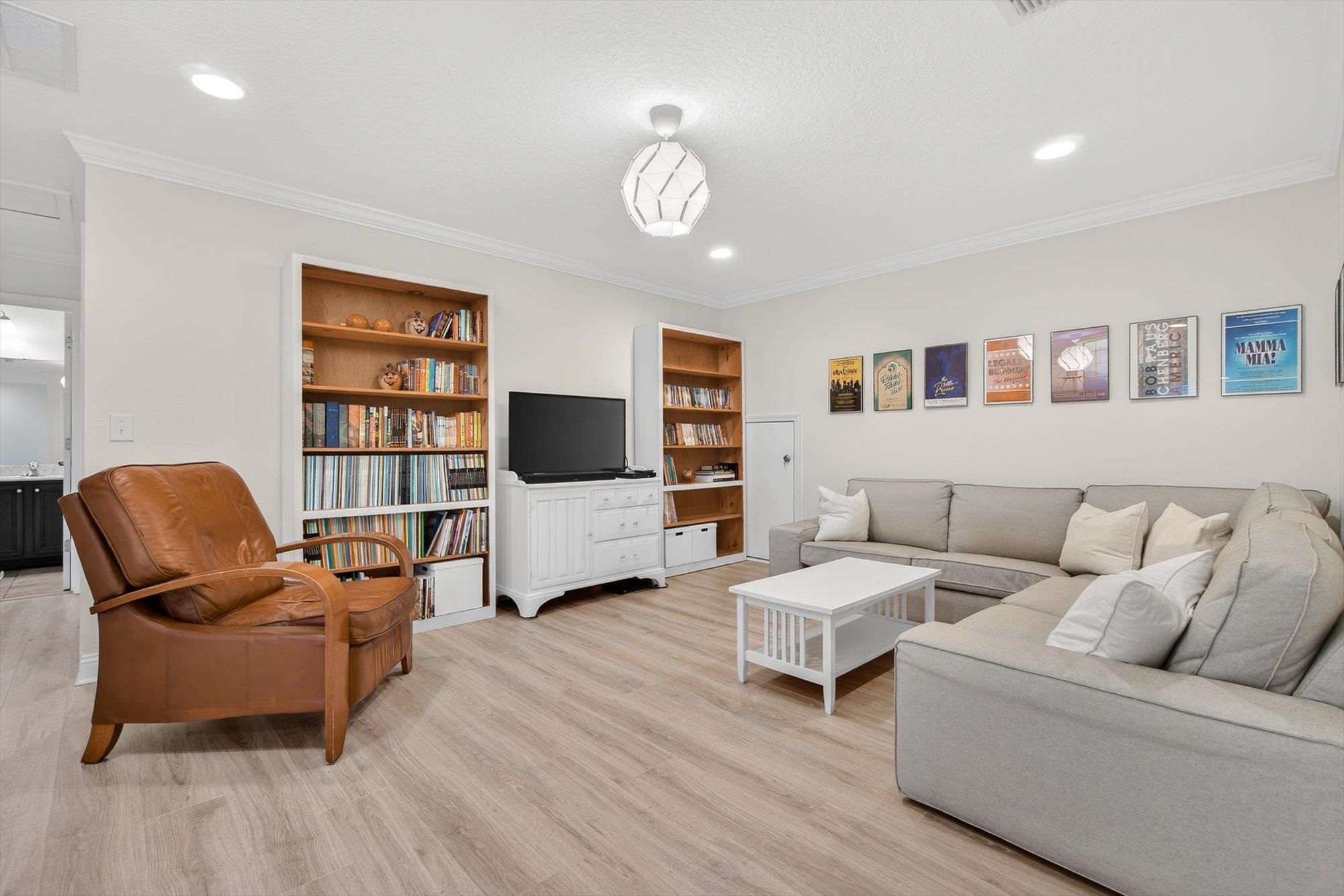 Tucked into a lush, thoughtfully landscaped setting, this beautifully updated 4-bedroom, 2. 5-bath pool home offers the ideal blend of comfort, functionality, and relaxing outdoor privacy. The main level is designed for everyday living, featuring a spacious primary suite, an open kitchen, and a welcoming living area. Upstairs, you’ll find three additional bedrooms and a second living room, giving everyone their own space to spread out. Solid white oak stair treads lead to the upper level where the rooms all have Pergo Portfolio WetProtect Laminate Floors. Outside, just imagine the pool parties! The saltwater pool is just the right size for easy maintenance while still offering plenty of room to unwind, complete with a sun shelf perfect for lounging in the Florida sunshine. The backyard has been thoughtfully enhanced with a variety of trees, including magnolias, fruit trees, and holly, creating a serene, private retreat you’ll never want to leave.