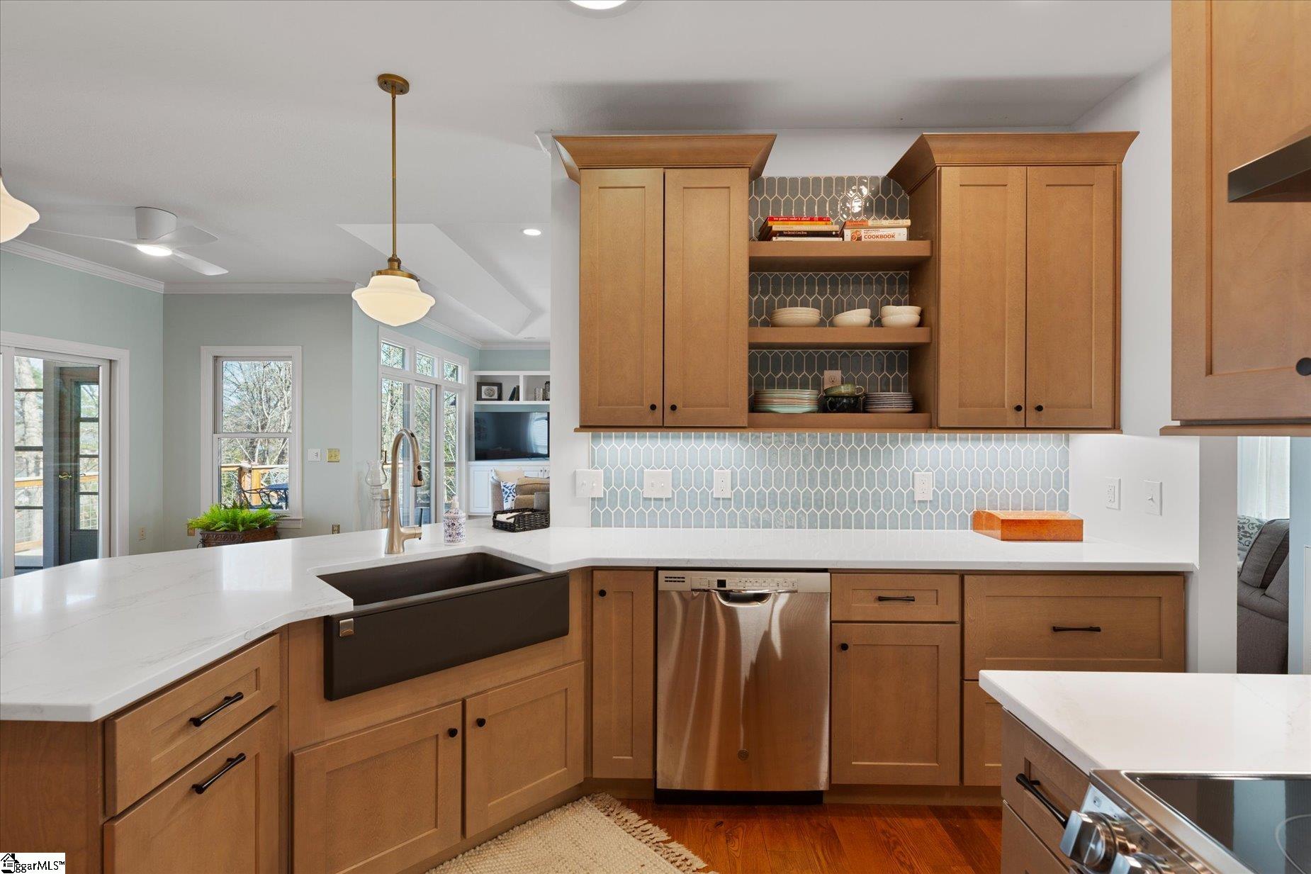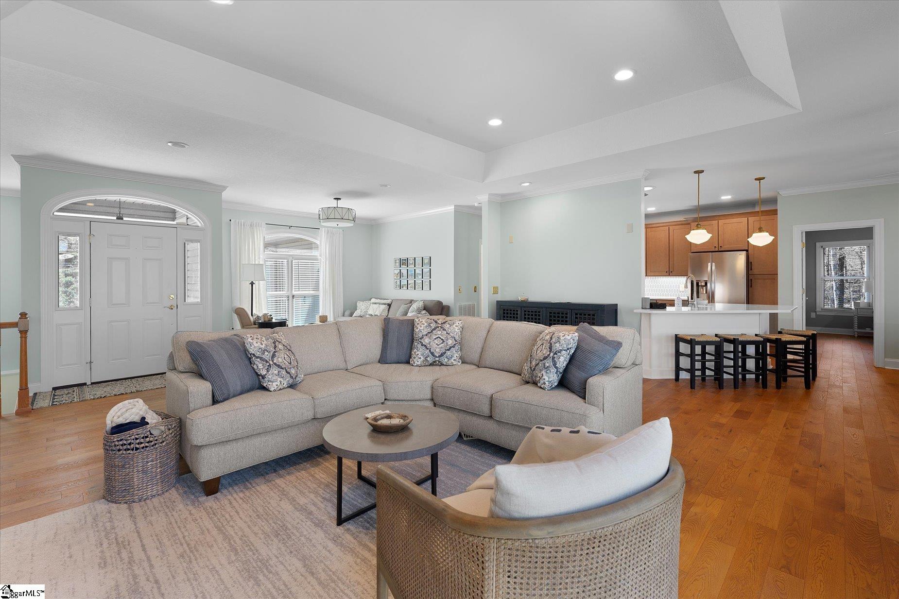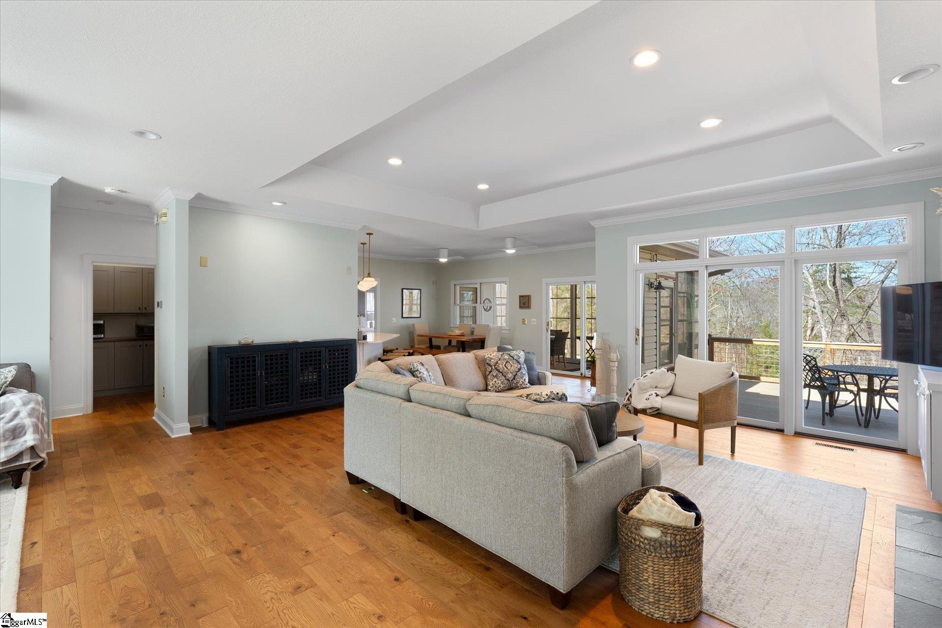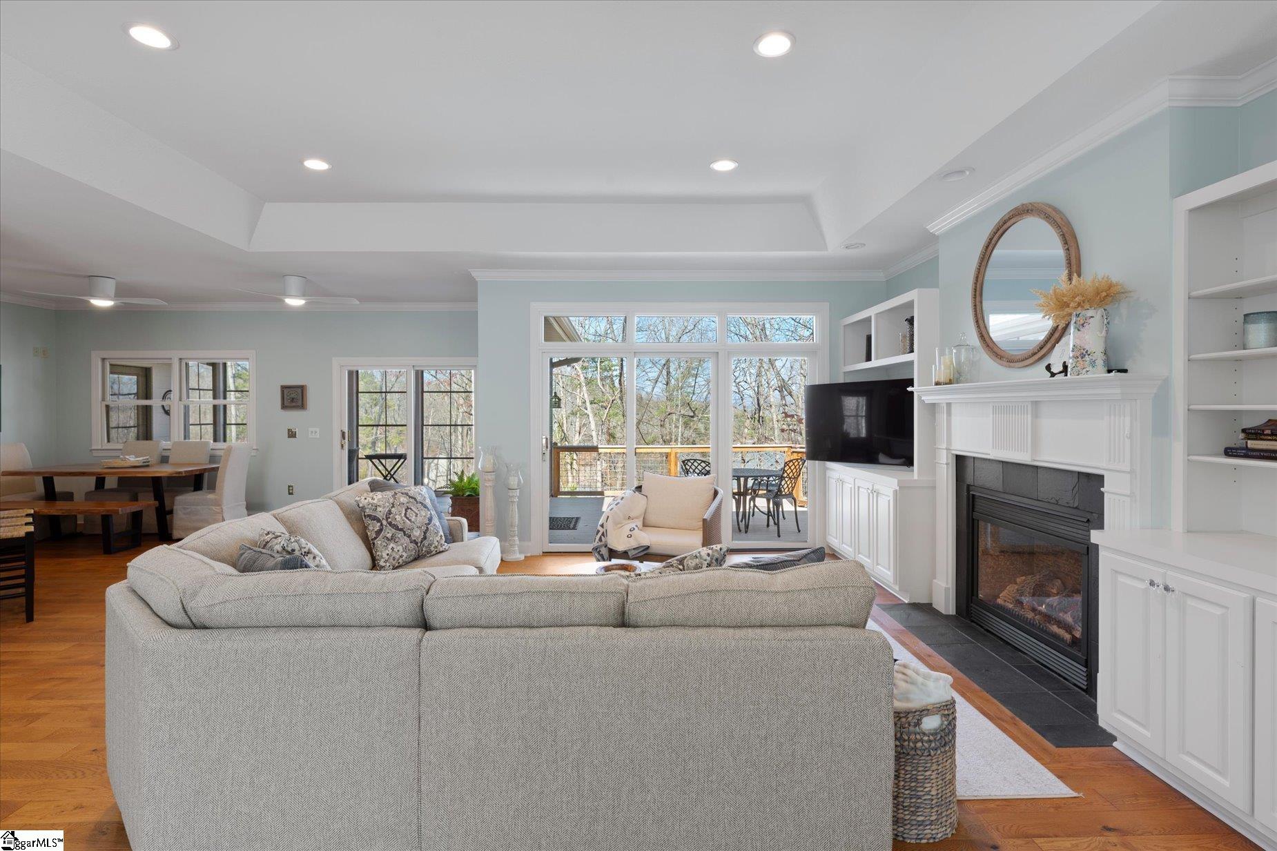 Welcome to 23 Iron Clad Drive in the sought-after Keowee Key Resort Community—a move-in ready mountain-lake retreat offering comfort, style, and effortless living. This beautifully updated home could be sold fully furnished, making it the perfect turnkey getaway or full-time residence in one of Lake Keowee’s premier communities. Designed with an open floor plan and filled with natural light, the home creates a peaceful spa-like atmosphere surrounded by quiet, wooded views. The main living areas feature updated hardwood flooring, custom built-ins, and two gas fireplaces that add warmth and character. Just off the living space, the four-seasons room and grilling deck offer relaxing spots to enjoy seasonal lake views and the tranquility of nature. The custom kitchen has been thoughtfully updated with quartz countertops, designer plumbing and lighting fixtures, a touchless kitchen faucet, and an updated walk-in pantry for exceptional storage and functionality. Tube skylights in the kitchen and primary bath bring in beautiful natural light throughout the day. The primary suite is a true retreat, featuring a heated bathroom floor, a heated and jetted freestanding soaking tub, and elegant finishes designed for relaxation. Throughout the home you’ll find solid wood three-panel interior doors and quality craftsmanship that adds to the home’s refined feel. Modern conveniences include dual HVAC systems with smart thermostats and remote access, as well as a garage door opener with MyQ technology for remote operation. The lower level offers abundant storage space, ideal for keeping everything organized. Outside, the low-maintenance yard requires no grass upkeep, allowing you to spend more time enjoying the lifestyle Keowee Key offers. The home is just a five-minute walk to the scenic Leisure Trail and Lake Keowee, providing easy access to nature, water views, and community amenities. With its peaceful setting, thoughtful upgrades, and turnkey convenience, 23 Iron Clad Drive offers the perfect blend of lake lifestyle and everyday luxury in Keowee Key.
