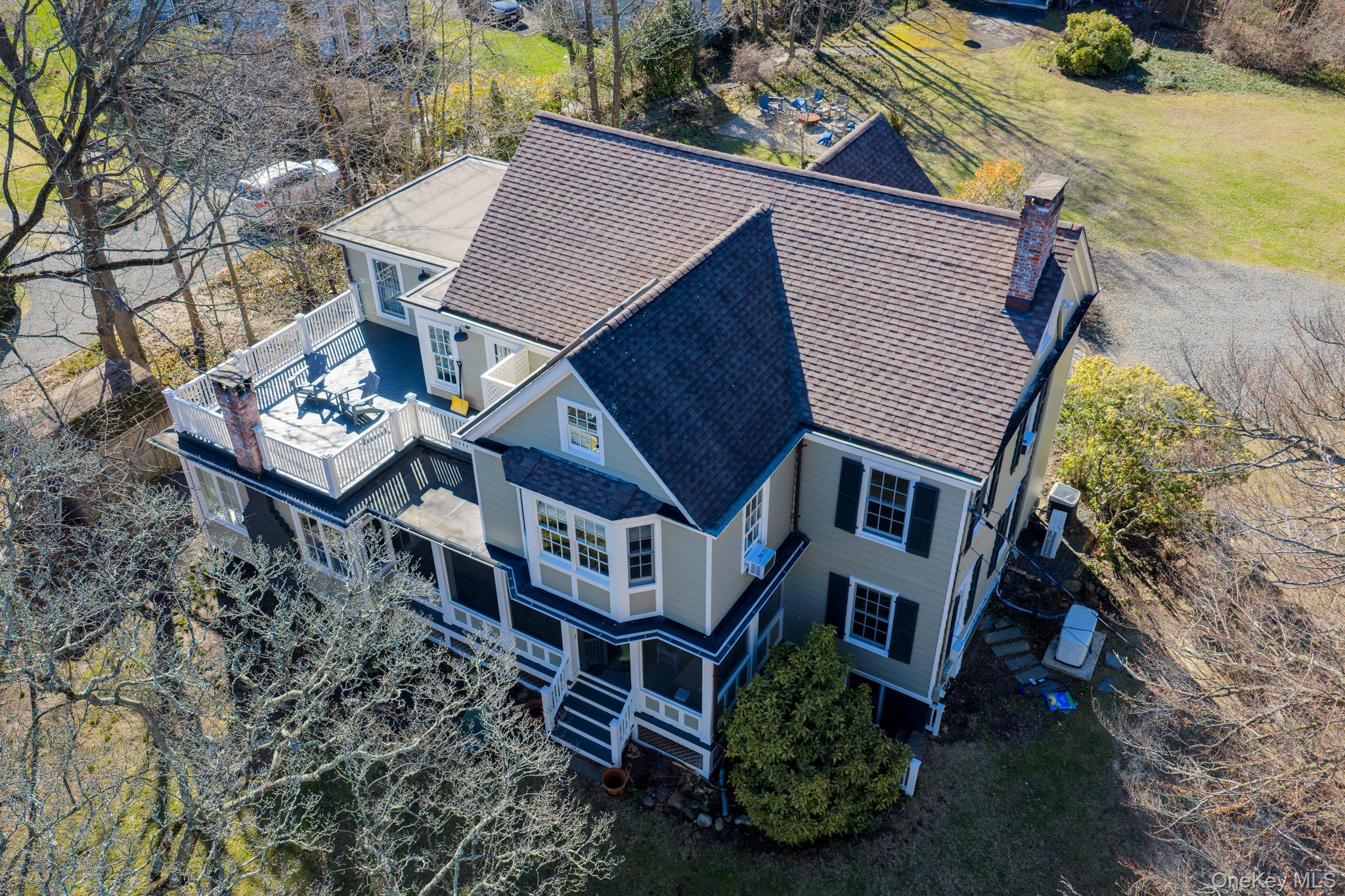 Gracious c. 1866 center hall colonial on a rare one-acre property on one of South Nyack’s most coveted blocks offers a rare blend of historic character, modern comfort, and creative possibilities. Originally sited to face the Hudson River — when the river was the road — the house still still captures water views from its east-facing rooms. Over time, the house was thoughtfully reoriented, and what was once the front porch is now a spacious screened porch overlooking the river. This inviting space connects directly to the kitchen and family room, creating an easy flow for everyday living and entertaining. The kitchen was expanded and renovated, and the family room features a wood-burning fireplace. The one-acre property includes a restored two-story barn with heat and central air, offering flexible space for a studio, office, or recreation. Inside the main house, the second floor is arranged in two wings. The primary suite occupies the south wing and includes a dressing area with built-ins, a full bath, and a private balcony with river views and an outdoor shower. Additional bedrooms and a bonus room with a balcony are located in the north wing. With over 2, 000 additional square feet across a finished attic, basement playroom, and the barn, there is room to grow and create. Updates by the current owner include renovated bathrooms, upgraded plumbing and electrical systems, central air on the first floor, and a split system in the attic. Conveniently located near the village of Nyack, with its shops, restaurants, and arts community, and within commuting distance of New York City, this home offers a combination of historic character, usable space, and a scenic setting.