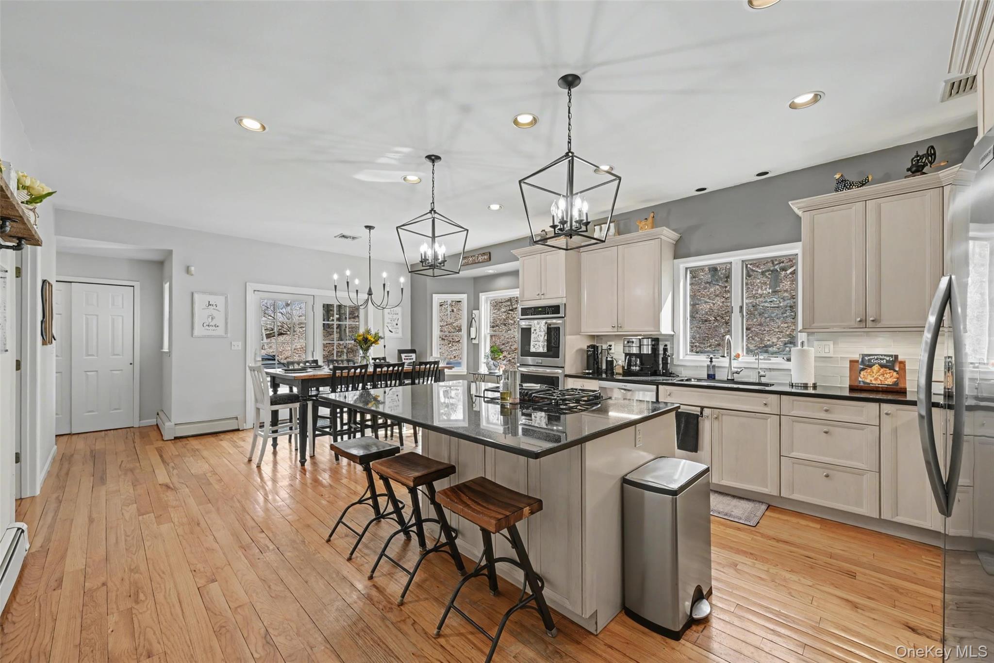 Welcome to 3 Nova Drive… A stunning center hall Colonial nestled on a private 4. 4-acre corner lot in the award-winning Cornwall School District. Offering over 3, 000 square feet of thoughtfully designed living space, this 4-bedroom, 2. 5-bath home perfectly blends timeless elegance with modern upgrades. A grand two-story entry sets the tone as you step inside, leading to a spacious and inviting main level. The heart of the home is the impressive eat-in kitchen featuring granite countertops, stainless steel appliances, double wall ovens, and a gas cooktop. A deck just off the kitchen enhances the home’s appeal, creating a seamless connection between indoor and outdoor living while offering the perfect setup for entertaining. The kitchen flows seamlessly into the warm and welcoming family room with wood-burning fireplace and access to the wrap around front porch. A formal dining room and living room provide additional space for gatherings, while a convenient half bath and laundry room complete the first floor. Upstairs, the primary suite offers a peaceful retreat with a walk-in closet and a luxurious en suite bathroom featuring a whirlpool tub. Three additional generously sized bedrooms and a full hallway bath complete the second level. There is even a versatile flex space that’s ideal for a home office, den, or playroom. Hardwood floors run throughout both levels, adding warmth and continuity. Step outside to enjoy the man-made stream, playground area, and wraparound porch with gazebo, perfect for relaxing and taking in the serene surroundings. Nature lovers will appreciate the direct and private access to hiking trails onto Storm King Mountain. This home also includes a whole house generator for added peace of mind and a large shed for all of your outdoor storage needs. Recent updates include: new A/C condenser and unit (2020), Viessmann on-demand furnace and hot water heater (2020), water softener (2020), paver walkway (2020), UV light for air filtration and drinking water (2020), and a reverse osmosis system (2020), new washer and dryer (2021), gas cooktop (2020), refrigerator (2025), and new garage doors with openers (2025). This exceptional property offers space, privacy, and modern convenience—all in a prime location close to everything the Hudson Valley has to offer.
