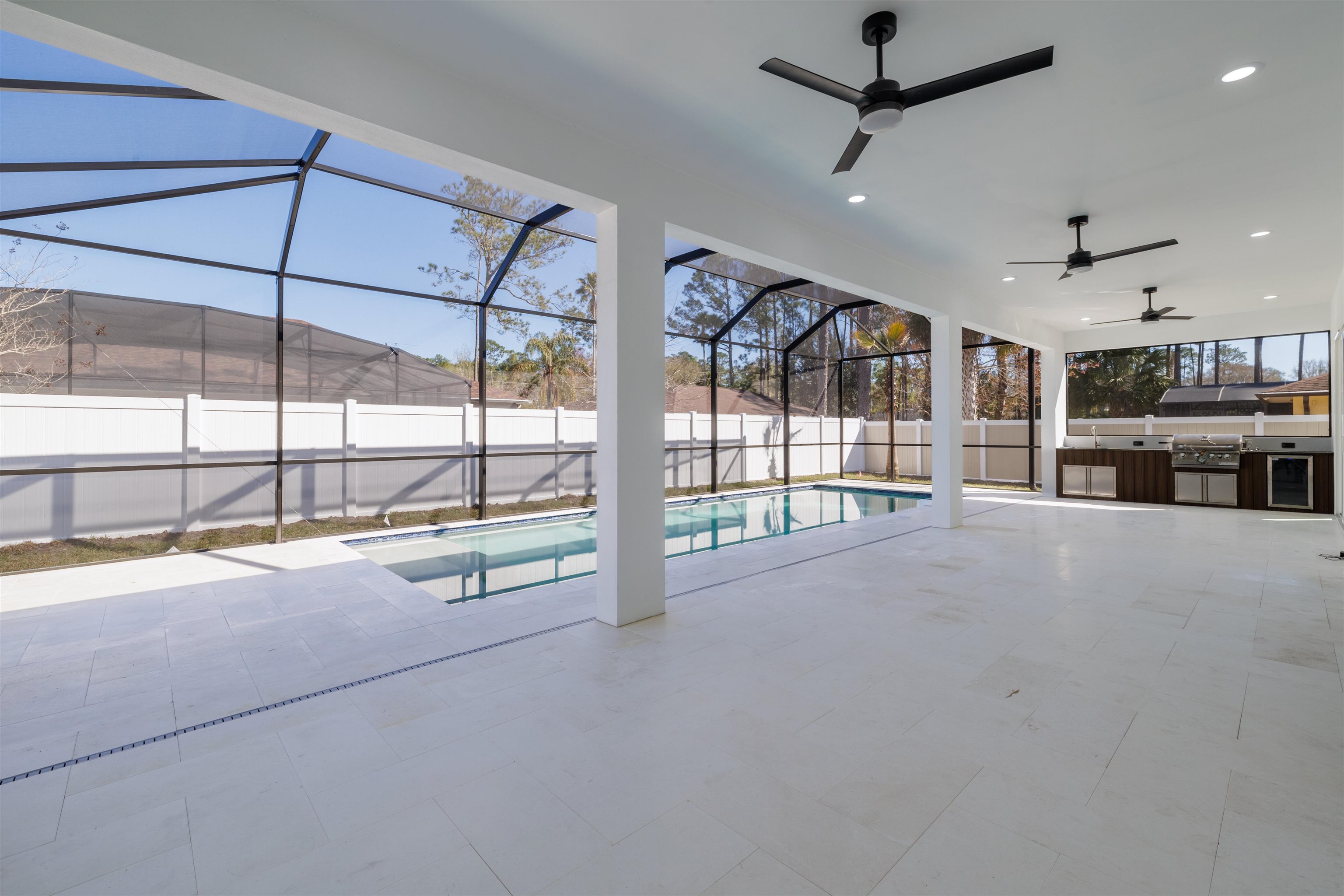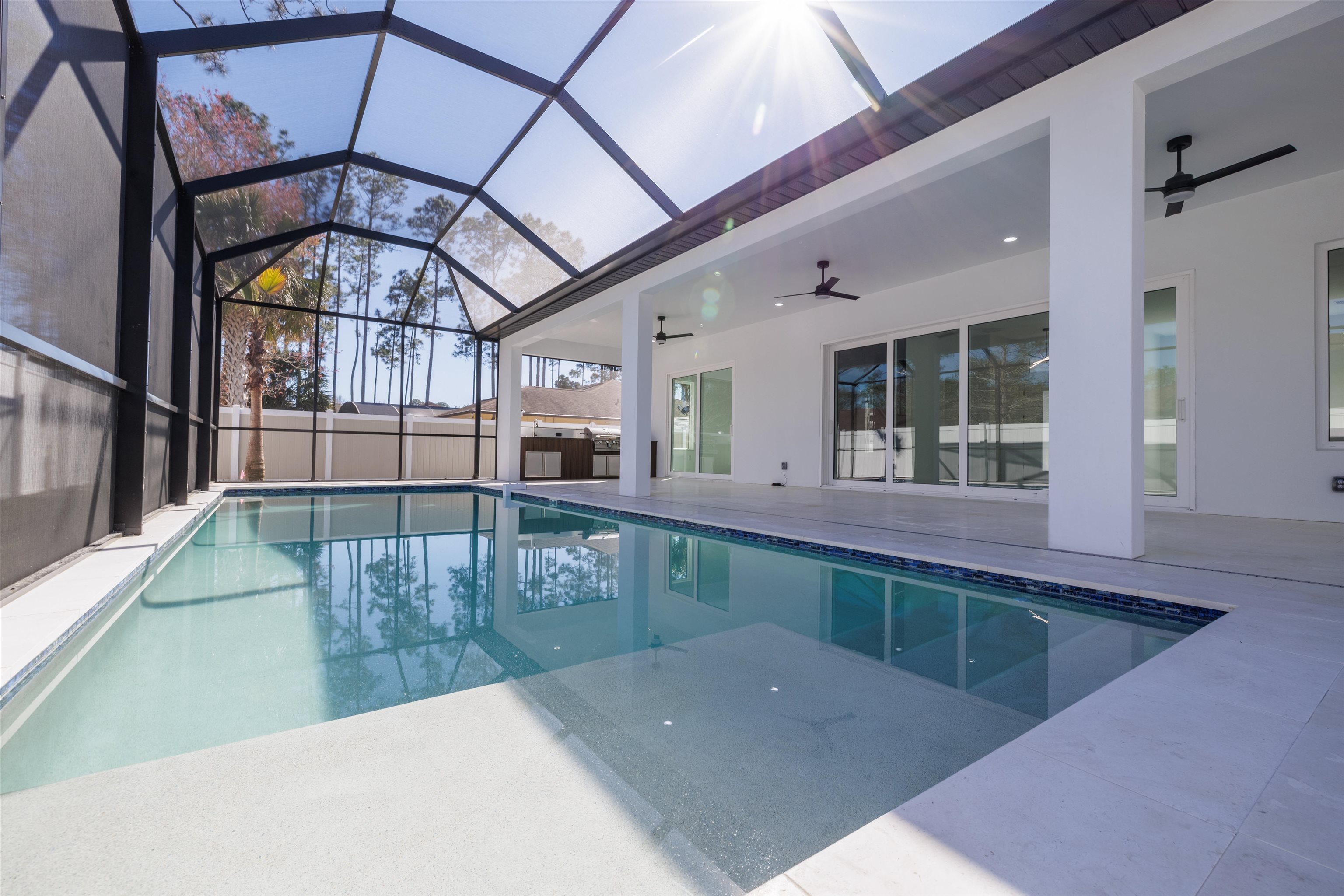 CONTEMPORARY 3- BEDROOM, 2-BATH HOME FEATURES 109 UPGRADES AND DELIVERS A COMPLITELY TURNKEY EXPERIENCE WITH ZERO STRESS AND ZERO ADDITIONAL COSTS. CONTEMPORARY 3- BEDROOM, 2-BATH HOME FEATURES 109 UPGRADES AND DELIVERS A COMPLITELY TURNKEY EXPERIENCE WITH ZERO STRESS AND ZERO ADDITIONAL COSTS. A dramatic 16-foot entry opens to an expansive living area with 12-foot ceilings, custom ceiling detail, and oversized energy-efficient windows that fill the home with natural light, while a 16-foot 4-panel sliding glass door blends indoor and outdoor living. The chef’s kitchen features an 11-foot quartz waterfall island with pop-up outlets and wireless charging, premium appliances, built-in oven and microwave, island cooktop, and walk-in pantry. The private primary suite offers direct pool access, a large walk-in closet, dual floating vanities with quartz countertops, an oversized walk-in shower, and a freestanding soaking tub, while the guest bath also opens to the pool for a true resort feel. Additional features include a laundry room with quartz counters and utility sink, an oversized insulated 2-car garage with epoxy flooring, 18-ft glass-paneled door, 8-ft windows, side entry, and EV-ready wiring, with the garage fully prepped for optional A/C. The home also includes energy-efficient systems tucked away in interior closets for added storage, a covered patio with outdoor summer kitchen and screened pool, a concrete turf driveway, exterior block walls, and 8-ft solid-core doors throughout. The home is fully upgraded and truly move-in ready. Spray foam insulation has been installed throughout the entire home, including the garage, enhancing energy efficiency and helping maintain a more comfortable indoor environment year-round. The garage benefits from improved temperature control as well. Additional exterior features include a full irrigation system and gutters already installed. Inside, thoughtfully designed storage solutions such as custom California Closet shelving in the bathrooms, laundry room, and closets provide both functionality and organization. Ideally located just minutes from Flagler Beach, shopping, dining, parks, and schools, this home offers a perfect balance of luxury, function, and coastal Florida lifestyle.