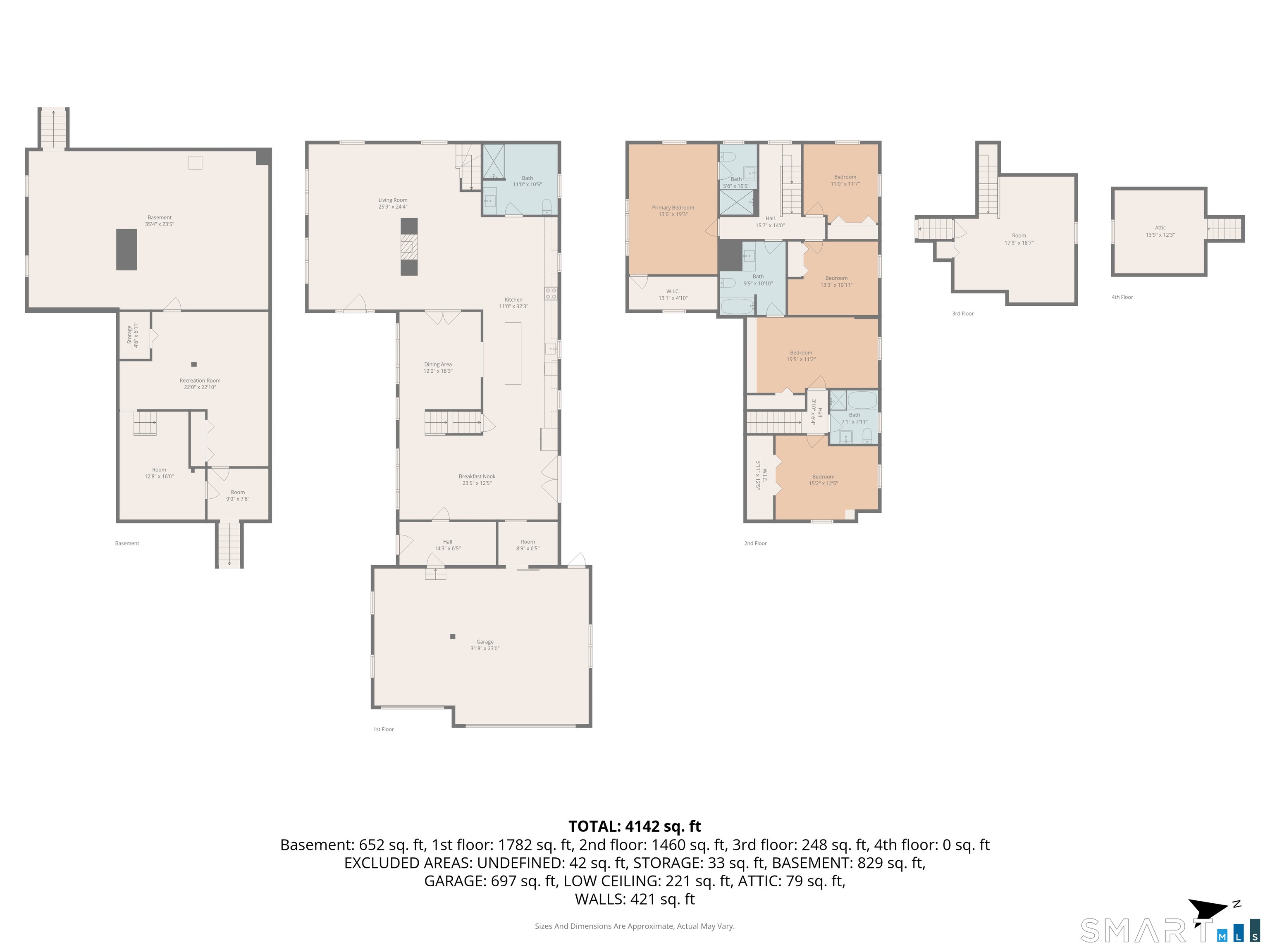 | Bedroom 4 | Remodeled,Hardwood Floor | 11.0 x 12.0 | Upper |