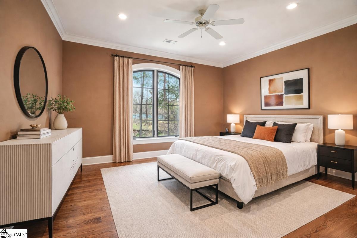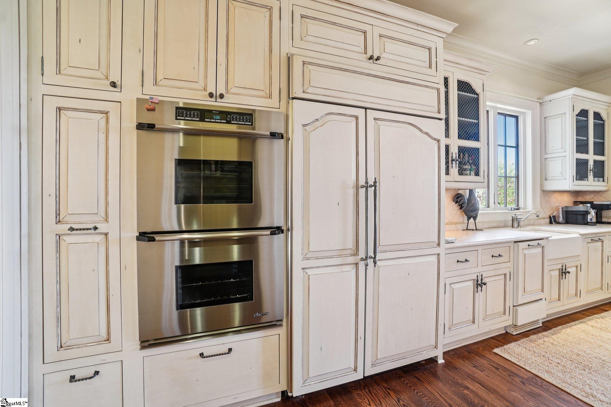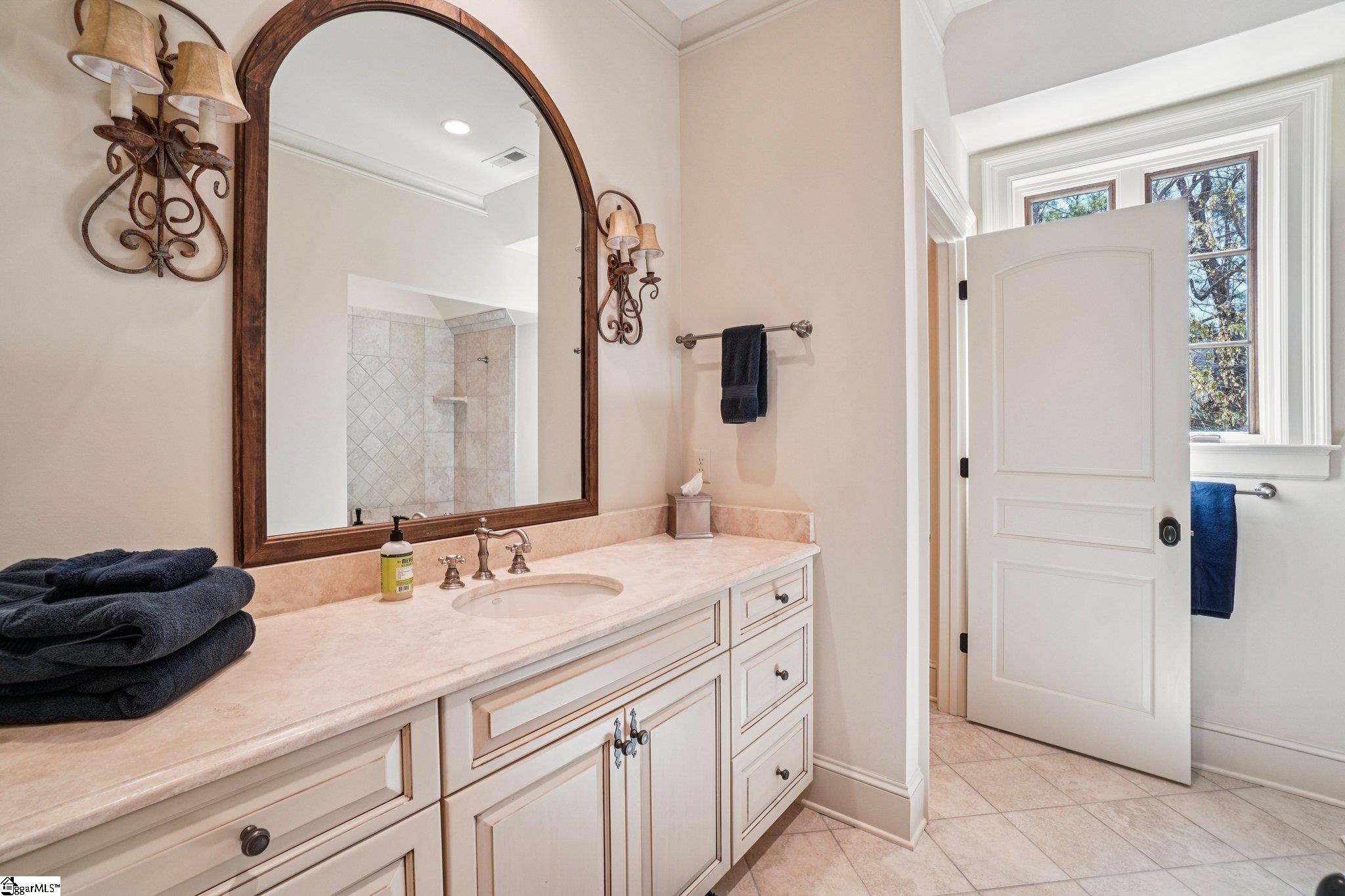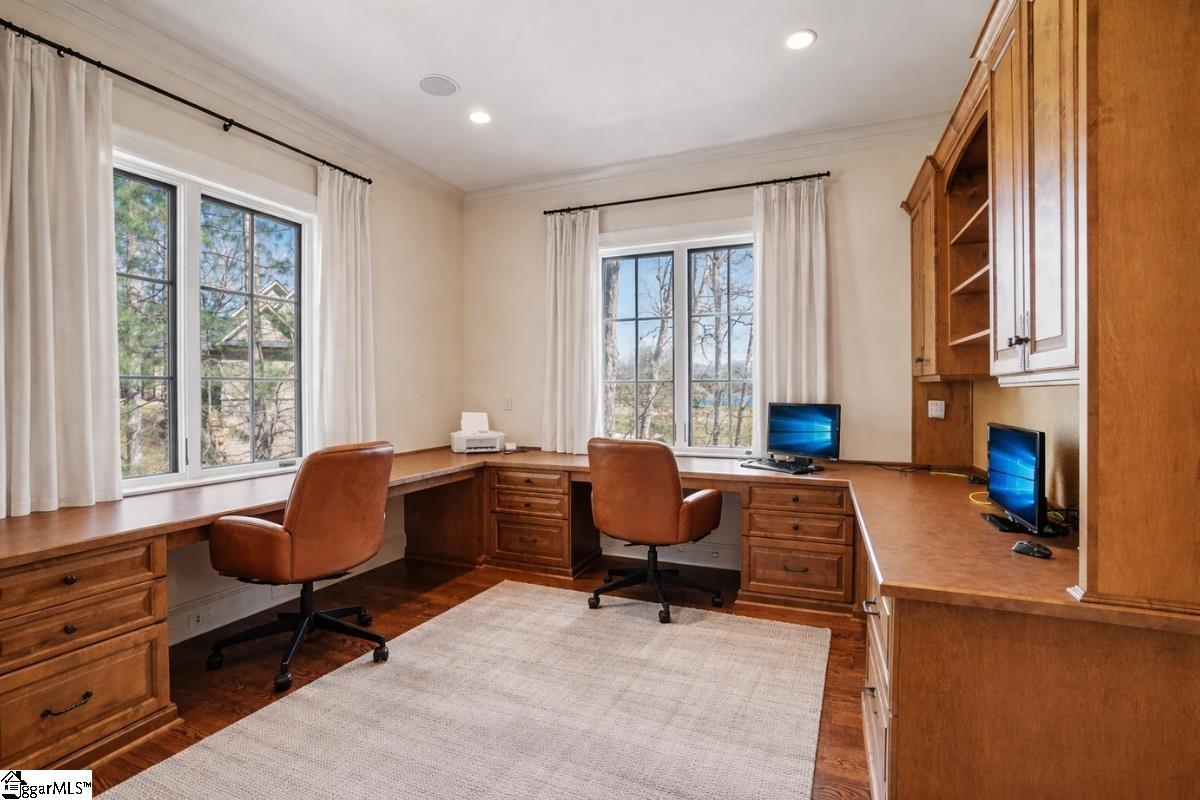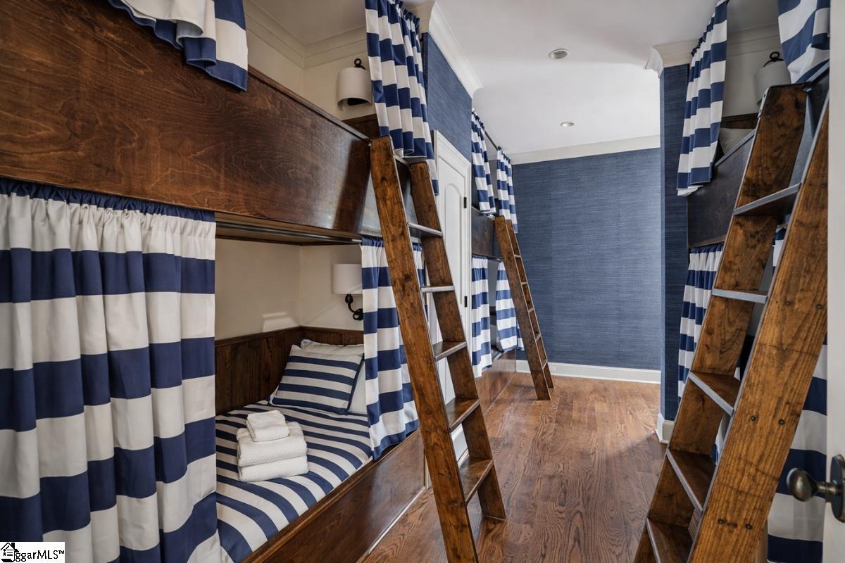 Elegance and exquisite taste are personified in this beautifully proportioned French Country lake home in an exclusive enclave of The Cliffs at Keowee Vineyards. Gentle topography and a plethora of high-canopied native trees frame the 9 bedroom home, served by 6 full bathrooms and one powder room. Views are multi-dimensional, including mountains, lake cove and channel, pristine state parkland, and the 4th green of the Tom Fazio golf course. The tranquil cove is just off the main channel, protecting boats and swimmers alike, whilst providing privacy. Set into the gracious stone façade, a handsome mahogany door opens into a contiguous living area, with beamed great room lit by Charleston lanterns, dining room, keeping room, and kitchen. Vaulted ceilings, clerestory windows, vast sliding doors to the screened outdoor living area, and a multitude of inner balconies and windows enhance the spacious atmosphere, while numerous European antique architectural elements add an essence of timelessness. The kitchen is flanked by the comfortable keeping room, and outfitted with a Dacor 6-burner gas range, double Dacor wall ovens, two apron farmhouse sinks, a walnut-topped island, and walk-in pantry. The generous screened porch readily accommodates dining and sitting areas on blue crab orchard stone, warmed by a gas-log limestone fireplace. In addition to four principally-sized suites are two darling double bedrooms, a charming bunk room at the lower level, and separate suite above the 3-car garage. The lake level media room opens to a blue flagstone patio delineated by zinc planters, with inset hot tub, grilling kitchen, and second outdoor fireplace. Also at this level are the bunk room, 9th bedroom, two full bathrooms, media room with billiards, a wet bar with ice machine, plenty of storage (including lake toy “garage”), and second laundry room with 3rd fridge and 2nd dishwasher. The home is professionally decorated, with sumptuous window treatments and thoughtful detailing throughout. Numerous impressive features include custom lighting fixtures (many of which are either antique or artisan-crafted from antiques), a home office with lake views, custom hand-wrought iron balusters, Grade 1 white oak flooring (a recent addition to the lower level), a two-slip boathouse, exterior gas lanterns, solid stone exterior, some 7, 000 square feet of custom designed and engineered living space, and superlative artistic sensitivity, in both plan and execution. This beautifully designed and masterfully constructed home is a Cliffs at Keowee Vineyards icon with recent that bely the home’s early 2000’s construction.