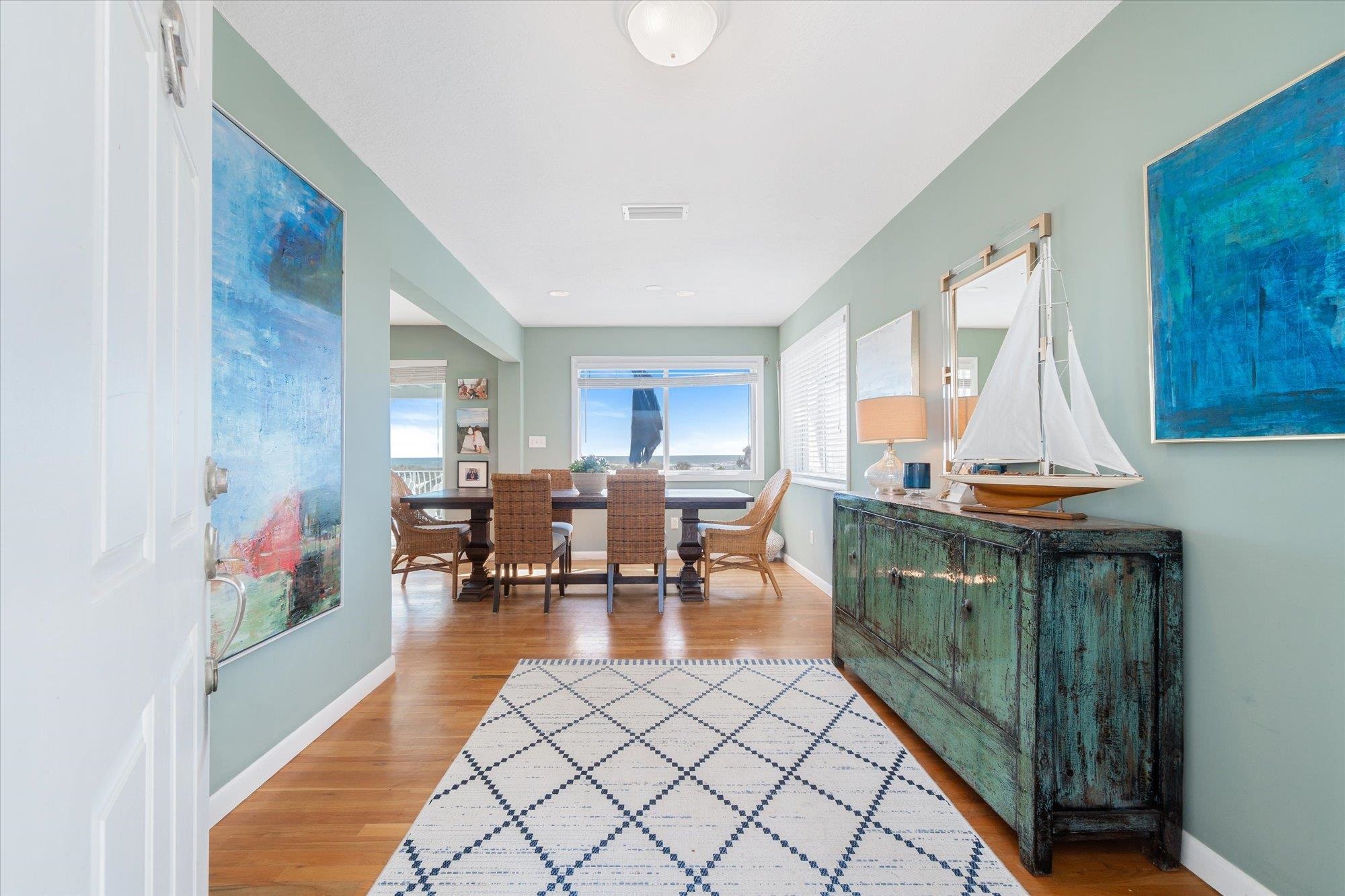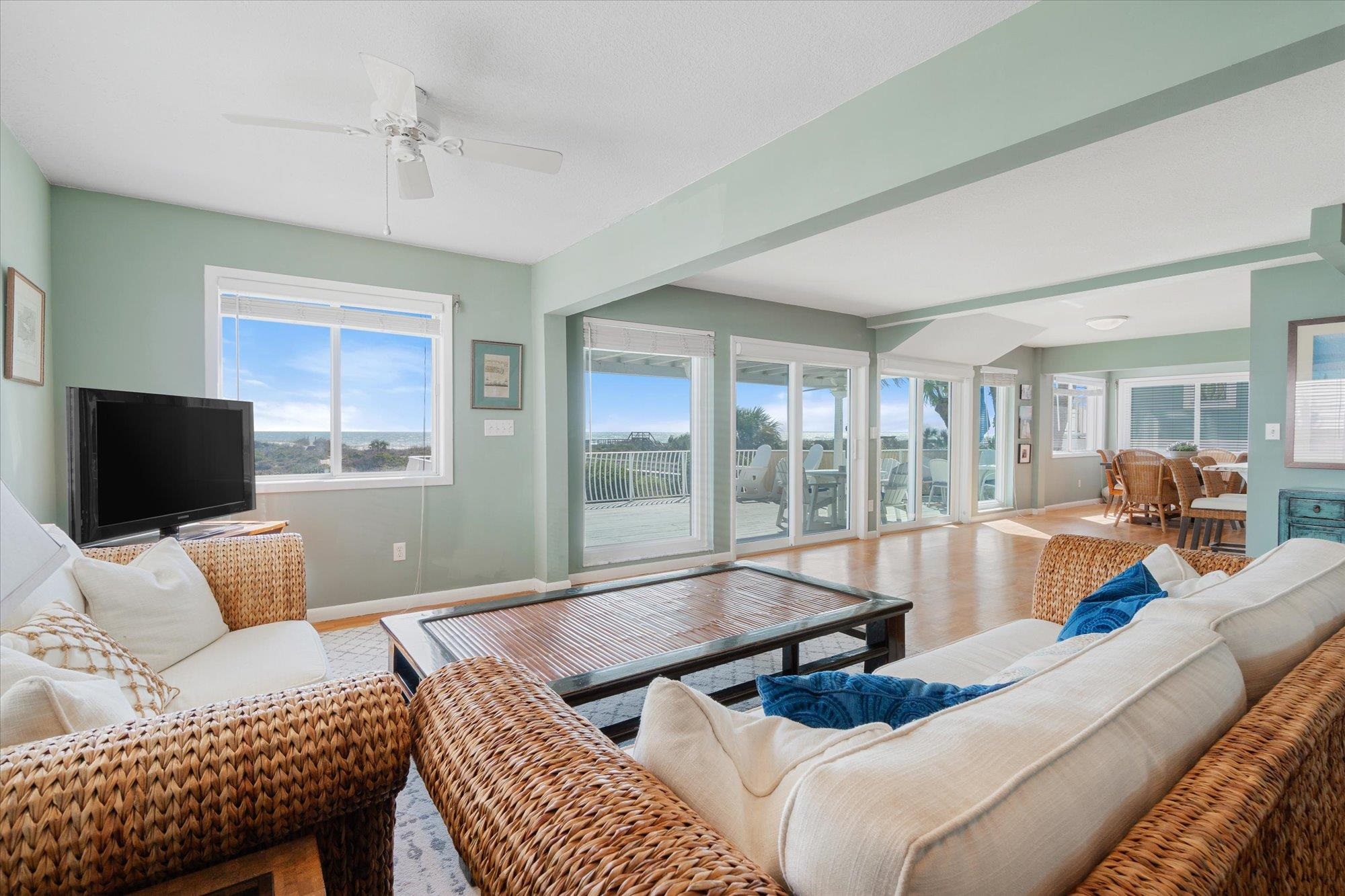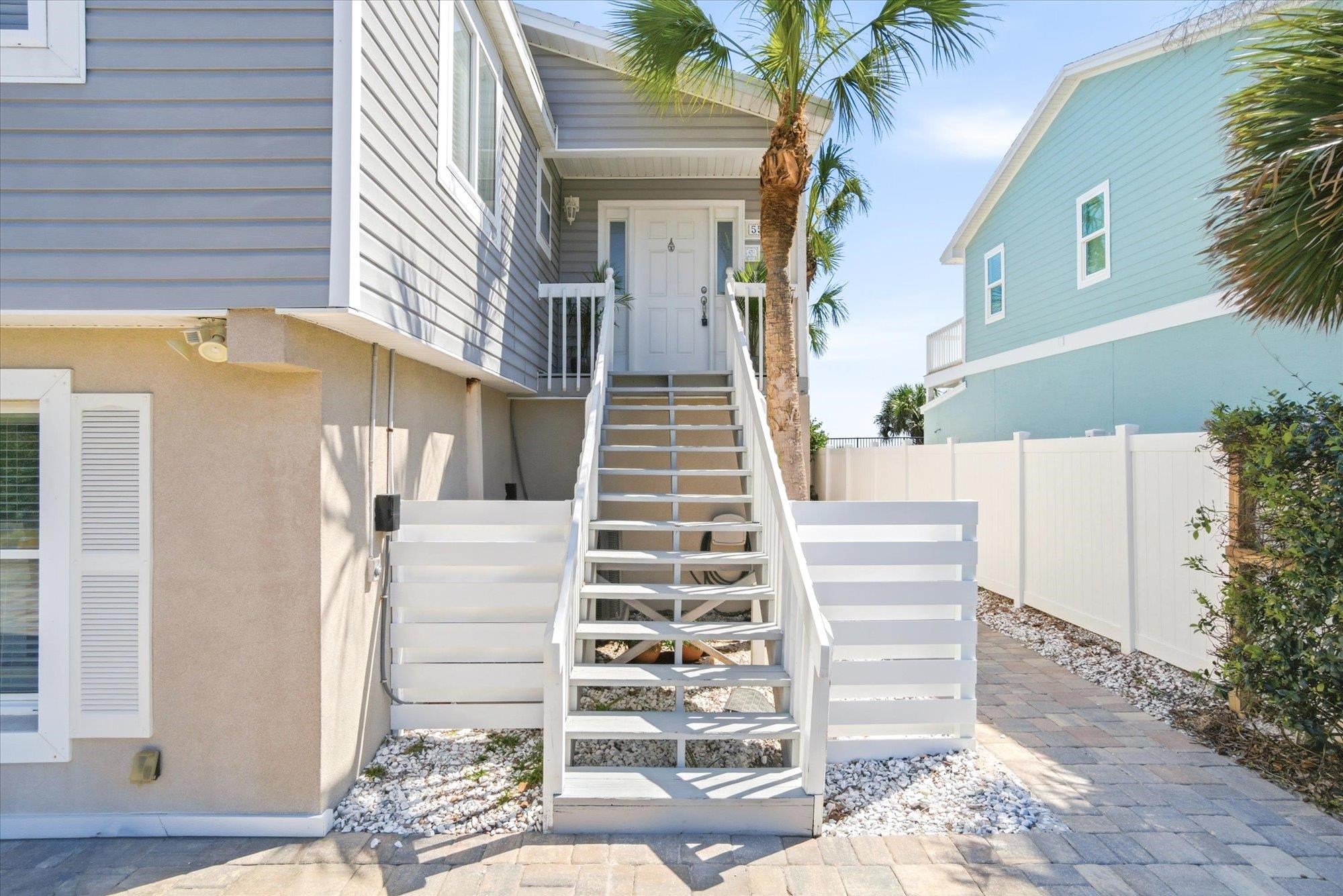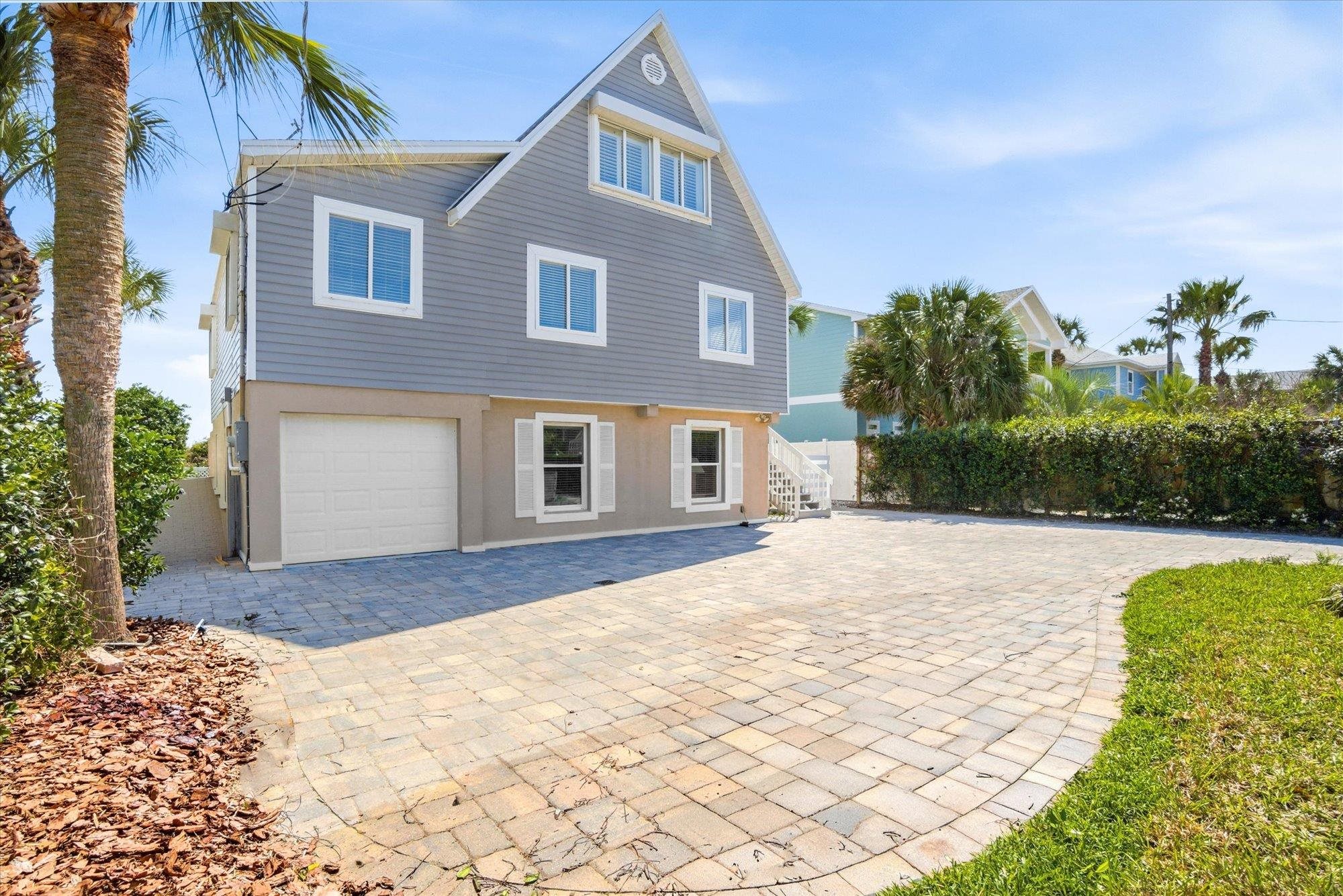 Experience elevated coastal living in this exceptional oceanfront residence in St. Augustine Beach, where panoramic Atlantic views and direct beach access define a truly rare offering. Perched along the dunes with a private access to the shoreline, this 3, 093-square-foot, 5-bedroom, 4-bath home captures the essence of a relaxed yet refined beachside lifestyle. Spanning three thoughtfully designed levels, the home maximizes both versatility and breathtaking ocean vistas. The main living level, positioned on the second floor, welcomes you with rich wood flooring and an open-concept design where walls of windows frame sweeping views of the Atlantic. Natural light and coastal breezes fill the space, while the living and dining areas extend seamlessly to a spacious oceanfront deck—an ideal setting for morning coffee, sunset gatherings, or evenings listening to the waves. Furnishings are negotiable. The kitchen is both functional and inviting, featuring granite countertops, bar-top seating, and stainless steel appliances, all oriented to remain connected to the main living spaces. Two bedrooms and a full bath complete this level, offering comfort and flexibility for family or guests. The third floor is dedicated to a private primary retreat, where elevated views create a true sense of escape. A secluded oceanfront deck provides a front-row seat to the coastline, while the suite itself offers generous walk-in closets and a spacious bath with dual vanities, a jetted tub, and a separate shower—designed for both comfort and relaxation. On the first level, a fully equipped secondary living space offers its own kitchen, living area, two bedrooms, and two full baths, opening to a covered patio. This level provides exceptional flexibility for hosting guests, multigenerational living, or creating a private retreat within the home. Outside, the property continues to impress with a large, grassed backyard offering ample space to design a custom pool, complemented by a covered patio and multiple outdoor living areas that embrace the coastal setting. A private dune path places the beach just steps away, allowing for effortless days on the sand and in the surf. Don’t miss the separate dune walk over deck with seating before you hit the waves. Additional highlights include a recently updated paver driveway, newer roof, connection to city sewer, impact doors, windows and shutters, a separate laundry room, and a one-car garage—ensuring both comfort and peace of mind. Set along one of St. Augustine Beach’s most desirable stretches of oceanfront, this home offers the perfect balance of privacy and convenience, with local dining, shopping, and historic downtown St. Augustine just minutes away. Positioned in a sought-after area where short-term rentals are permitted, creating an exceptional opportunity for income generation. With sweeping ocean views from every level, direct beach access, and a layout designed for both gathering and retreat, this residence presents a rare opportunity to own a true coastal sanctuary.