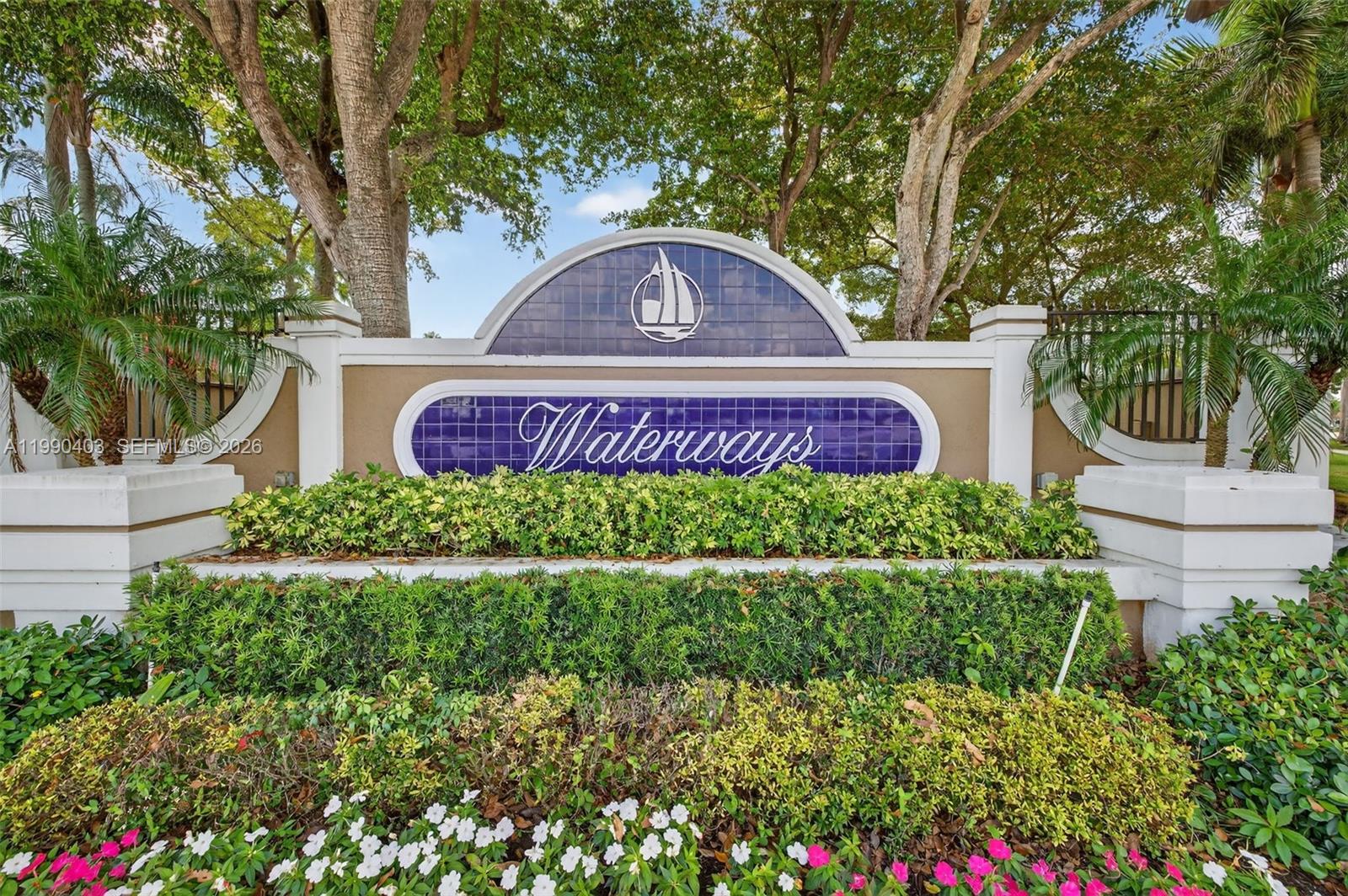 Panoramic lake views and rare corner unit privacy define this sought-after Waterways residence. This 3 bedroom, 2 bath home is filled with natural light and features an open layout with marble flooring throughout the main living areas and rich wood flooring in the bedrooms. The upgraded kitchen is designed for both function and style, offering custom soft-close cabinetry, granite countertops, and a double oven, all opening to a spacious great room ideal for everyday living and entertaining. French doors lead to a screened patio overlooking the water, creating a seamless indoor-outdoor setting with peaceful, wide lake views. Additional highlights include new AC (2024), epoxy garage flooring with built-in storage, and accordion hurricane shutters. Located in a gated, all-ages community with resort-style amenities including 2 pools, fitness center, clubhouse, and sports courts.