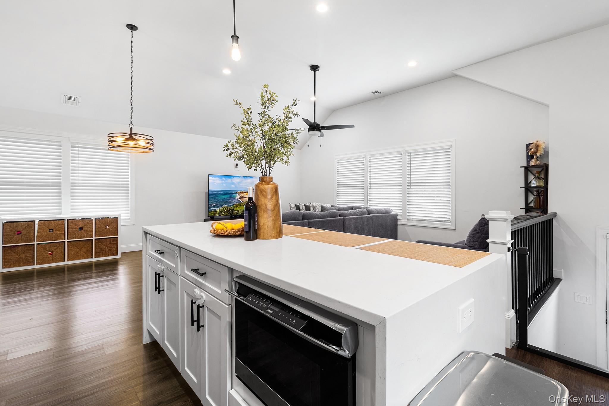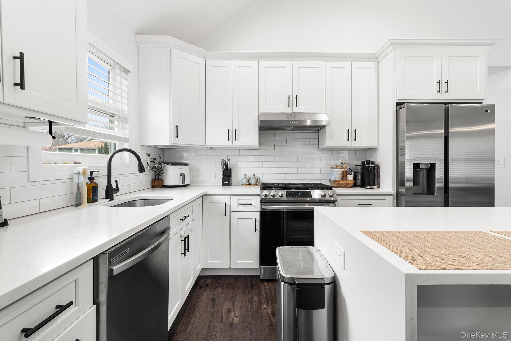 Picture-perfect and thoughtfully updated, this Hi-Ranch showcases inviting curb appeal with a beautifully maintained front exterior, new driveway, and charming entryway, all set in the heart of Huntington Station. Pride of ownership is evident throughout this move-in-ready home. The upper level features an open-concept layout designed for modern living and entertaining, highlighted by a spacious living room, formal dining area, and a granite kitchen with a center island and updated appliances. Crown moldings add a refined touch, while natural light enhances the airy feel. The primary bedroom includes an ensuite full bath, and two additional bedrooms comfortably accommodate full or queen-size sets. The lower level offers exceptional flexibility with an additional bedroom, full bath, and a wet bar—ideal for extended living arrangements, guest space, or recreation. Head outside to enjoy a newly designed patio, perfect for outdoor gatherings, along with a generously sized yard for relaxation or entertaining. Recent upgrades over the past three years include a new patio, driveway, and crown moldings, enhancing both style and functionality. Conveniently located near shopping, dining, parks, schools, and public transportation, this home offers comfort, versatility, and accessibility in a desirable Huntington Station location.