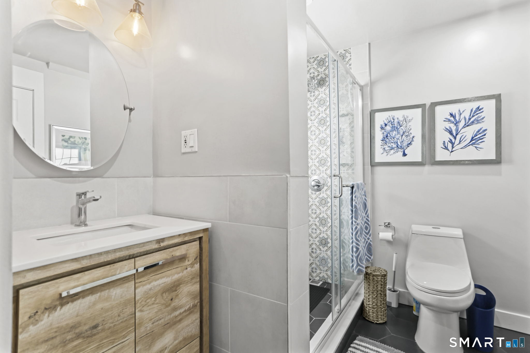 Welcome to 6 Wildmere Lane, a thoughtfully renovated 3-bedroom, 3-bath Cape in a quiet Norwalk neighborhood close to everything. The light-filled first floor offers an open kitchen with breakfast bar, stainless steel double oven, deep sink, dishwasher, and recessed lighting flowing into the living room with an open staircase. The first-floor primary suite features a huge walk-in closet with bathroom access, creating a private retreat. A renovated full bath with new tile, vanity, and stand-up shower completes the main level. Upstairs, 2 spacious bedrooms with new flooring can each accommodate king beds, plus a second renovated full bath and 2 eave storage areas accessible from the bedrooms. The full-height heated basement is a standout: dedicated laundry room with sink and cabinets, third full bath, and flexible storage/office/playroom with 2 closets, and a 1 car garage. Recent updates include a new roof, Trex front deck, replaced back deck, fresh paint inside and out, new front walkway, and back retaining wall. The private backyard with deck and patio offers a peaceful retreat. The location gives you everything you want from Westport Ave, including Stew Leonards, Wave Hill Breads, and more, but is tucked in a neighborhood that you can enjoy without through traffic. Close to the beach, aquarium, Cranbury Park, SoNo and more, this home offers an ideal blend of comfort, storage, and location. **INTERIOR UPDATES** Converted from two-apartment layout back to single-family home by opening staircase wall in living room area. Removed second-floor kitchen and restored space to bedroom. Installed new flooring throughout entire second floor. Freshly painted entire interior. **BATHROOM RENOVATIONS** Updated all three bathrooms. Main floor bathroom renovated with new tile work, vanity, and fixtures-converted to standalone shower. Second floor bathroom renovated with new tile work, vanity, and fixtures. Basement bathroom received new vanity. **KITCHEN IMPROVEMENTS** Added recessed lighting throughout kitchen. **EXTERIOR UPGRADES** New roof installed. Replaced both front and back decks-front deck upgraded to Trex decking. New front walkway installed. New retaining wall added in backyard. Freshly painted entire exterior. **BASEMENT ENHANCEMENTS** Full-height heated basement features designated laundry room with sink and cabinets, three-piece bathroom, and storage/office/playroom with two closets.