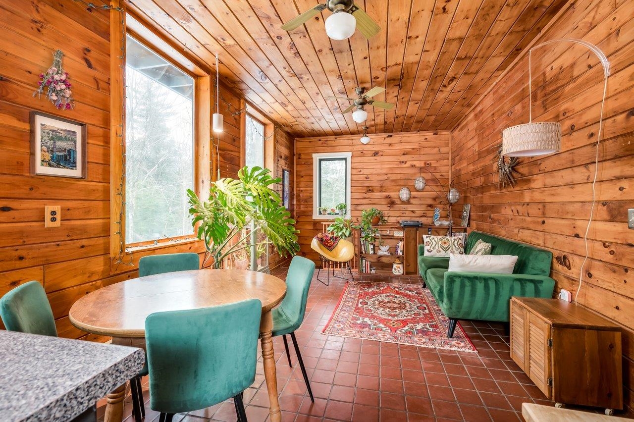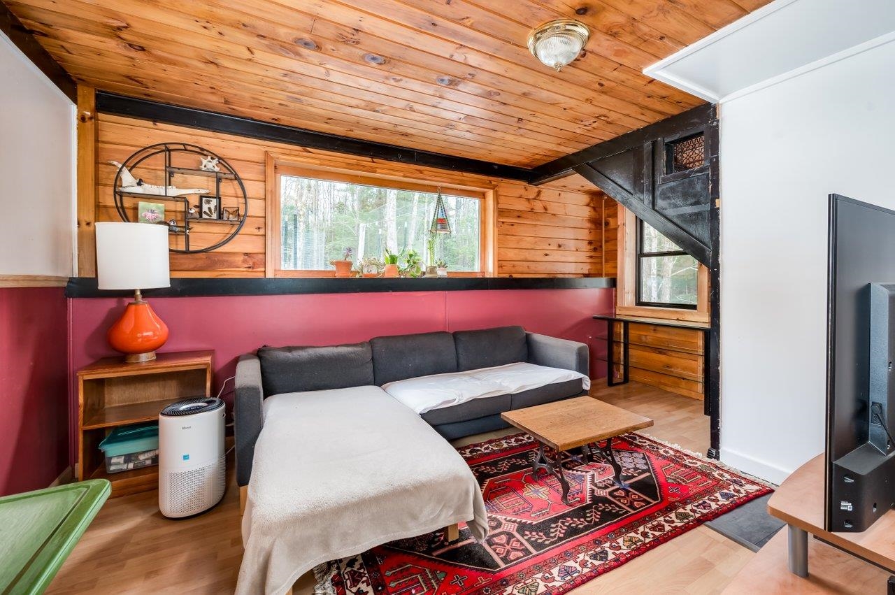 Experience the ultimate in privacy at 205 Baptist Road, a one-of-a-kind contemporary raised ranch nestled on a sprawling 10-acre wooded lot. This unique property is perfectly set back from the road, offering a serene "cabin in the woods" atmosphere combined with striking modern architectural flair. The exterior is designed for those who love the outdoors, featuring a detached 2 car garage, a large covered front porch, and an enclosed porch perfect for bug-free relaxation. Step inside to discover the inviting warmth of stunning tongue and groove wood walls and ceilings that flow throughout the entire home. The upper level features an open-concept living and dining area bathed in passive solar warmth from expansive windows that overlook the private grounds. The kitchen is both stylish and functional, boasting sleek stainless steel appliances, dark cabinetry, and tile flooring. This level also hosts two sizable bedrooms with cozy carpeting and a clean, bright full bathroom. The finished walk-out lower level offers incredible versatility, serving as a spacious media room, home office, or private gym. This space continues the beautiful wood-plank aesthetic and features a highly efficient pellet stove, providing a cozy focal point for chilly New England evenings. Outdoor living is a priority here, with a rear patio featuring a beautiful firepit perfect for gatherings, unique rock outcroppings, and expansive yard space. Whether you are seeking a peaceful sanctuary or a year-round residence with room to breathe, this Canterbury gem, conveniently located just 10 minutes from 1-93, offers a rare lifestyle opportunity! Showings begin at the Open House on Saturday, March 28th, from 11: 00am - 12: 30pm.