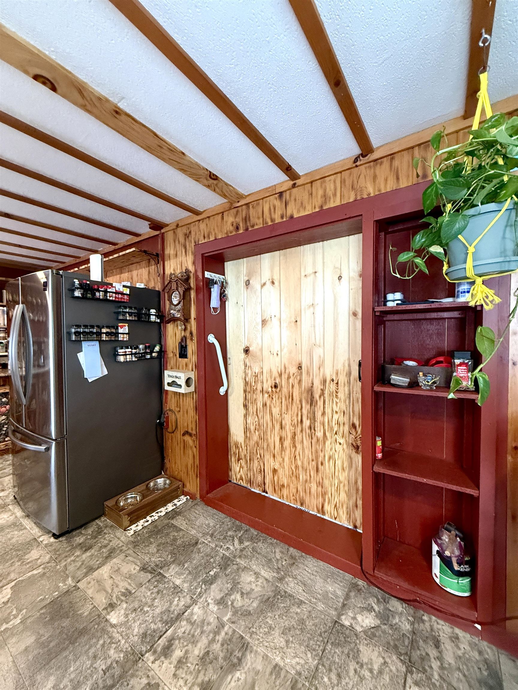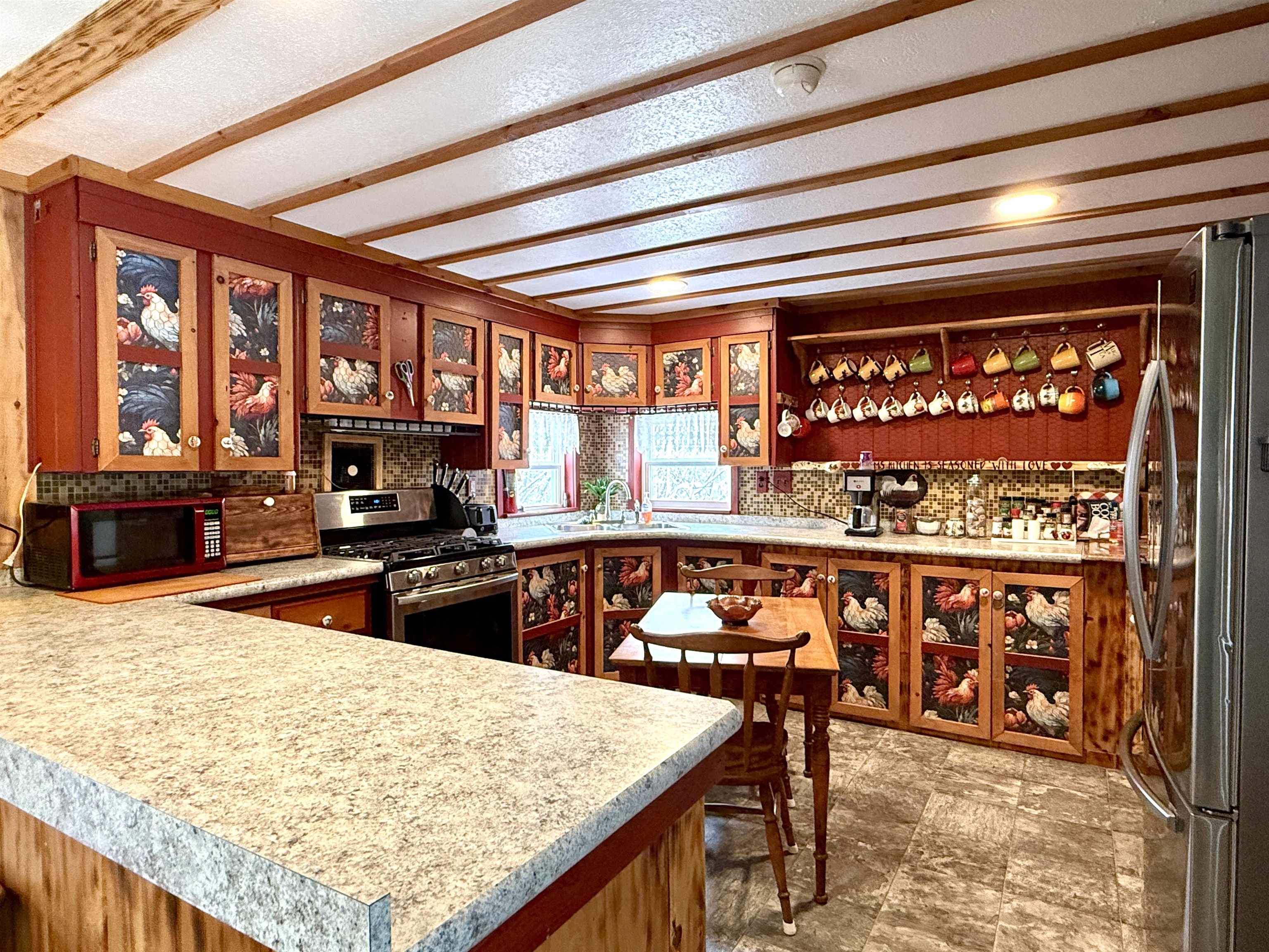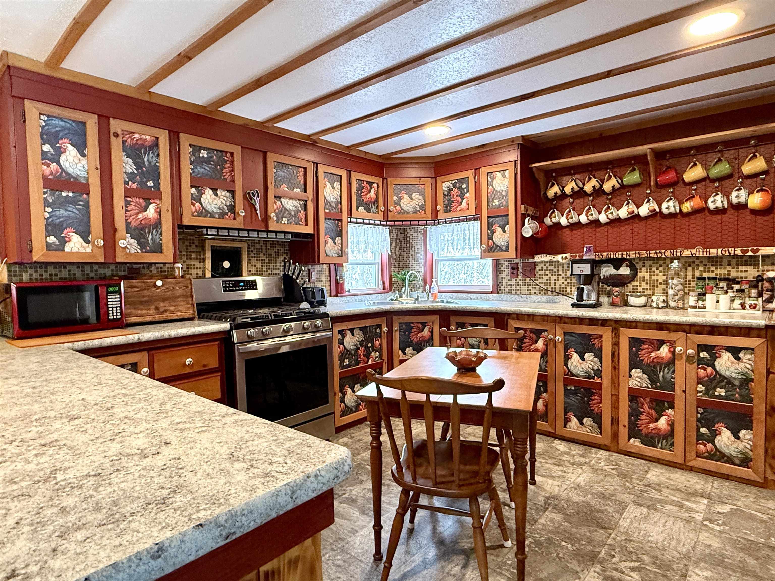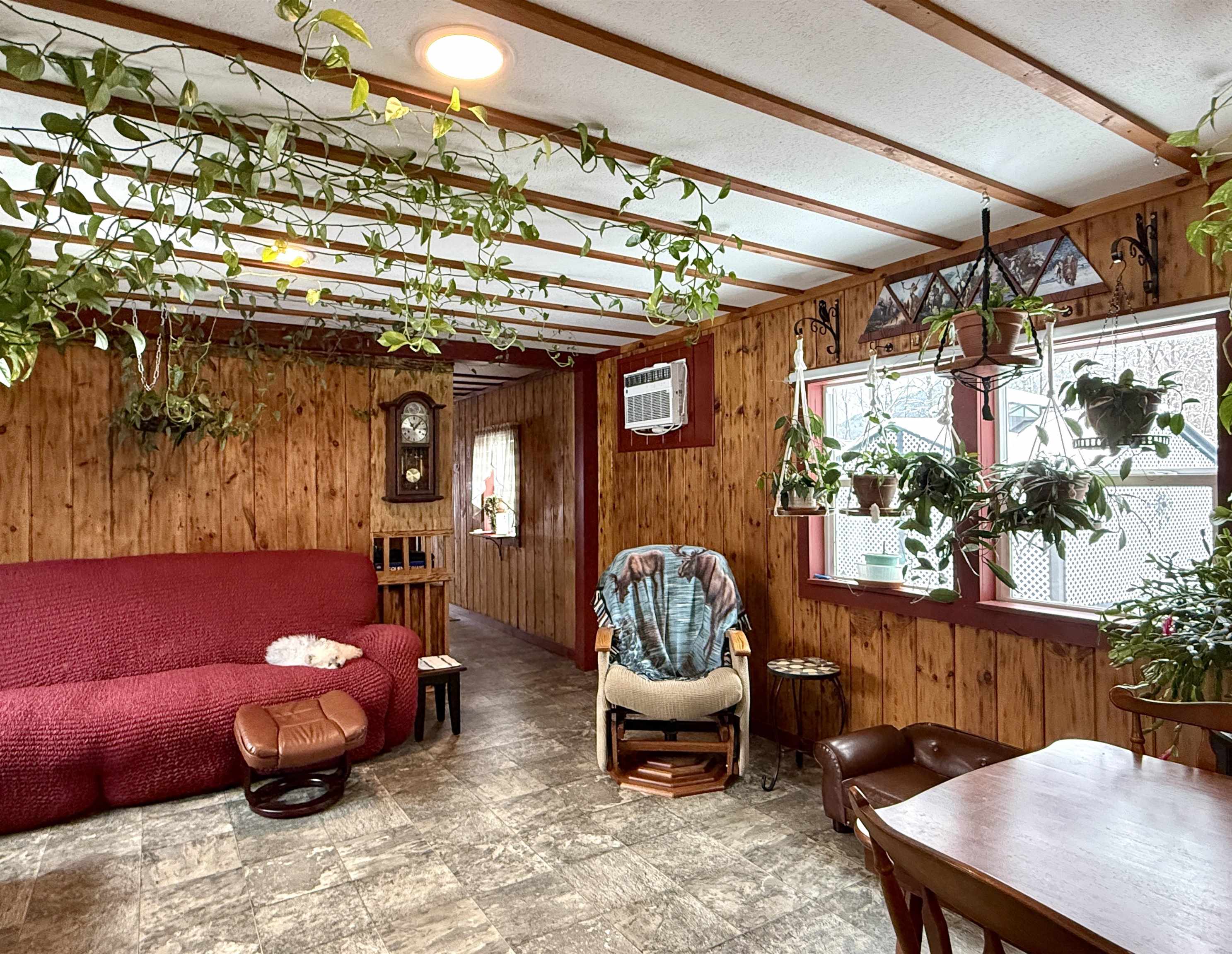 This completely renovated ranch-style country home is perfectly nestled on nearly an acre of picturesque land along the Connecticut River. This property is a true blend of rural charm & contemporary comfort. The front entry leads to a sunny mudroom that’s enhanced by a warm pellet stove, making it a delightful transition into the heart of the home. A charming sliding barn door reveals an open-concept kitchen & living area that is sure to impress. The kitchen boasts unique custom cabinetry, providing ample storage & counter space. With newer stainless-steel appliances & a delightful view of the river from the kitchen sink, every meal prep becomes a scenic experience. The living room is bathed in natural light thanks to expansive windows, creating an inviting atmosphere for relaxation & entertaining. Just off the living room, discover a cozy built-in office snook, ideal for remote work. The thoughtful layout continues with 2 bedrooms & a new full bath. The garage has been transformed into additional living space, featuring a spacious bedroom, walk-in closet & a cozy loft area, complete with another pellet stove. This home exudes country character with shiplap walls, barn boards & new flooring, complemented by a new hot air heating system installed in 2024, updated plumbing, & modern lighting fixtures. The primary bedroom conveniently opens to a deck that leads to your backyard, and a large gazebo. The exterior shines with low-maintenance vinyl siding, new windows, & a durable metal roof, allowing you more time to enjoy your property. Additional features include ample storage sheds & a carport for your convenience. Conveniently located just beyond the historic Guildhall Common, this home offers easy access to nearby snowmobile trails, making it a haven for outdoor enthusiasts. Plus, with Maidstone Lake just 8 miles away, summer adventures are just around the corner. Don't miss the opportunity to make this enchanting riverfront retreat your forever home or vacation dest
