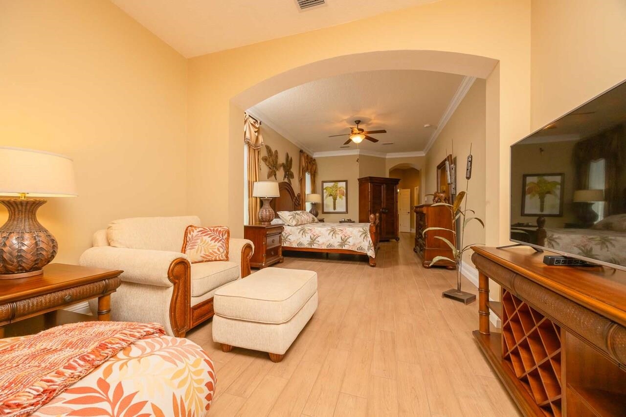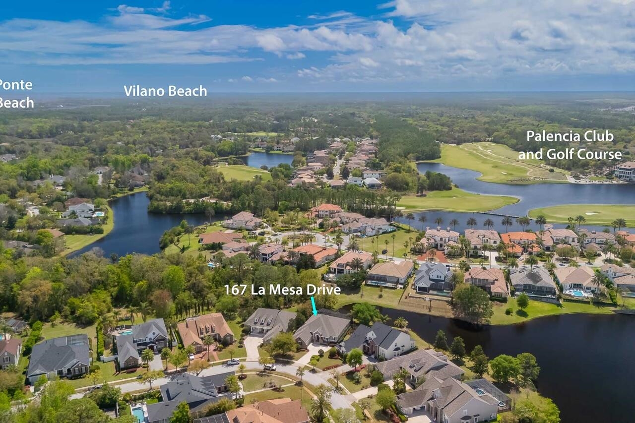 Experience the pinnacle of comfort and convenience in the highly desirable Palencia community. Renowned for its resort-style amenities, Palencia offers everything you have been searching for in a place to call home. Whether you are seeking relaxation, recreation, or a vibrant neighborhood atmosphere, this community has it all. From the moment you step into 167 La Mesa Drive, you will be captivated by its charm and elegance. The home features numerous upgrades that enhance both its style and functionality. With four bedrooms and three bathrooms, this residence provides ample space and modern comforts to suit your needs. It is truly a place where you can live your best life. Enjoy relaxation in the extended sitting area of the Owner's Retreat, which offers private access to the screened pool and lanai. The suite is equipped with a separate AC unit, a large sitting area, and an expansive walk-in closet. This stunning home offers a heated and screened pool, ideal for relaxation and entertaining. With four bedrooms, three bathrooms, an office, and a retreat area, there's plenty of room for everyone. The spacious lanai features a Cool Coat deck that surrounds your screened tropical pool with private lake views, making it perfect for gatherings and enjoying the Florida lifestyle. Impact windows, along with Rhino Shield exterior paint for lasting durability. This beautifully maintained home has it all. Well for irrigation, Termite Bond, Roof June 2022, 2 HVAC 2021/2022, Water Heater 2025, Water filtration system, Water softener 2023, Impact windows, Irrigation pump 2018, Heated Pool, rescreened in 2018. GOLF CART, GREEEN EGG GRILL, AND POOL/LANAI FURNITURE INCLUDED. All other furnishings are negotiable.