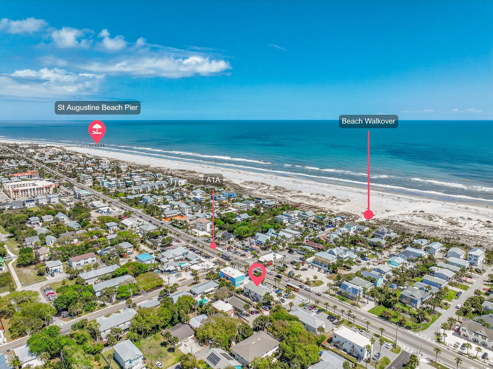 Rare investment opportunity in the heart of St. Augustine Beach! This mixed-use property offers stable income at a prime location just a short walk from the ocean, local dining, and shopping. Upstairs level includes two well-maintained apartments, each with 2 bedrooms and 1 bathroom, ideal for long-term rentals or vacation income. The ground floor features three commercial spaces, all fully occupied with established tenants, providing reliable rental income from day one. With excellent street visibility, high year-round foot traffic, and close proximity to the beach, this property is perfectly positioned for continued growth and strong returns. Whether you’re seeking a turnkey income property or a long-term investment in one of Florida’s most desirable coastal communities, 711 A1A Beach Blvd checks all the boxes.