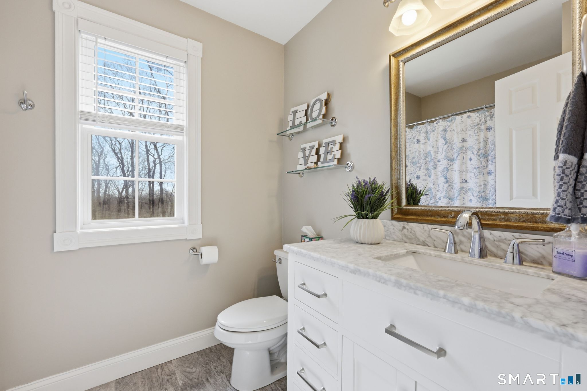 WHERE MODERN ELEGANCE MEETS EFFORTLESS LIVING. This impeccably curated 4 bedroom, 2. 5 bath Colonial delivers a true turnkey experience, where every finish has been thoughtfully elevated to blend timeless design with modern sophistication. At the heart of the home, a fully reimagined chef's kitchen stuns with granite countertops, stainless steel appliances, a center island, and pantry-seamlessly designed for both elevated entertaining and everyday living. The main level is defined by 9' ceilings, fresh designer paint, and a sun-filled living room anchored by a classic wood-burning fireplace. Upstairs, the primary suite offers a private retreat with a beautifully renovated, spa-inspired bath and walk-in closet. All three bedrooms have been completely redesigned with brand-new flooring and refined finishes, while a full bath and second-floor laundry add everyday convenience. The finished lower level expands your lifestyle with almost 700 sq ft of flexible space perfect for a media room, home office, fitness studio, or potential 4th bedroom. Outdoors, enjoy a seamless extension of living with a Trex deck overlooking a fully fenced yard, a newly designed walkway, expansive patio, and firepit-crafted for both entertaining and quiet evenings under the stars. Additional highlights include central air, generator hookup, and solar panels for modern efficiency. A rare offering of true turnkey luxury simply move in and enjoy. Private showings available.