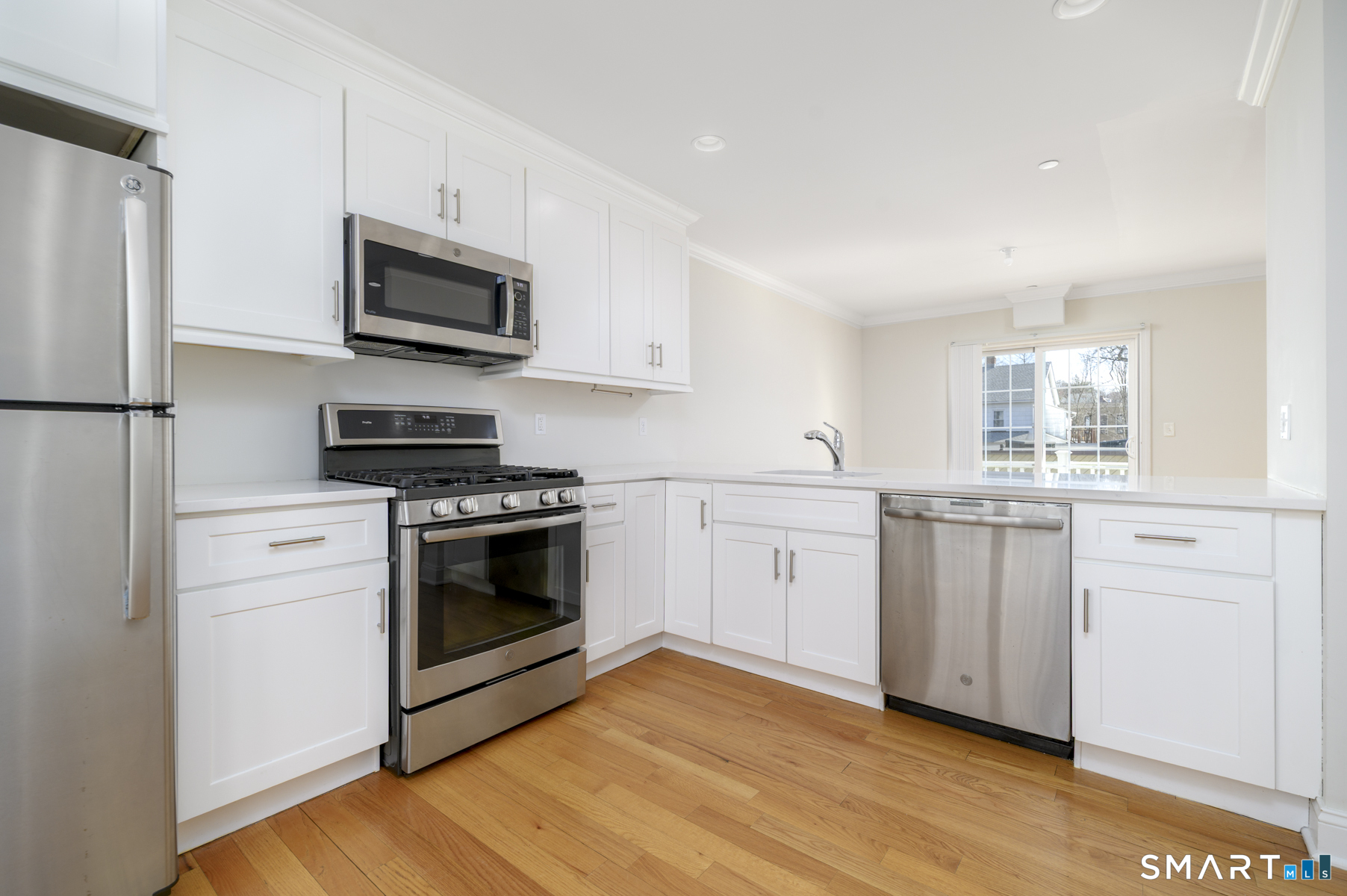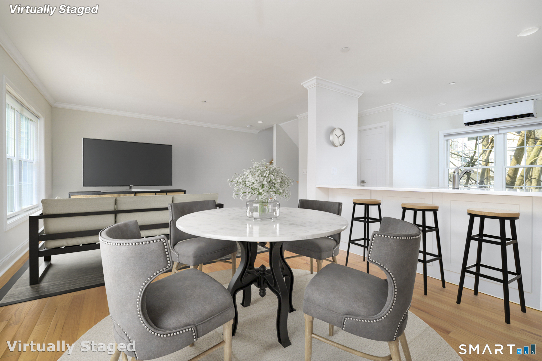 Step into this newer luxury townhouse in Mid-City, Stamford. Built in 2017, this spacious 3-bedroom, 2. 5-bath home features a private Primary Suite and a stunning rooftop deck-perfect for morning coffee or evening cocktails with city views. Inside, the open and airy layout offers high ceilings, rich hardwood floors throughout, crown molding, contemporary lighting, and oversized windows that fill the home with natural light. The living room opens to a private deck, and the home is finished with custom cabinetry and beautifully designed vanities. This pet-friendly residence includes central heating and air conditioning for year-round comfort, along with two assigned parking spaces. Ideally located near major shopping centers and within walking distance to Scalzi Park, Mill River Park, downtown Stamford, restaurants, movie theaters, and more, the home offers both convenience and lifestyle. Low common charges cover trash removal and yard maintenance, providing easy, low-maintenance living. A fantastic opportunity to own a spacious, move-in-ready condo in one of Stamford's most convenient locations.