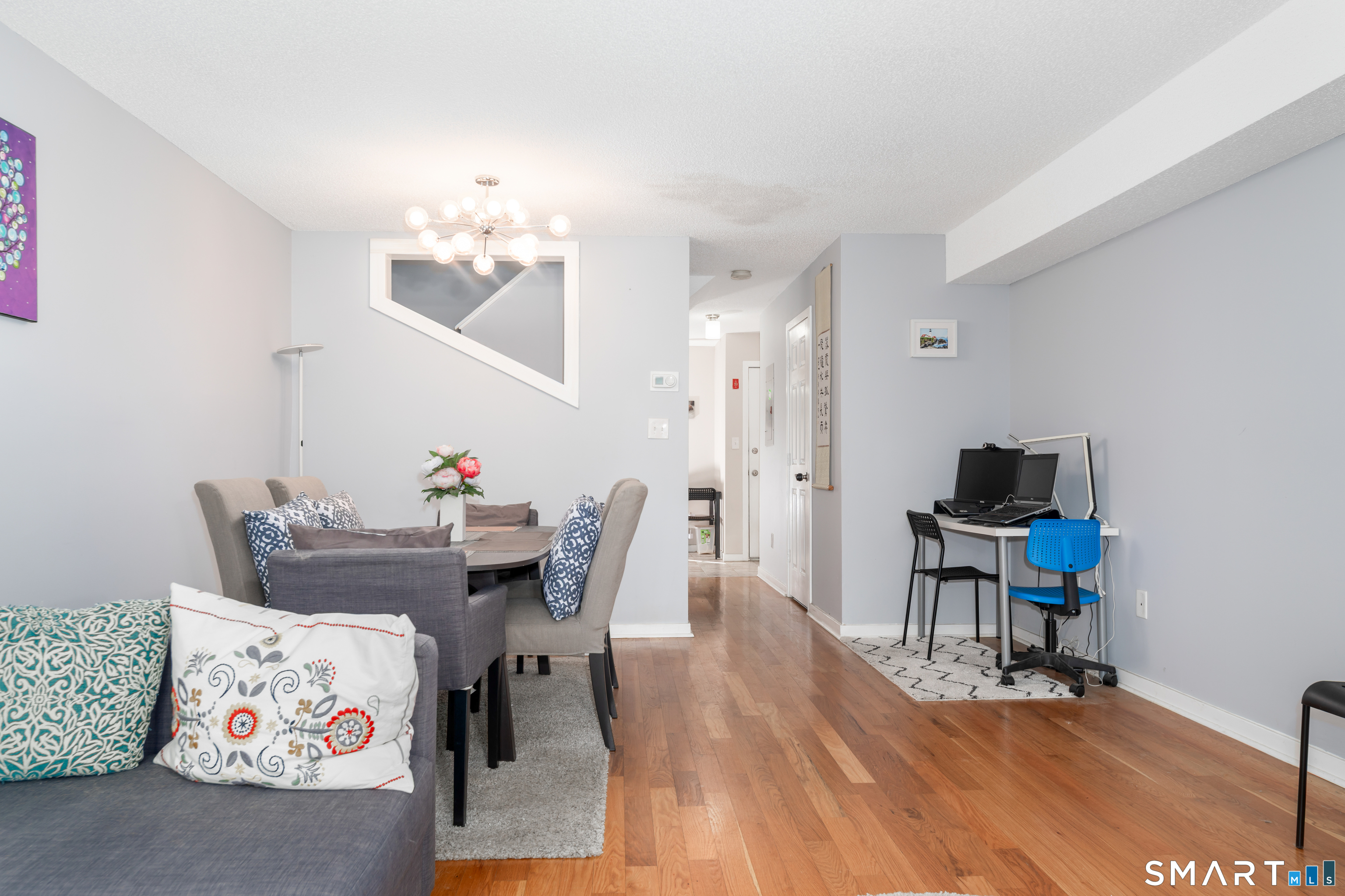 Updated 2-bedroom townhouse in desirable Whitney Place. New hardwood floors run throughout. Enter through the renovated kitchen featuring stainless steel appliances and granite countertops, opening to a spacious living and dining area with sliders to a private deck. A half bath completes the main level. Upstairs offers two ample bedrooms, an updated full bathroom, and convenient laundry. Additional features include large private basement storage and assigned parking. Ideally located in a sought-after complex just minutes to downtown, shopping, parks, and more.