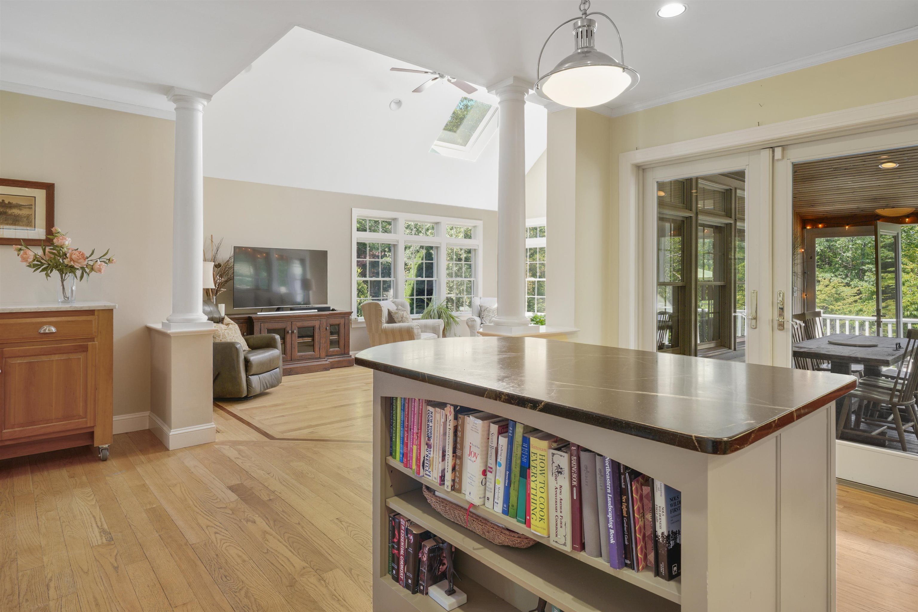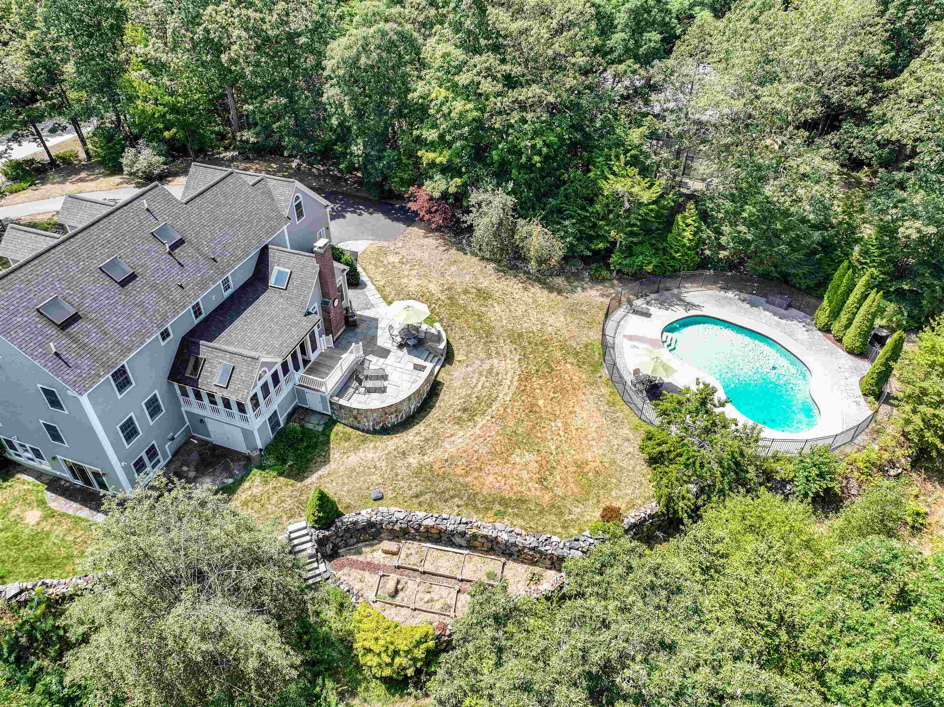 Discover this exceptional custom-built home on 3. 7 acres. 28 Partridge Hill offers incredible living with a flexible & expansive floor plan and a heated Gunite saltwater pool making this home perfect for entertaining and relaxing at home. The open-concept chef’s kitchen features 2 soapstone islands, Danby marble counters, professional gas stove & spacious pantry. The kitchen flows into a sunken family room w/ soaring ceilings & gas fireplace, graceful arched entries open to a formal dining room where French doors lead to a sunny living room. From the kitchen access a screened in porch overlooking the pool, back yard, garden beds & bluestone patio. A separate staircase leads to a flexible office/media room over the garage & another room on the 1st floor is perfect for a second office or playroom. 2nd floor offers a luxurious primary suite w/ walk-in closet, dual vanities, whirlpool tub & tile shower. Also, on 2nd floor are 2 additional bedrooms (one with a loft), large laundry room, full bathroom & access to the room over the garage. Hardwood stairs to 3rd floor where you'll find even more versatile spaces including 2 more bedrooms, common space & 3/4 bathroom. If you need more room enjoy 1, 200 sq. ft. finished walk-out lower level w/3/4 bath, workshop and storage area big enough to park a car. Quality craftsmanship inside & out makes this an exceptional place to call home. Located in Newfields offering the best of seacoast living.