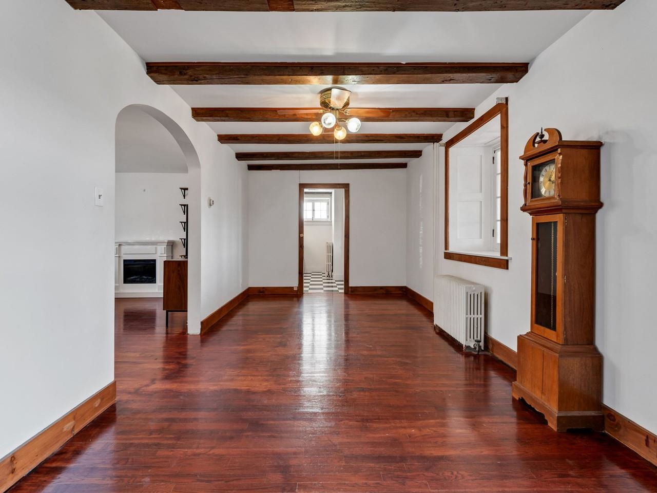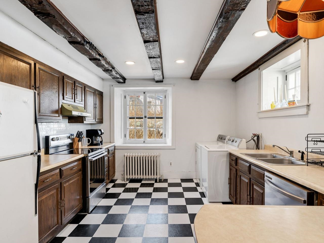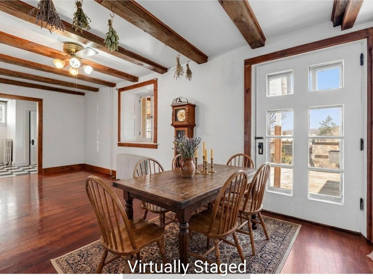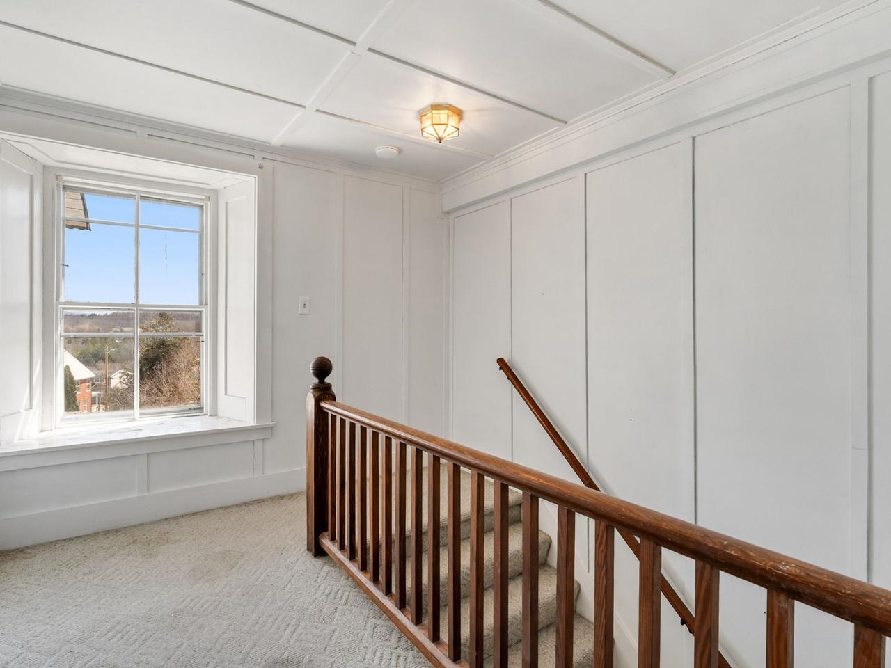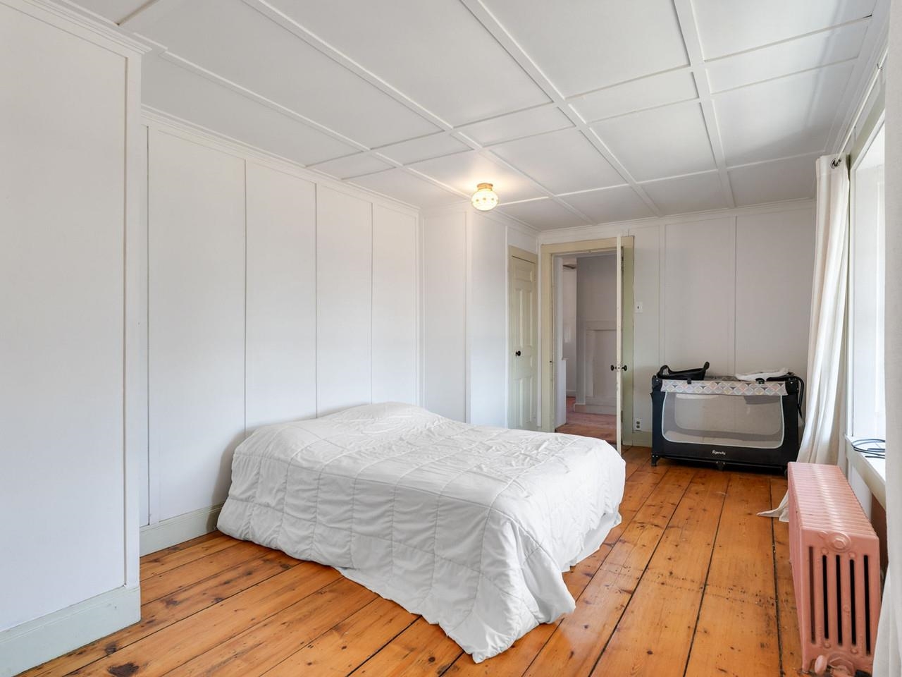 This beautifully preserved 1880s home sits right in the heart of Vergennes, offering the ultimate convenience just a stone's throw from local favorite restaurants and a literal front-row seat to the annual Memorial Day parade. Inside, you are greeted by the warmth of original woodworking, including striking exposed beams and hardwood floors that have been recently refinished to a brilliant shine. The main level features a spacious living room and a large formal dining room that flows seamlessly into an eat-in kitchen complete with an island, as well as a convenient first-floor half bath and laundry. Upstairs, the second level hosts two bedrooms and a full bathroom, along with two versatile bonus rooms that are perfect for dedicated office spaces or playrooms. The outdoor living options are equally impressive, featuring a private balcony area, a charming three-season porch, and a generous deck designed for grilling while taking in elevated views of the city. Practicality meets historical charm in the basement, where tall ceilings and walk-out doors provide excellent potential for a garage or extensive additional storage, all complemented by a fresh coat of paint throughout the home that makes this historic gem move-in ready.