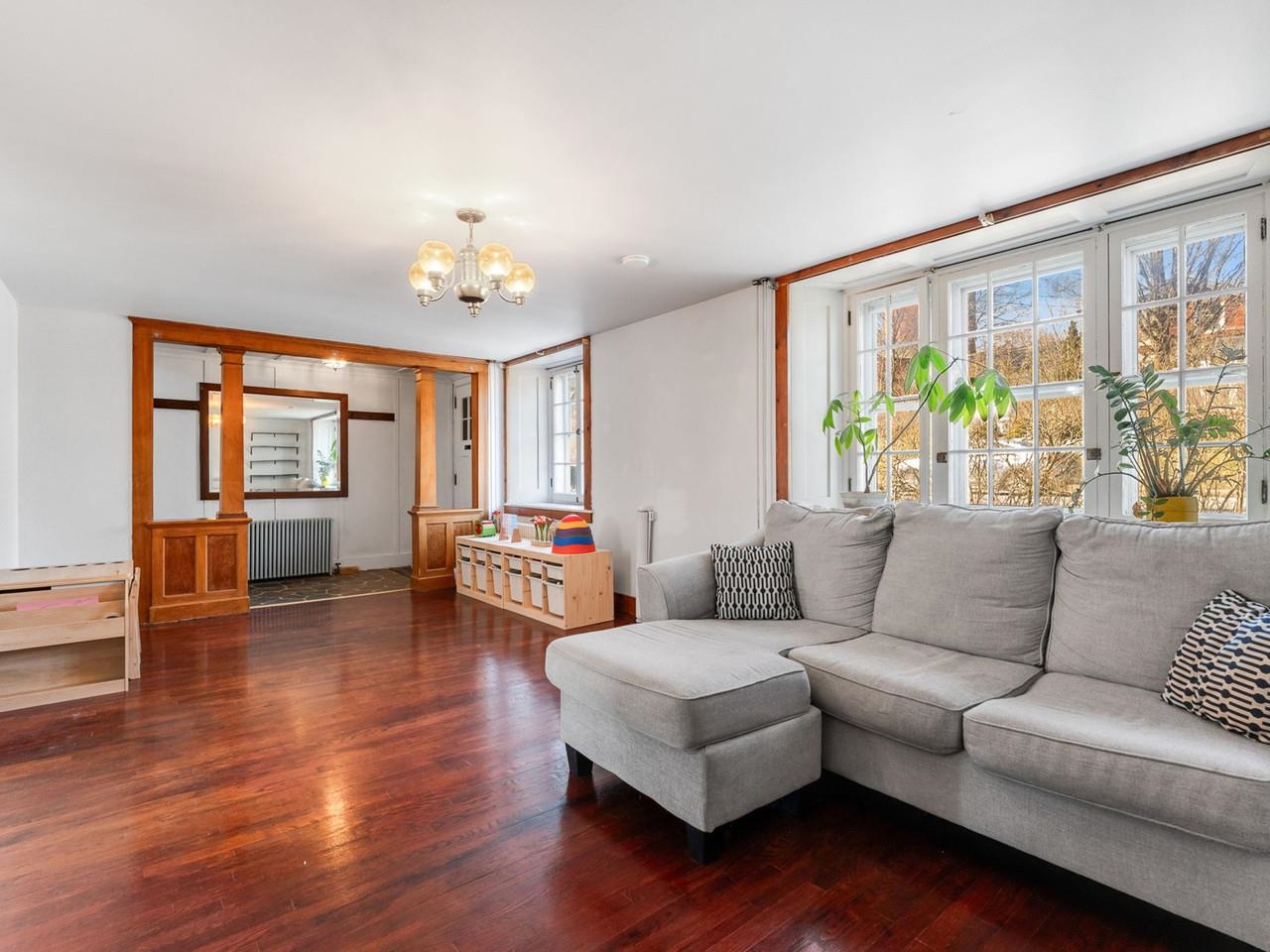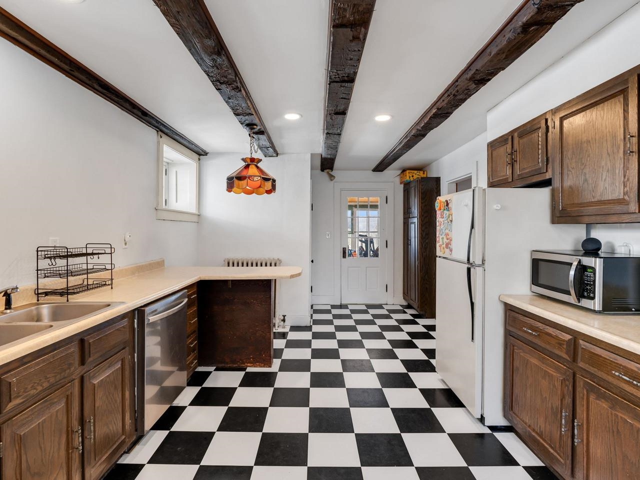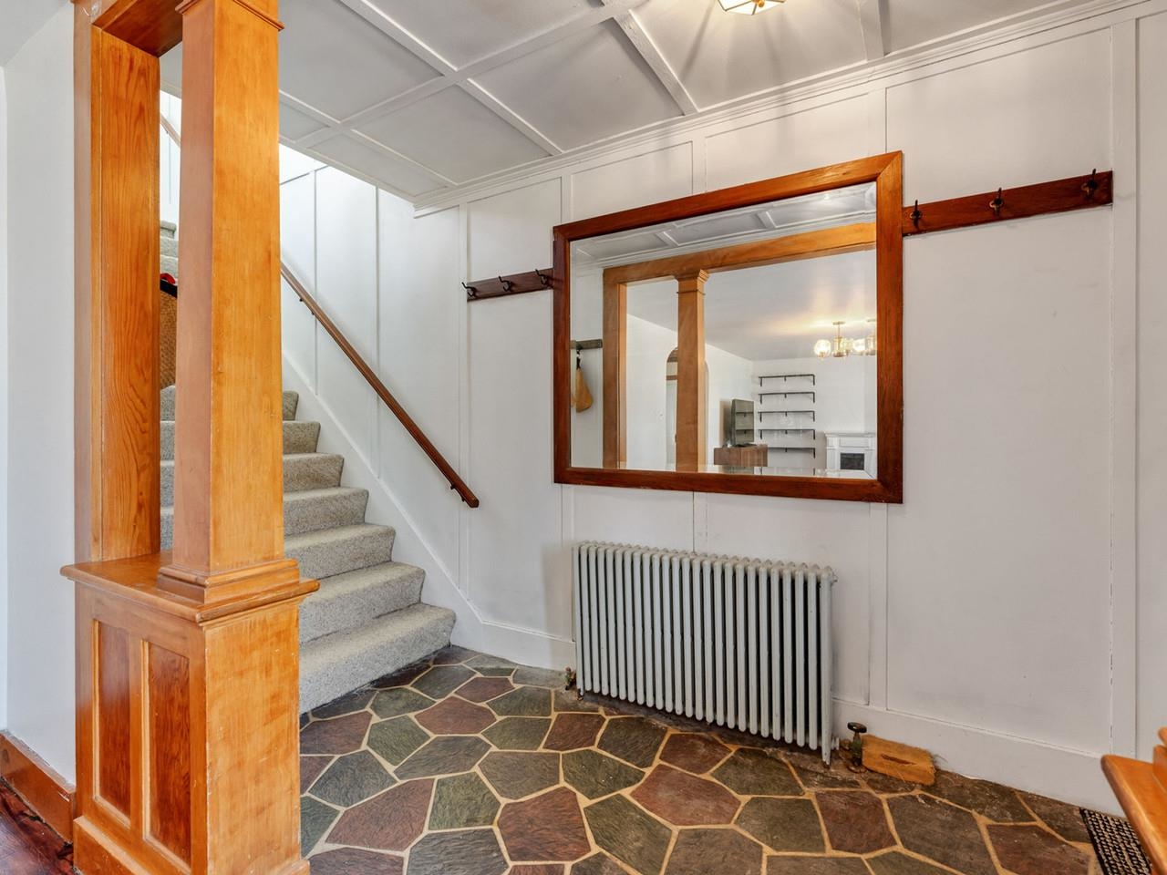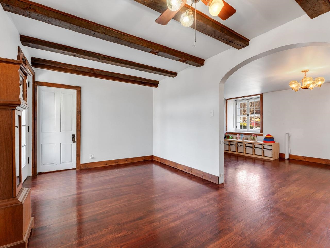 This beautifully preserved 1880s home sits right in the heart of Vergennes, offering the ultimate convenience just a stone's throw from local favorite restaurants and a literal front-row seat to the annual Memorial Day parade. Inside, you are greeted by the warmth of original woodworking, including striking exposed beams and hardwood floors that have been recently refinished to a brilliant shine. The main level features a spacious living room and a large formal dining room that flows seamlessly into an eat-in kitchen complete with an island, as well as a convenient first-floor half bath and laundry. Upstairs, the second level hosts two bedrooms and a full bathroom, along with two versatile bonus rooms that are perfect for dedicated office spaces or playrooms. The outdoor living options are equally impressive, featuring a private balcony area, a charming three-season porch, and a generous deck designed for grilling while taking in elevated views of the city. Practicality meets historical charm in the basement, where tall ceilings and walk-out doors provide excellent potential for a garage or extensive additional storage, all complemented by a fresh coat of paint throughout the home that makes this historic gem move-in ready.