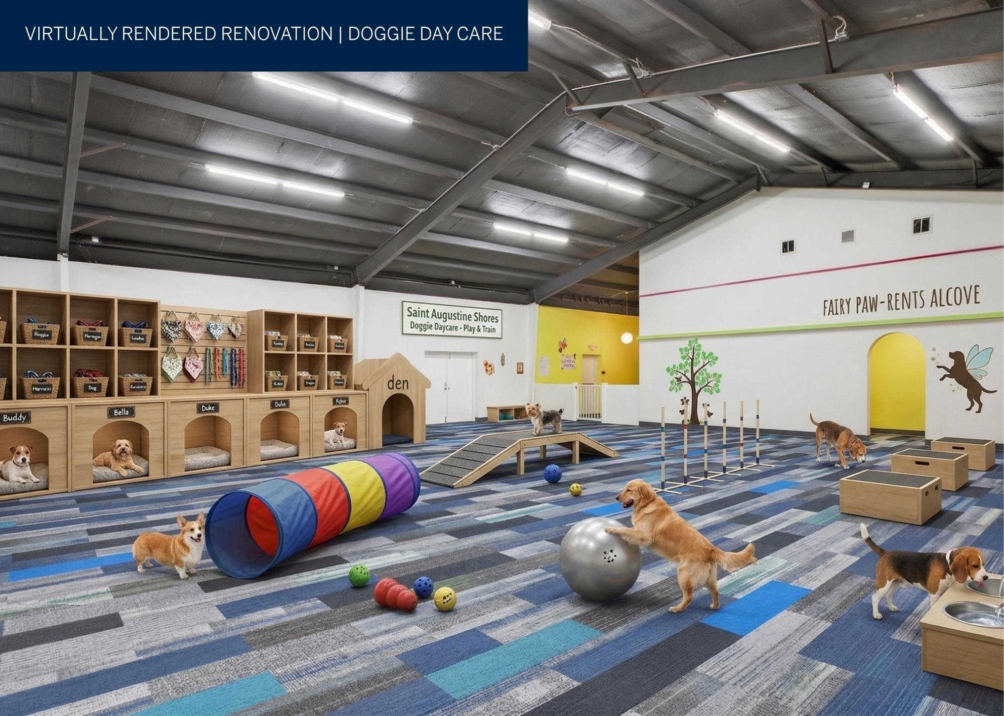 St. Augustine beckons the visionaries, and this one is built for exactly that. Just under two miles from Historic Downtown St. Augustine, this fully renovated commercial space gives you the freedom to operate, create, and scale without compromise. Zoned Commercial Intensive (CI) with active retail approval, it’s the kind of flexibility that’s getting harder to find, and downright impossible to recreate to this caliber. The zoning is the most inclusive and flexible available, and a list of approved uses and uses by variance is on file. The interior of the finished warehouse offers 4, 000 square feet of climate-controlled space with volume ceilings, a polished front reception, private office, conference area, and multiple storage rooms. It’s dialed in for a business that needs both presence and practicality. Every finish & system was done within the last two years and brought fully up to code with permits in place. The details are already handled: New sewer line + lift station, city sewer connected; new water line with multiple exterior access points; complete electrical upgrade with ample power, lighting, and signage readiness; Two ADA-compliant restrooms + compliant parking and access; fire code updates including new exit; washer/dryer hookups + utility sinks for operational ease; 13 parking spaces including one ADA with off-street parking for approximately 11 more. The layout works whether you’re running a showroom, creative studio, hybrid retail concept, or scaling something more operational behind the scenes. Possible uses include gymnastics studio, yoga school, dance company, health club, co-working space, daycare, specialty food store, membership-style dog park, communal restaurant facility, hair salon, vocational school, administrative offices - the list is inclusive and lengthy. There’s space to build your brand out front, the infrastructure to support it behind the curtain, and the signage & parking to welcome your clients.