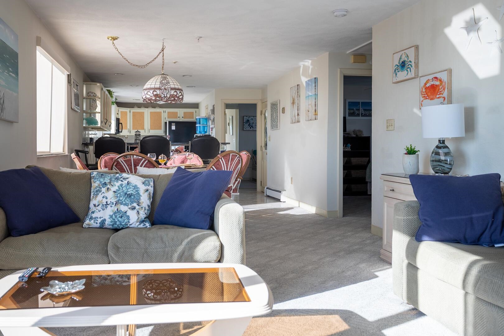 Spend the winter by the sea in this top-floor, 3-bedroom, 2-bath condo featuring ocean views and in-ground pool access. Enjoy the wrap-around deck, perfect for taking in the salty sea air, or walk across the street to North Beach, known for its great surfing and scenic sidewalks. The Main Beach in Hampton is just a 20-minute walk south, with shops, restaurants, and KB Bagels & Java nearby. This condo includes a washer and dryer in-unit, TVs in all bedrooms and the living room, and linens, towels, blankets, bedspreads, and pillows provided. Bed sizes: 1 King, 1 Queen, 2 Twins. Available as a winter rental from 9/7/26 to 6/15/27, at just $2, 350/month. No elevator access. No pets or smoking permitted. NH Meals & Rooms Tax License #: 045225.