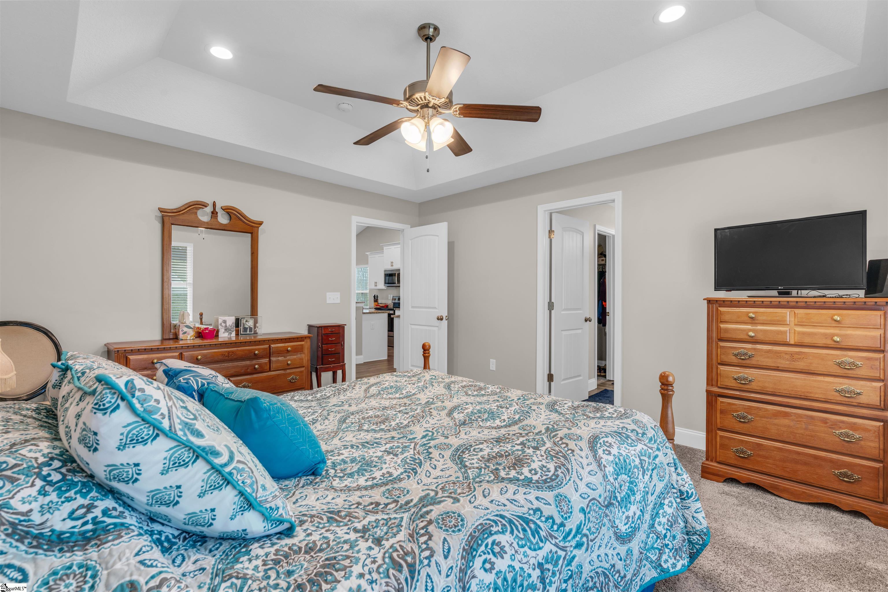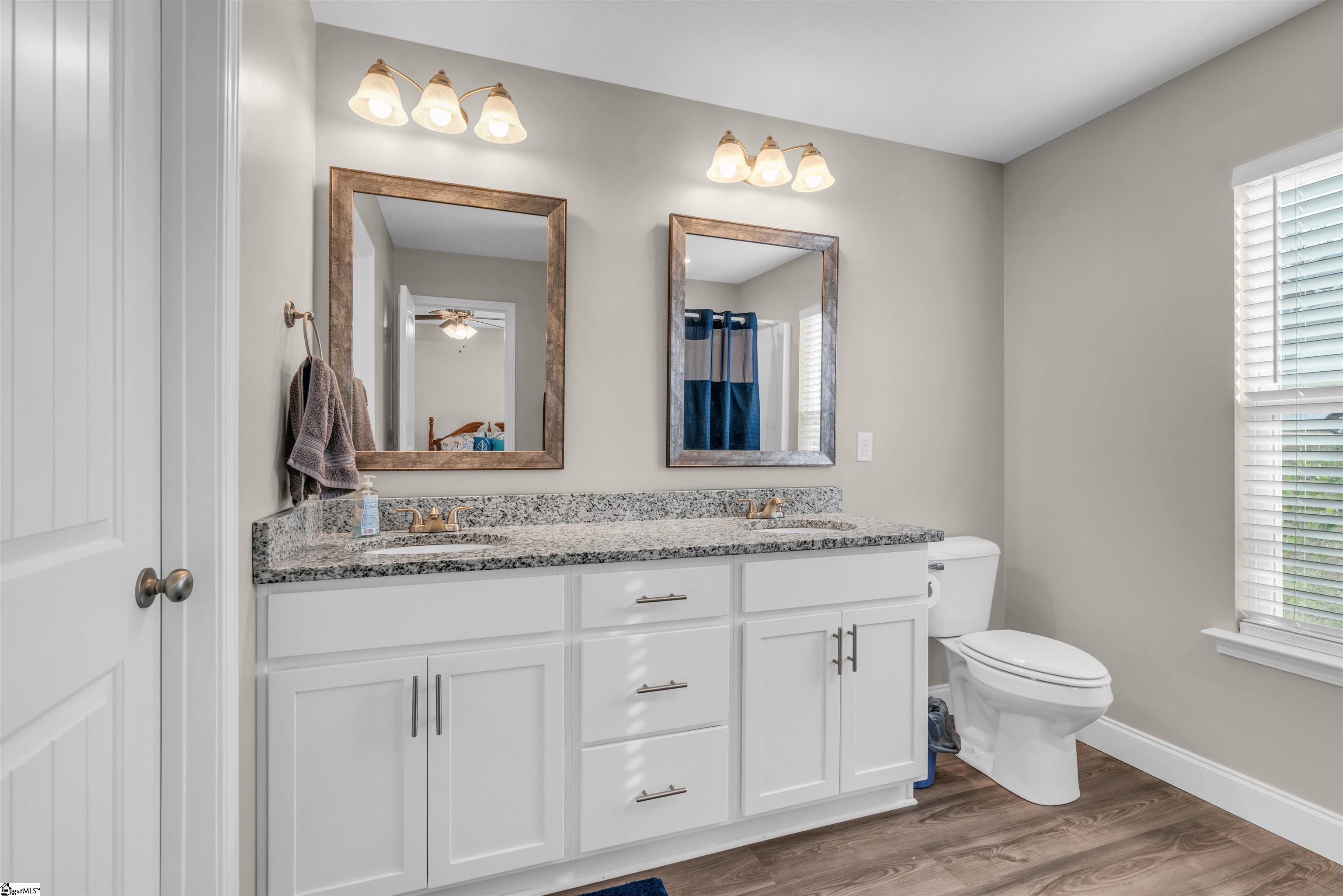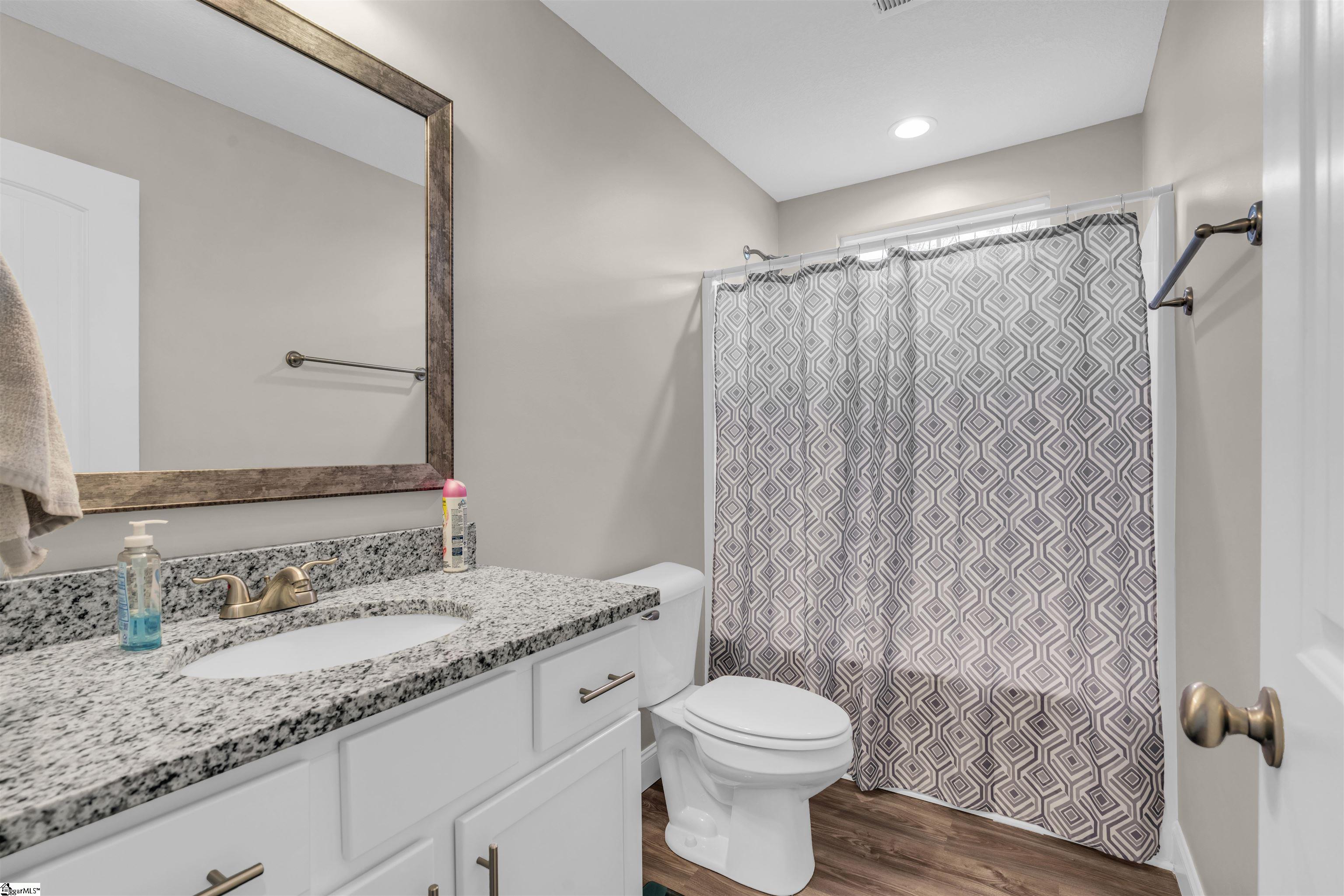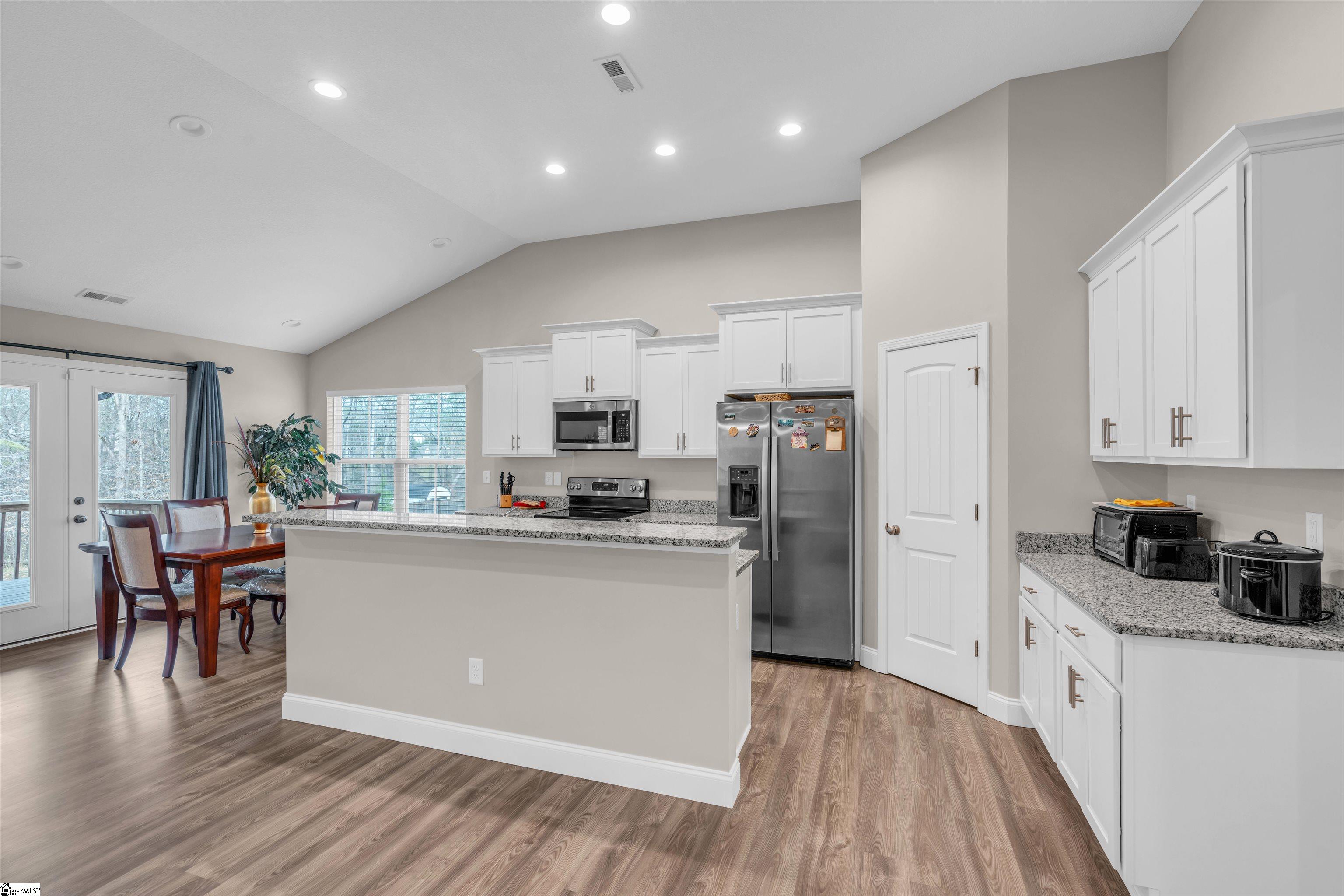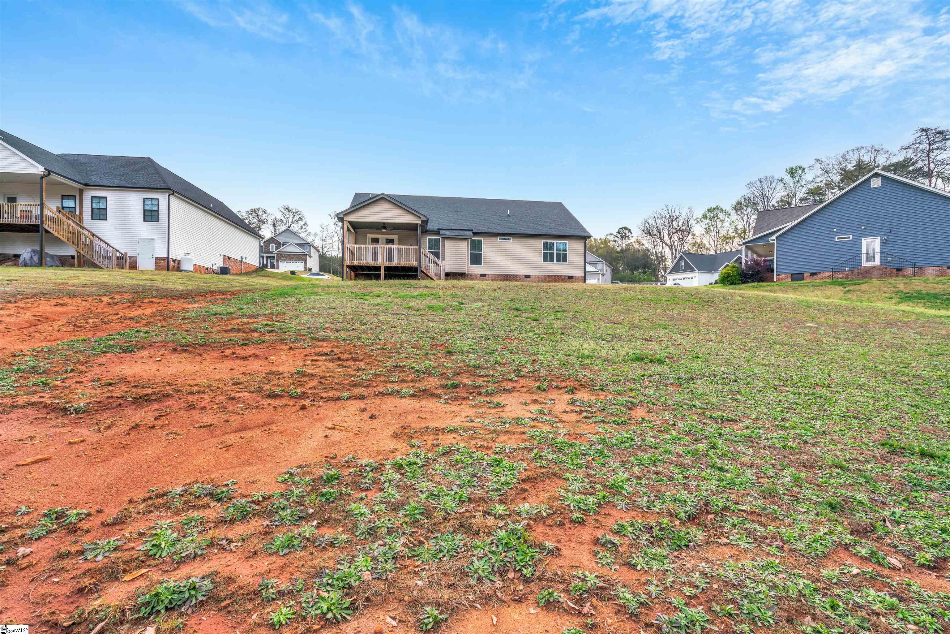 New Listing in School District 5! This home in lovely Gabriel Point is the ranch style home you have been waiting for. This home is location on a beautiful cul-de-sac lot that backs up to a wooded creek area. It offers lots of privacy. As you enter the home there is a covered front porch with some landscaping and shrubbery. The inside greets you with a nice foyer and luxury vinyl plank floors. The floorplan opens to a huge great room with a fireplace and an eat-in kitchen with granite counters, stainless appliances and an island with bar stool. There are raised ceilings that give the space a very open feeling. The floorplan is split with the primary suite located opposite the other bedrooms for the ultimate getaway. The primary bathroom has double sink and a standup shower. The garage is oversized for extra storage of for someone with a hobby. There is a covered back deck that you can grill out even on rainy days. The yard gets great sun so this can be a wonderful garden spot. This home is close to interstate travel and close to Greer, Greenville and Spartanburg. This home is not far from Lake Cooley which has public docking and is wonderful place to fish and picnic. Come see this beautiful home today! Built by local builder.