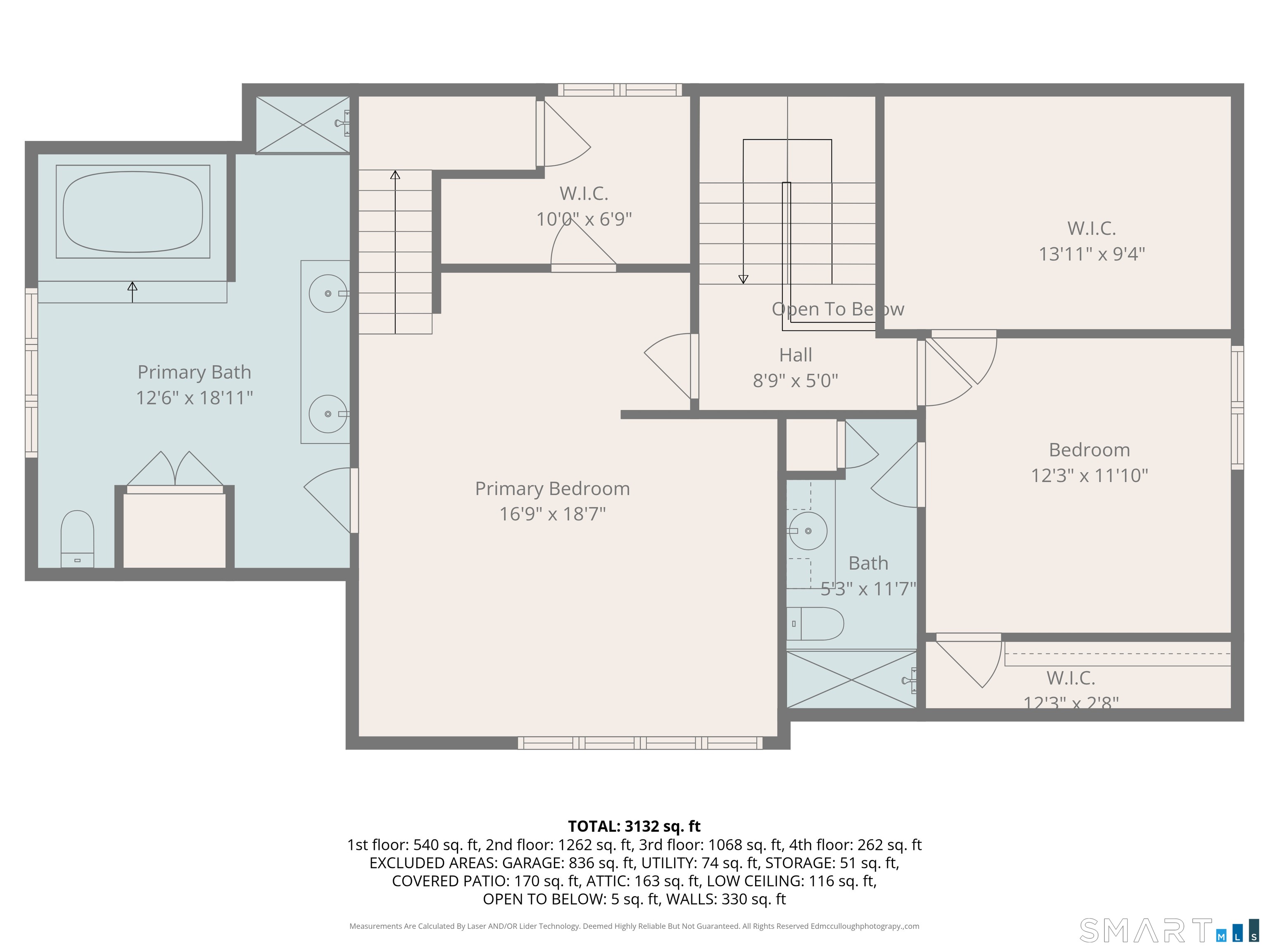 | Primary Bedroom | Full Bath,Walk-In Closet,Wall/Wall Carpet | 18.7 x 16.9 | Upper |