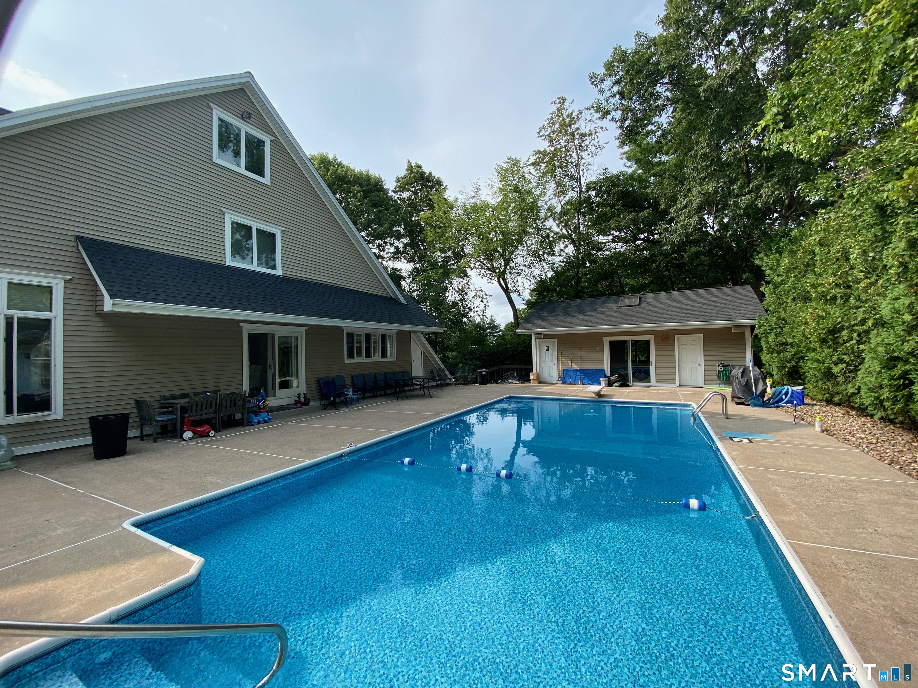 ***HIGHEST AND BEST OFFER DEADLINE OF 4PM ON 4/4*** Experience refined modern living in this striking 3-4 bedroom contemporary home set in the heart of Berlin-Connecticut's geographic center-offering both convenience and a true sense of place. Designed for today's lifestyle, the open-concept floor plan seamlessly blends expansive indoor and outdoor living spaces, making it ideal for large-scale entertaining or everyday comfort. Dramatic ceilings and walls of picture windows fill the home with natural light, creating a bright, airy atmosphere throughout. The gourmet kitchen is a standout, thoughtfully appointed with a Viking oven-range, Sub-Zero refrigerator and new LVP flooring, perfect for both casual meals and culinary pursuits. Paneled library if perfect for home office use or can serve as a 4th bedroom. Generous storage is found throughout, with walk-in closets in nearly every bedroom, providing exceptional functionality. The spacious primary suite offers a private retreat, complete with an adjoining office or yoga studio and an oversized bath ready to be customized into your own modern sanctuary. Step outside and start counting down to summer-this property truly shines with its in-ground pool and premium cabana, featuring a full bathroom and kitchenette, delivering a resort-style experience right at home. Auto enthusiasts will appreciate the 3-car garage too! Room in lower level was used as a 4th bedroom. 4th full bathroom is in the pool house.