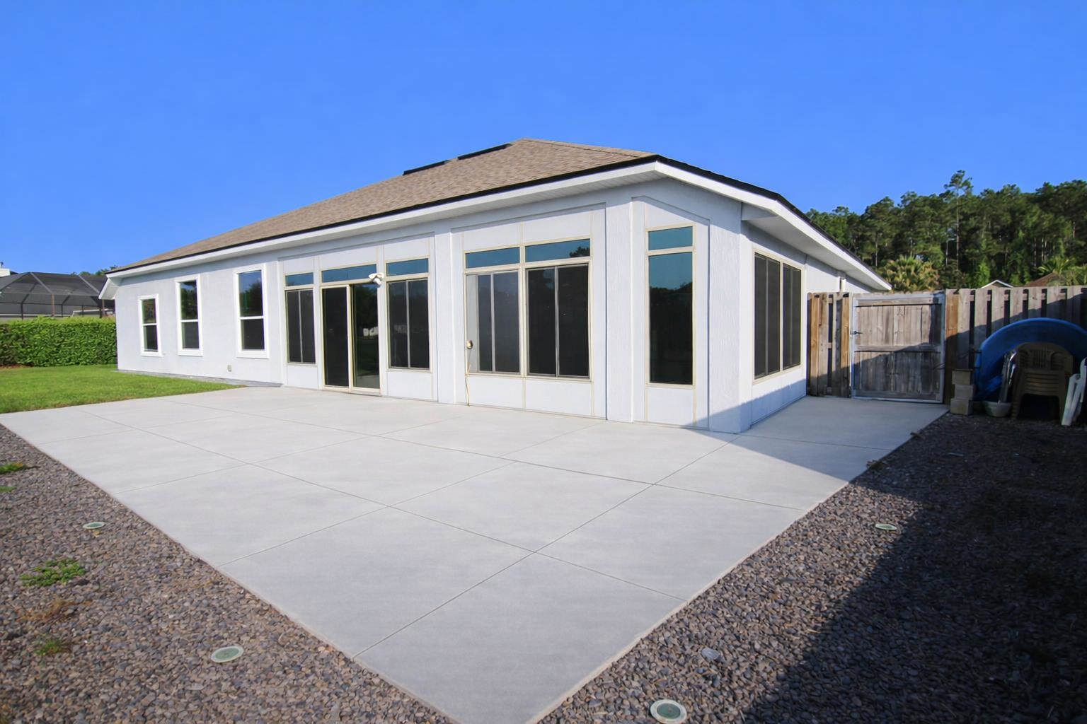 Welcome to Whisper Ridge! If you are looking for a beautiful home, with an incredible floor plan in an amazing neighborhood and NO CDD fees!, this lovely ranch is for you. Spread out in this 2710 sf, 5 bedroom, 3 full bath home with a separate dining room, family room, and formal living room. The white kitchen cabinets are equipped with custom pull out shelving, and the countertops are upgraded with a rich dark granite and tiled backsplash. The kitchen which opens to the family room, includes a breakfast nook, a bar, and a built-in kitchen desk. There are two sets of sliding doors, one off the family room and one off the living room, allowing access to the additional 391 sf (glassed & screened) Florida room. This room is spacious enough to accommodate a pool table, or used as a gym, and/or host large gatherings overlooking the patio area. The 2nd bedroom and full bath, just off the family room, is ideal for guests, or could be used as an in-law suite. The third and fourth bedrooms are joined by a Jack & Jill full bath with double sinks and a tub/shower combo. All bathrooms have granite countertops, and the extra large master bath has pull out shelving for both vanity areas, along with a huge tiled shower and separate garden tub. The master bedroom boasts two large mirrored walk-in closets great for separate clothing storage. Three of the master bedroom windows overlook the Florida room, and the tray ceiling gives added architectural appeal. You will have plenty of privacy in this floor plan, as the additional bedrooms are at the opposite side of the home. The garage floor has been painted, and garage provides ample storage with 3 closets across the back of the oversized garage. The indoor laundry room has a sink and built in cabinets. A 30-year architectural roof was added in November 2017. There is a termite bond that has been maintained throughout the ownership of the home, as well as coverage for lawn and dwelling pest control. The hot water heater was replaced just 3 years ago. There is built-in RainSoft system (owned outright) that covers air purification, water softening, and drinking water purification. A large, concrete, outdoor back patio has been added, and a 6' fence is along the side and back of the property granting serenity and privacy, while still maintaining a clear view of the pond and the adorable visiting wildlife. Additional Comments: A second refrigerator/freezer unit located in the garage will convey with the sale of the home. The driveway will hold up to 7 vehicles. Exquisite double crown molding is found in every room. Ceiling fans throughout, including 2 in the Florida Room, and one in the kitchen. This location is not only convenient to shopping areas, but also just 1. 3 miles to I-95, so great for commuting. All back windows have been coated with a reflective film which strengthens the glass in hurricane situations, and provides lower temps for those hot Florida days. For minimal yearly dues, the Whisper Ridge Community amenities include fishing ponds, 2 lovely playgrounds, swings, and a huge open field The deep water well on the property is used for irrigation, and saves on water expense.