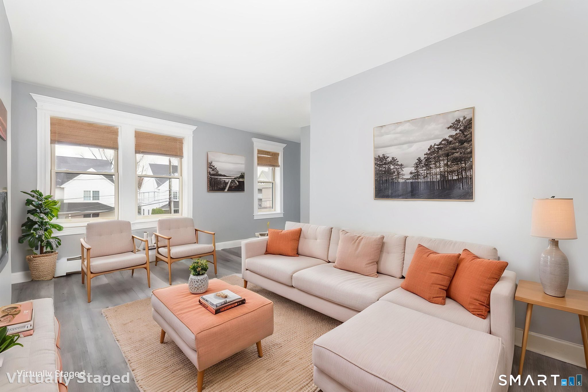 Welcome to this beautifully renovated two-family home-an exciting opportunity for homeowners and investors alike! Whether you're looking to live in one unit while generating rental income or seeking a fully income-producing investment, this property offers outstanding flexibility and value. The first-floor unit features 1 bedroom and 1 bathroom, while the spacious second-floor unit offers 4 bedrooms and 3 bathrooms-perfect for a variety of living arrangements. Both units have been recently updated with thoughtful improvements that deliver modern comfort and style throughout. Upstairs, you'll love the upgraded kitchen with new granite countertops, a new sink, dishwasher, and range hood. Downstairs, the first-floor unit shines with beautiful new countertops, a new sink, plus a new washer and dryer and refrigerator. Both units have been freshly painted, offer generous closet space, and provide everyday convenience-each with its own dedicated features (washer/dryer in the first-floor unit and dishwasher in the second-floor unit). Step outside and enjoy the added bonus of a covered back porch for each unit-ideal for relaxing or enjoying private outdoor time. Additional highlights include off-street parking and a perfect blend of timeless charm with today's modern upgrades. Don't miss this move-in-ready, turnkey multi-family with endless potential! This is a duplex style two family the one for sale is the door to the right and another owner owns a 2 family to the left.