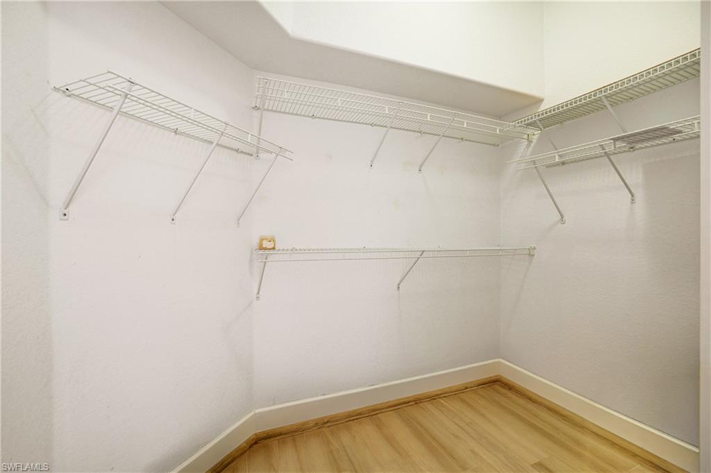The primary suite is generously sized with multiple windows overlooking the lake, and includes a bathroom with dual sinks, a soaking tub, and a separate shower. Recent improvements include a 2022 roof, new pool cage, updated air conditioning system, water heater, impact-rated lanai slider, fresh exterior paint, and epoxy garage floor. Located in Queens Park, this property offers convenient access to downtown Naples, including shopping, dining, beaches, and local parks. Low annual HOA fees.