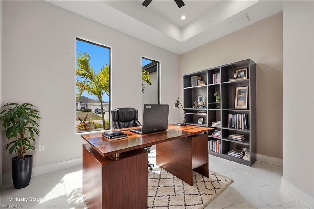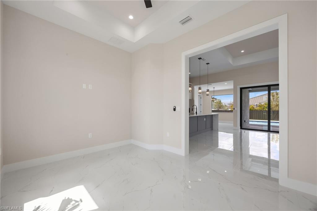 Step outside to your resort style private pool and lanai, complete with a 15 by 30 concrete pool, paved deck, outdoor kitchen, and covered entertaining space, perfect for enjoying Southwest Florida sunsets year round. The fully fenced backyard provides added privacy, while the automatic irrigation system and professional landscaping enhance curb appeal.
