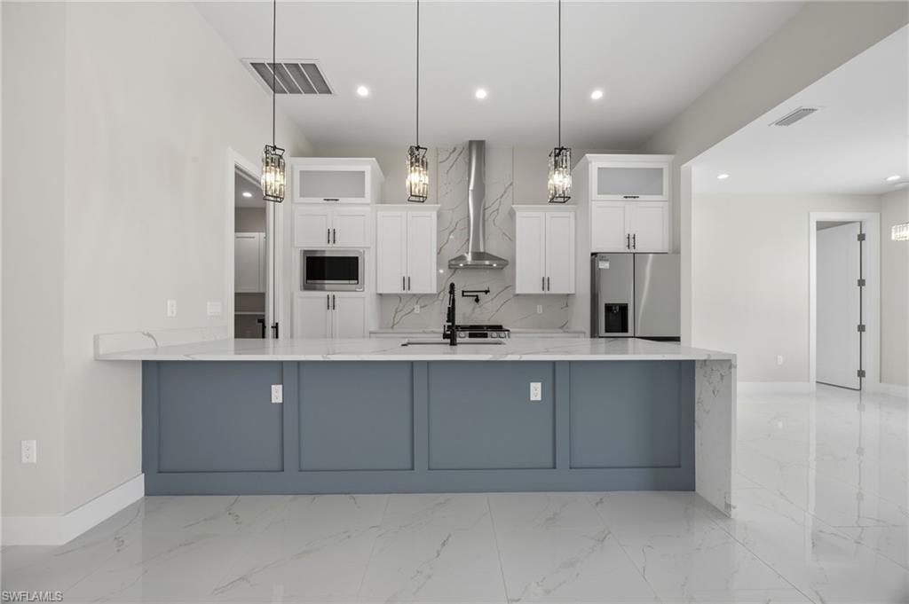 The heart of the home is the luxury chef’s kitchen, designed with both functionality and elegance in mind. Enjoy quartz and marble countertops, a large center island, stainless steel appliances, custom cabinetry, a built in microwave tower, range hood, and pot filler, making this space perfect for entertaining and everyday living.