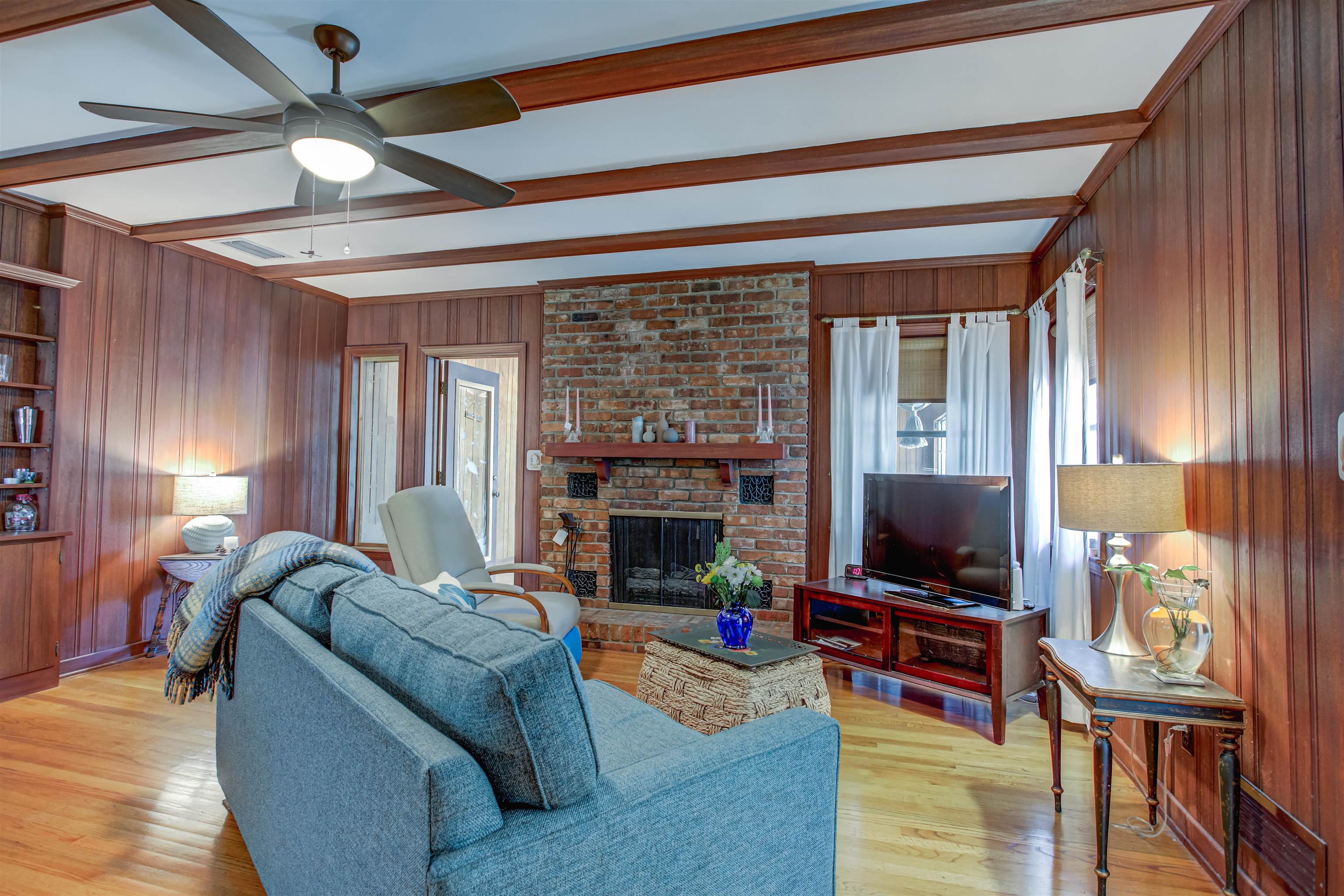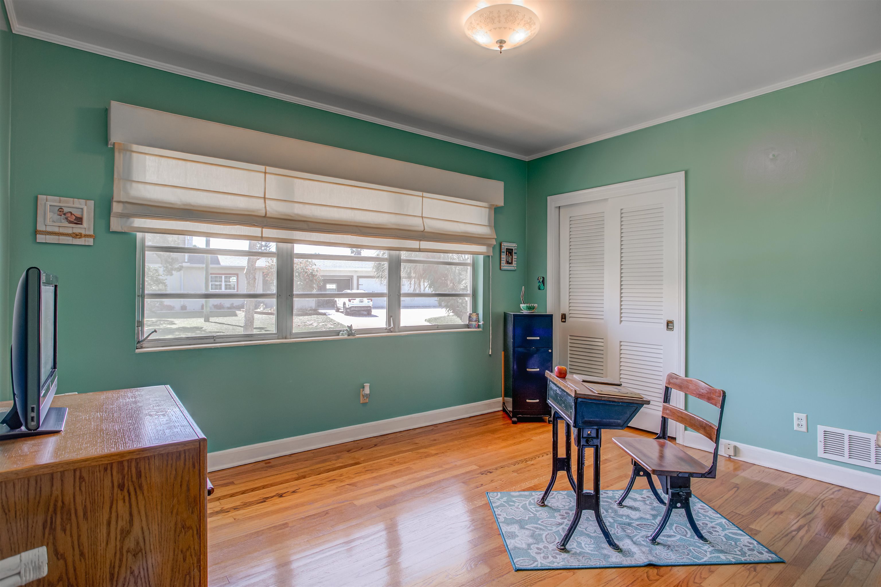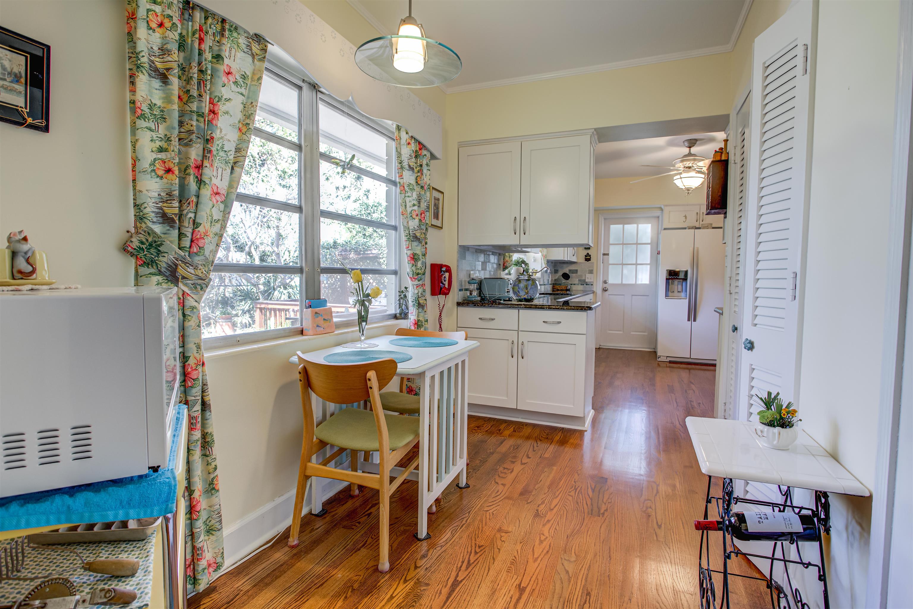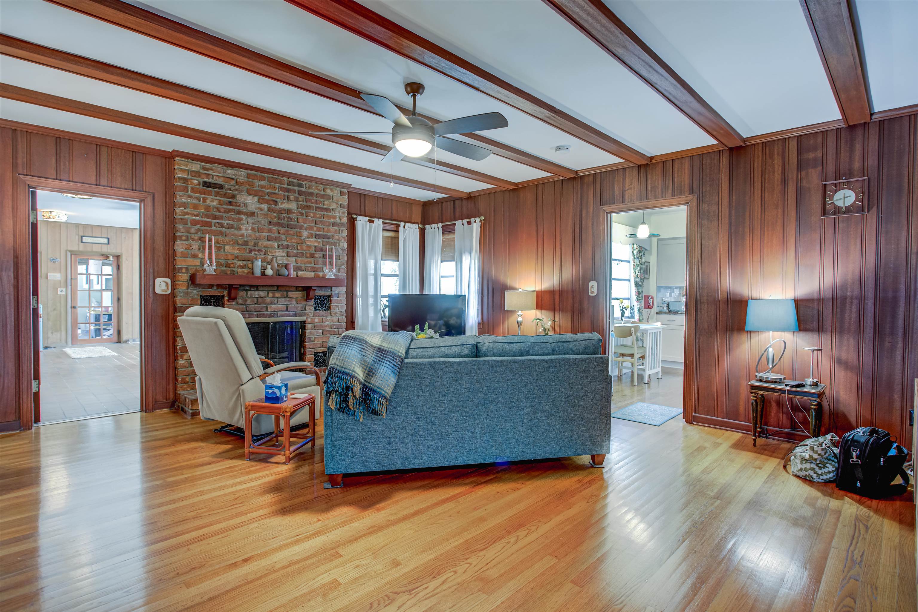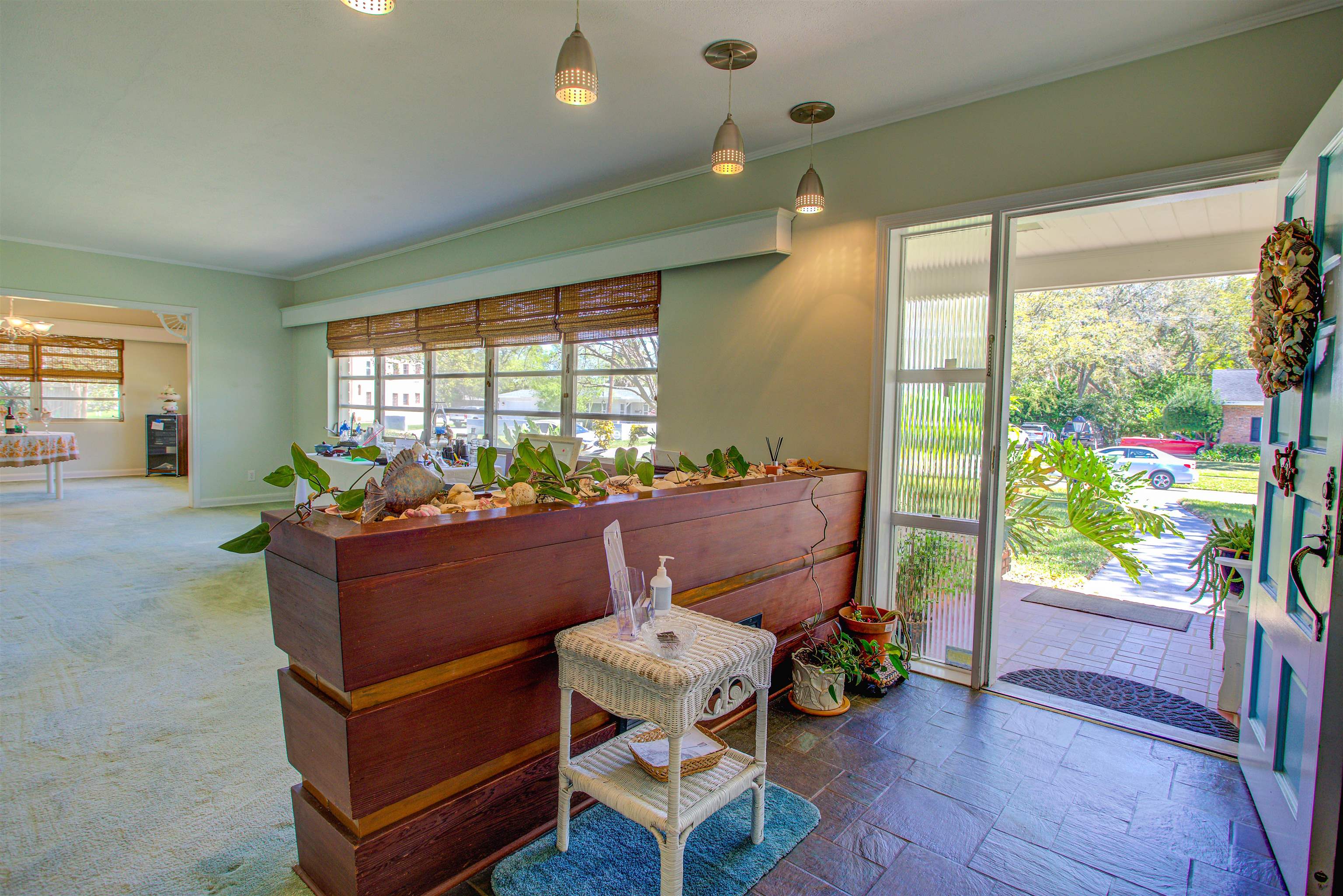 Concrete block 3-bedroom, 2-bath spacious home located in desirable Davies Shores, situated on a prominent corner lot. This well-maintained residence features hardwood floors throughout and a spacious family room with a fireplace that has been converted to gas. 2-car garage leads into a spacious warm and sunny Florida room. The kitchen has been thoughtfully renovated to reflect mid-century period details while offering modern functionality. Solid construction, classic character, and a prime location close to downtown St Augustine, intercoastal waterway, beaches and local amenities make this property a standout opportunity. Custom brick exterior, deck off the kitchen, ideal for morning coffee or evening gatherings all set against a peaceful, tranquil backyard. Home has well for lawn irrigation.