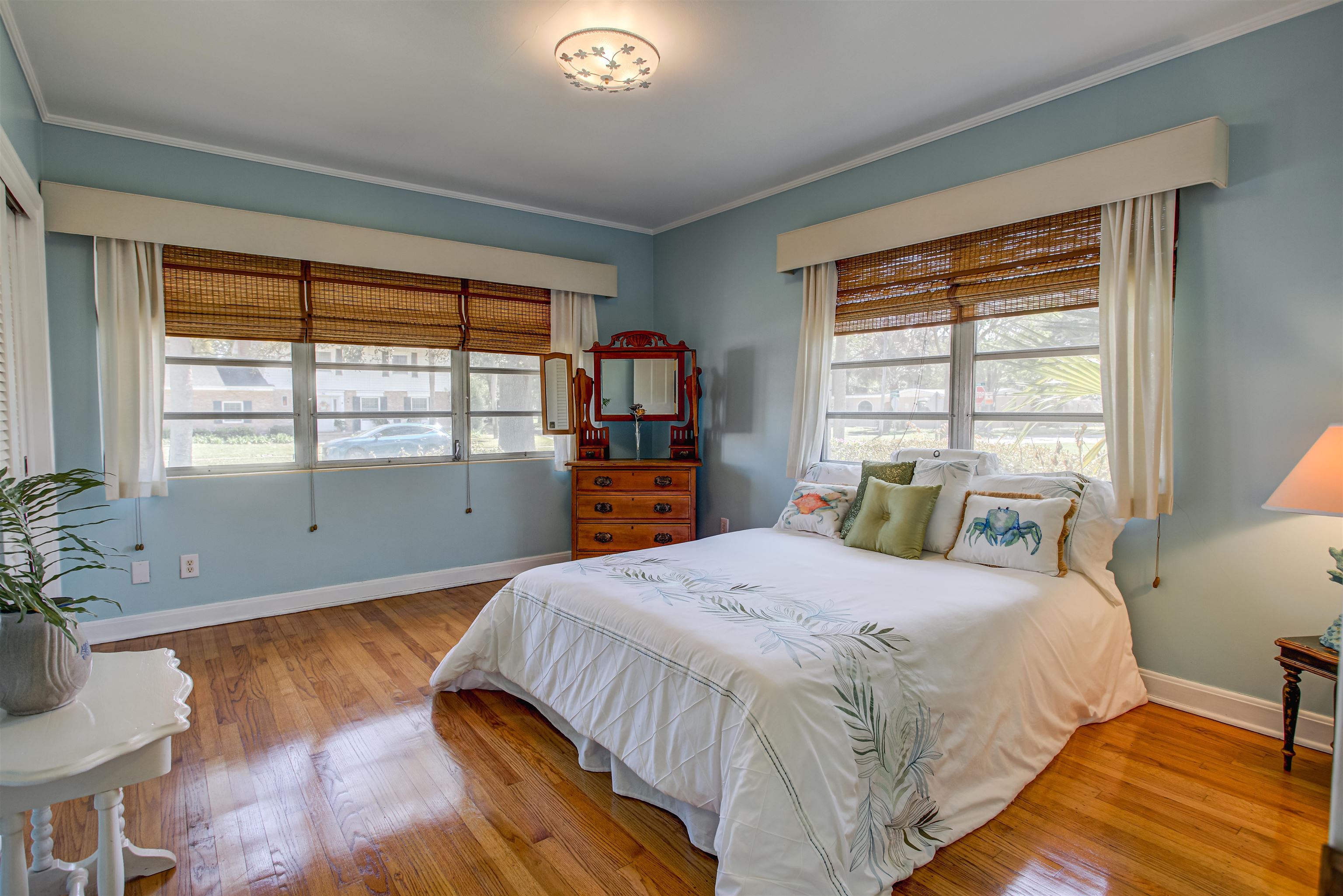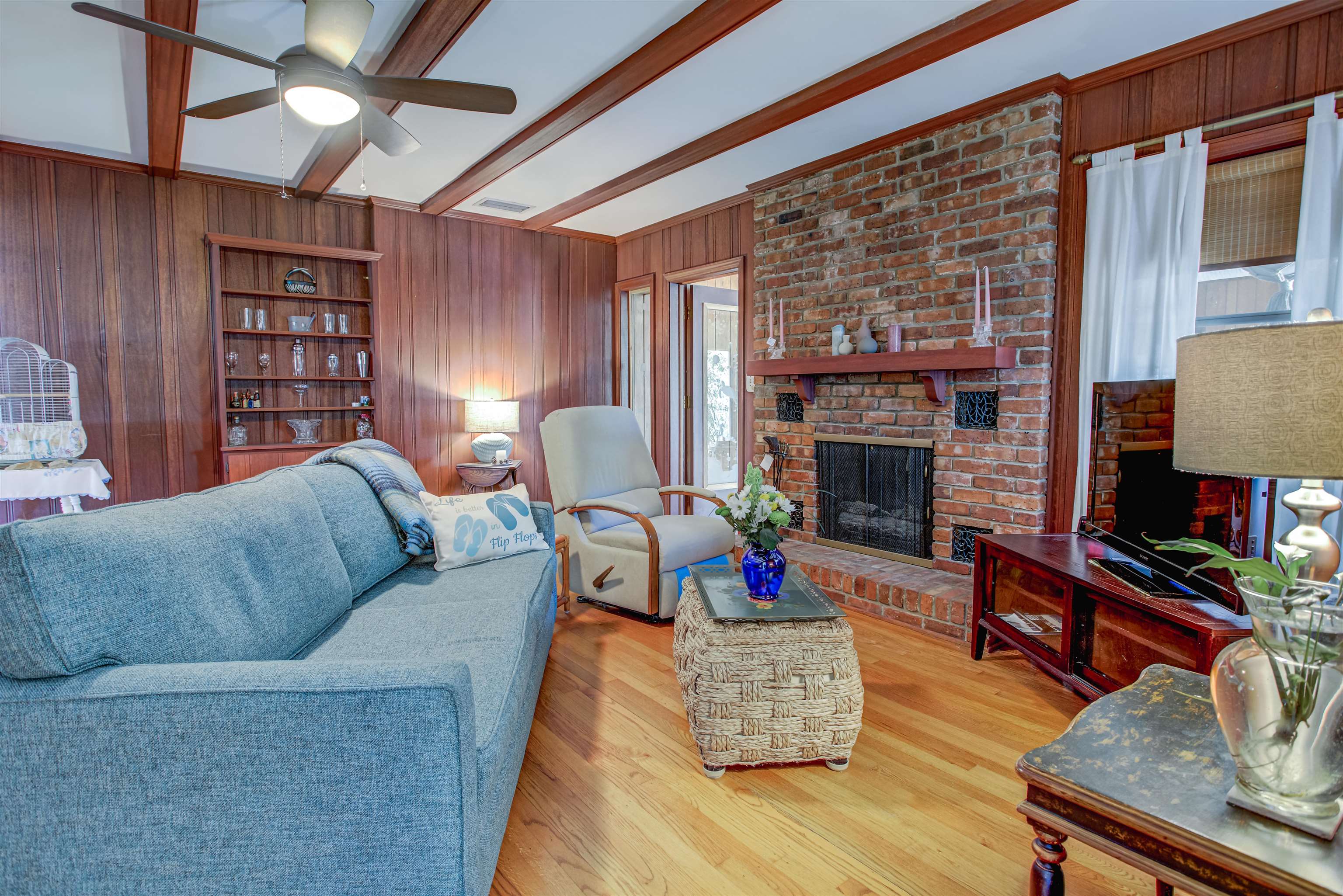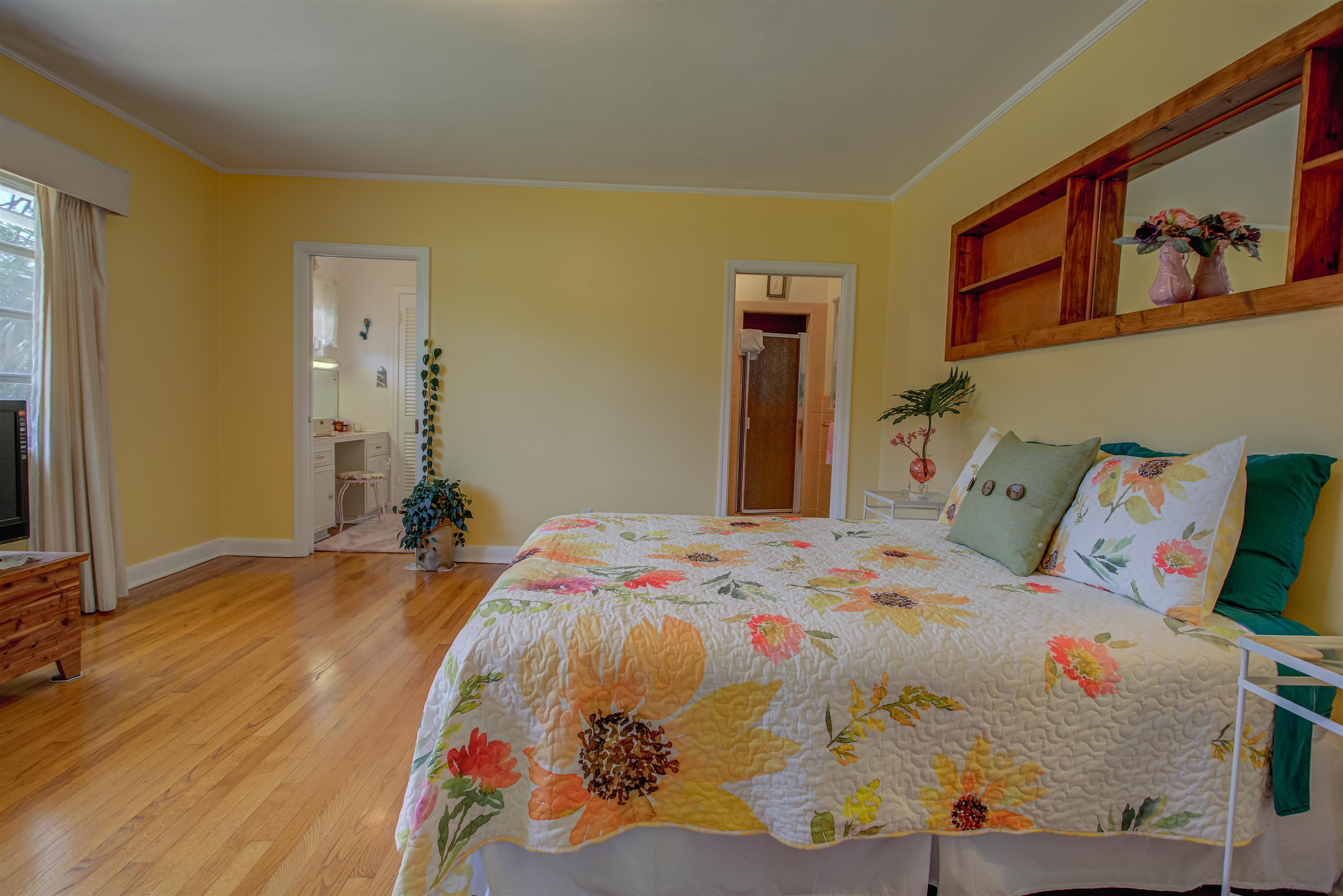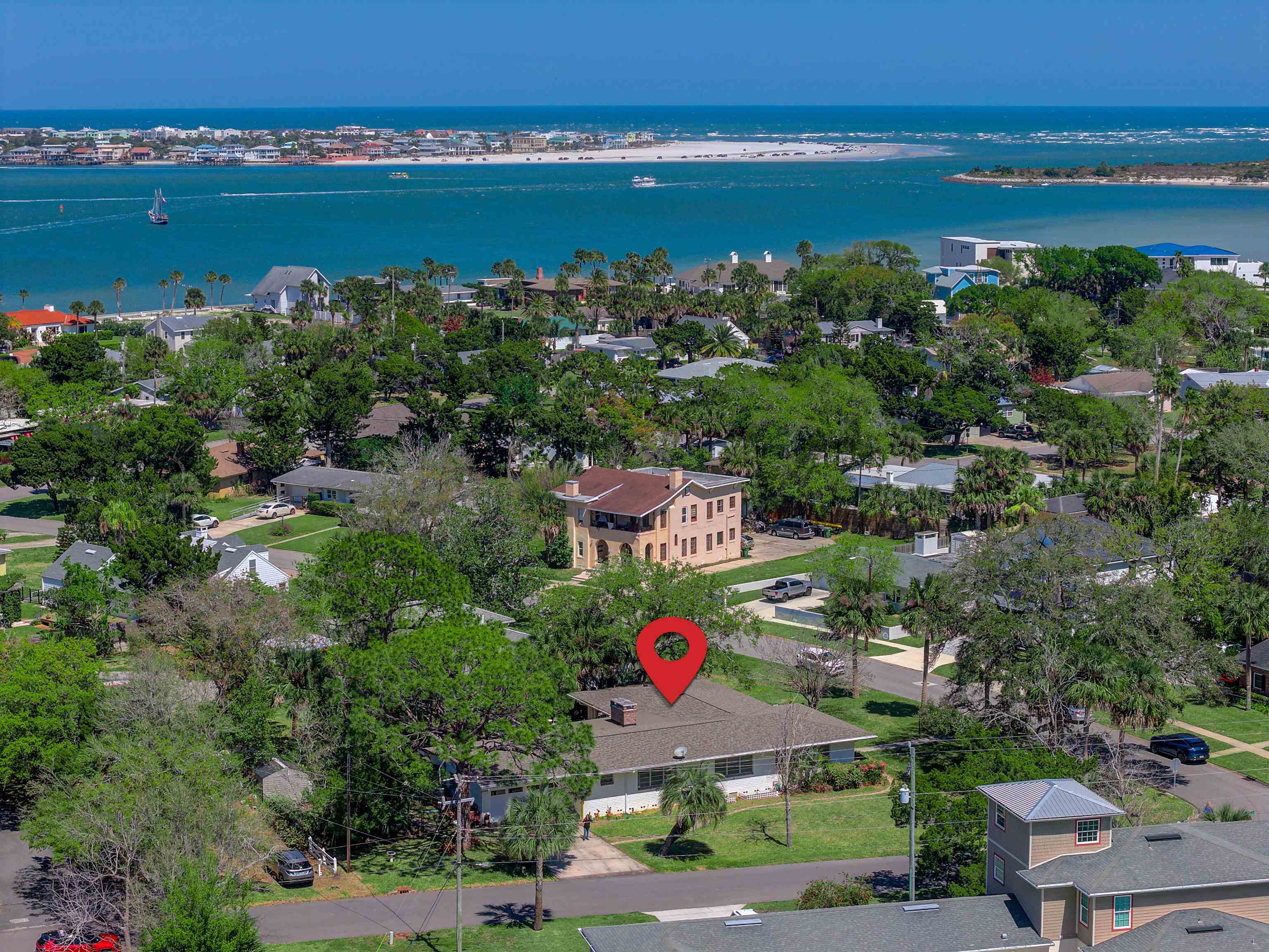 Concrete block 3-bedroom, 2-bath spacious home located in desirable Davies Shores, situated on a prominent corner lot. This well-maintained residence features hardwood floors throughout and a spacious family room with a fireplace that has been converted to gas. 2-car garage leads into a spacious warm and sunny Florida room. The kitchen has been thoughtfully renovated to reflect mid-century period details while offering modern functionality. Solid construction, classic character, and a prime location close to downtown St Augustine, intercoastal waterway, beaches and local amenities make this property a standout opportunity. Custom brick exterior, deck off the kitchen, ideal for morning coffee or evening gatherings all set against a peaceful, tranquil backyard. Home has well for lawn irrigation.