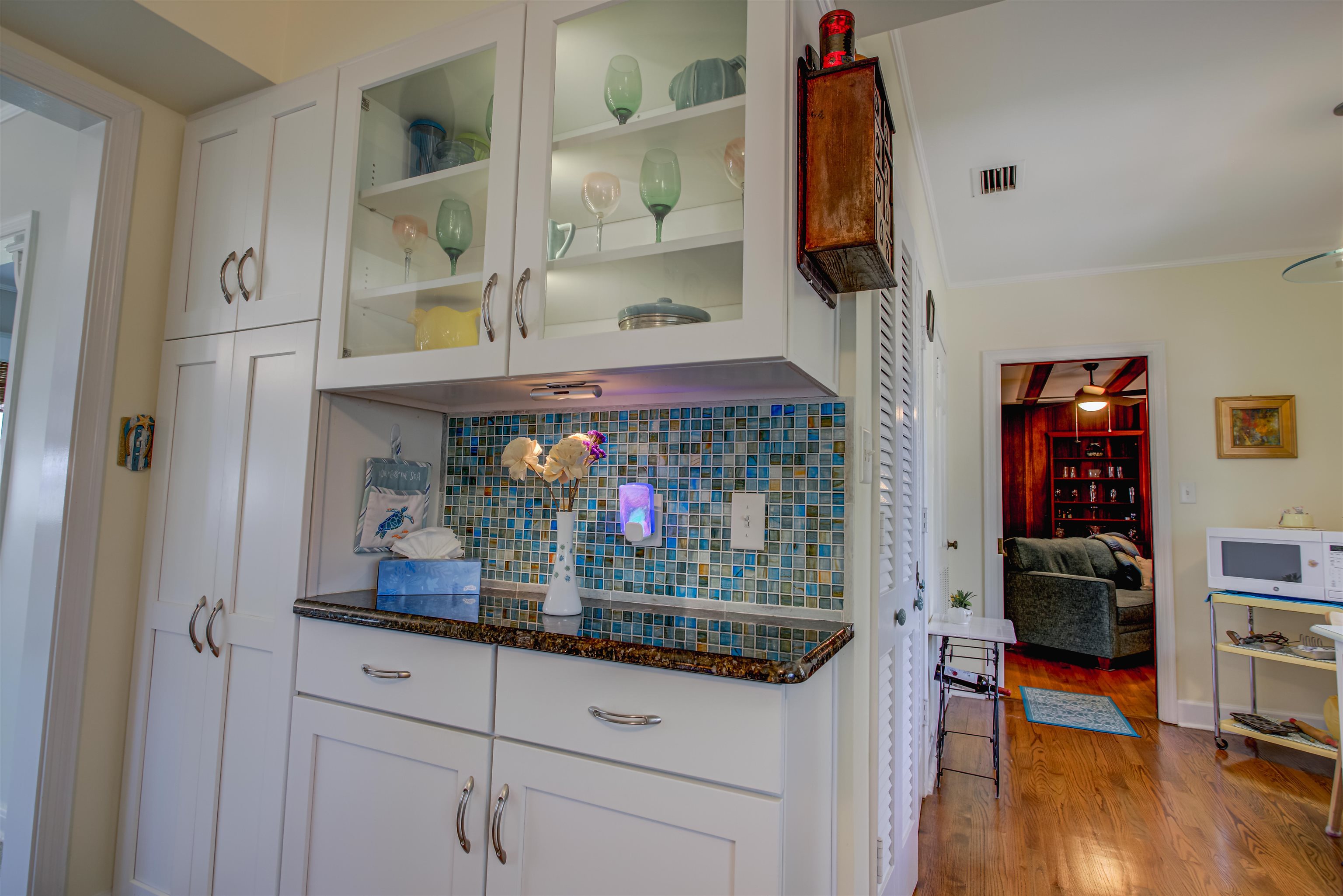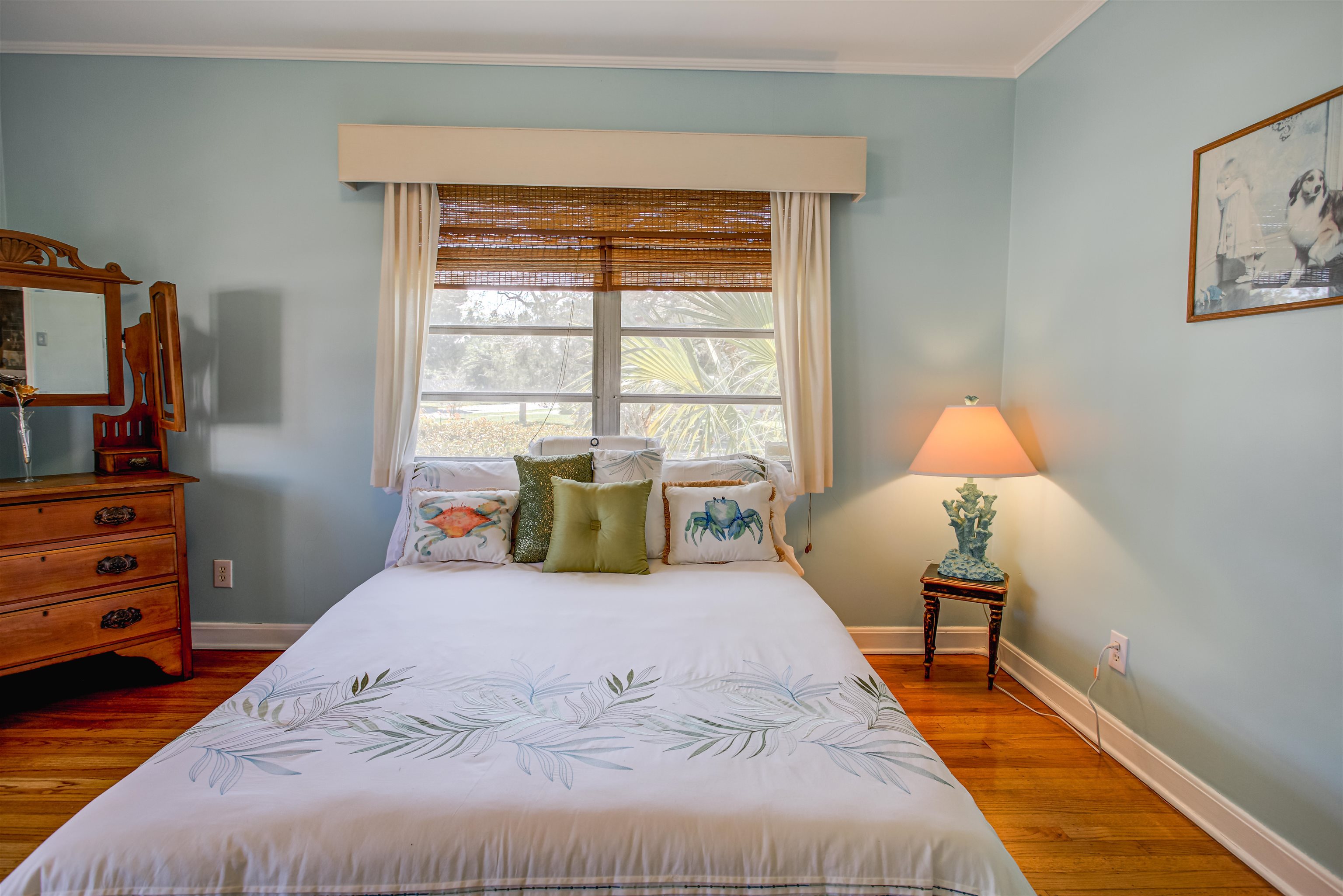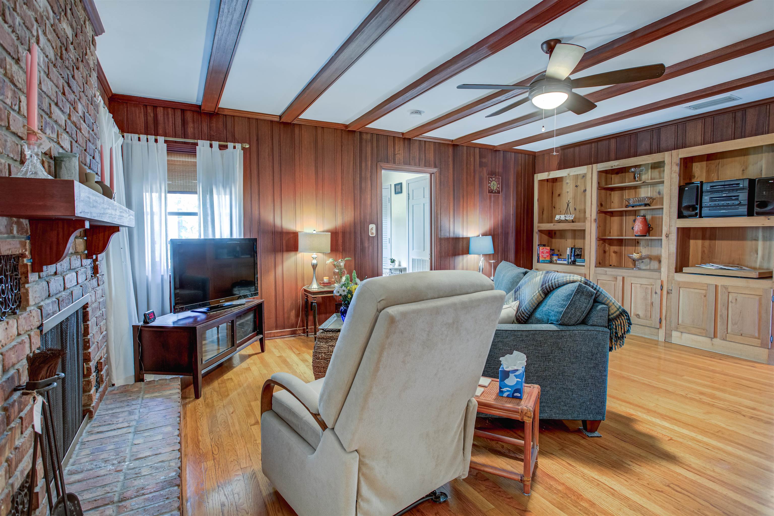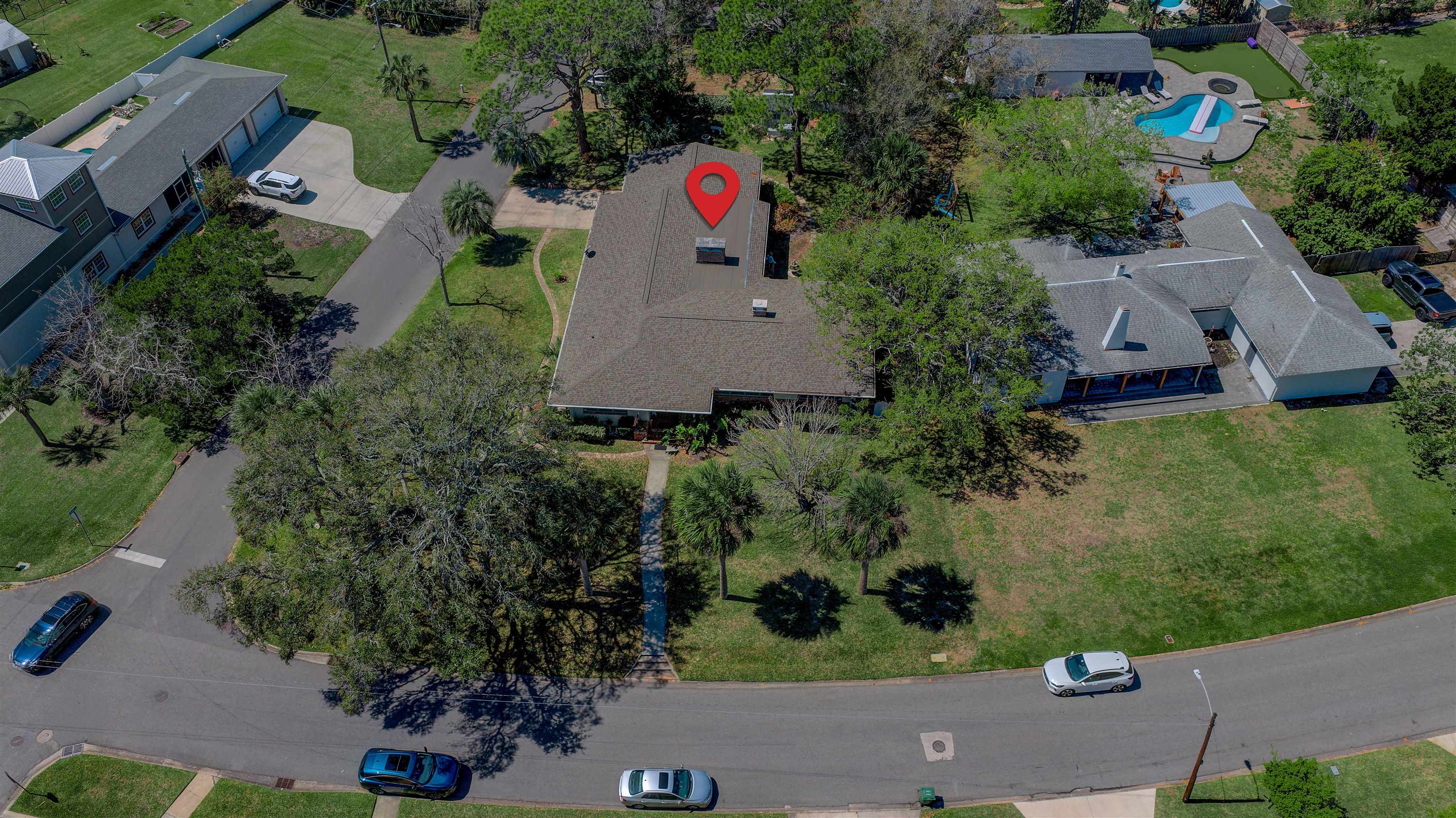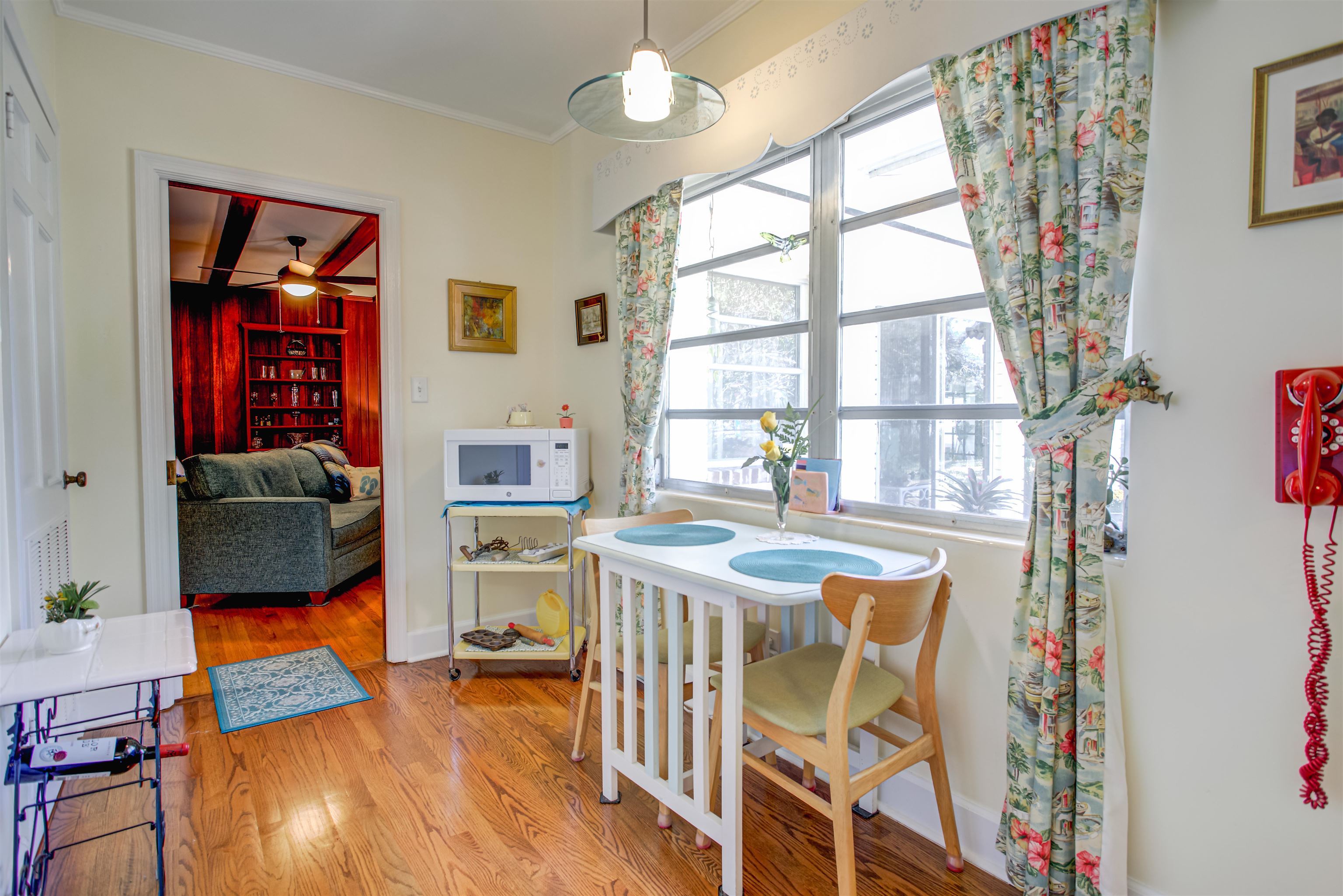 Concrete block 3-bedroom, 2-bath spacious home located in desirable Davies Shores, situated on a prominent corner lot. This well-maintained residence features hardwood floors throughout and a spacious family room with a fireplace that has been converted to gas. 2-car garage leads into a spacious warm and sunny Florida room. The kitchen has been thoughtfully renovated to reflect mid-century period details while offering modern functionality. Solid construction, classic character, and a prime location close to downtown St Augustine, intercoastal waterway, beaches and local amenities make this property a standout opportunity. Custom brick exterior, deck off the kitchen, ideal for morning coffee or evening gatherings all set against a peaceful, tranquil backyard. Home has well for lawn irrigation.