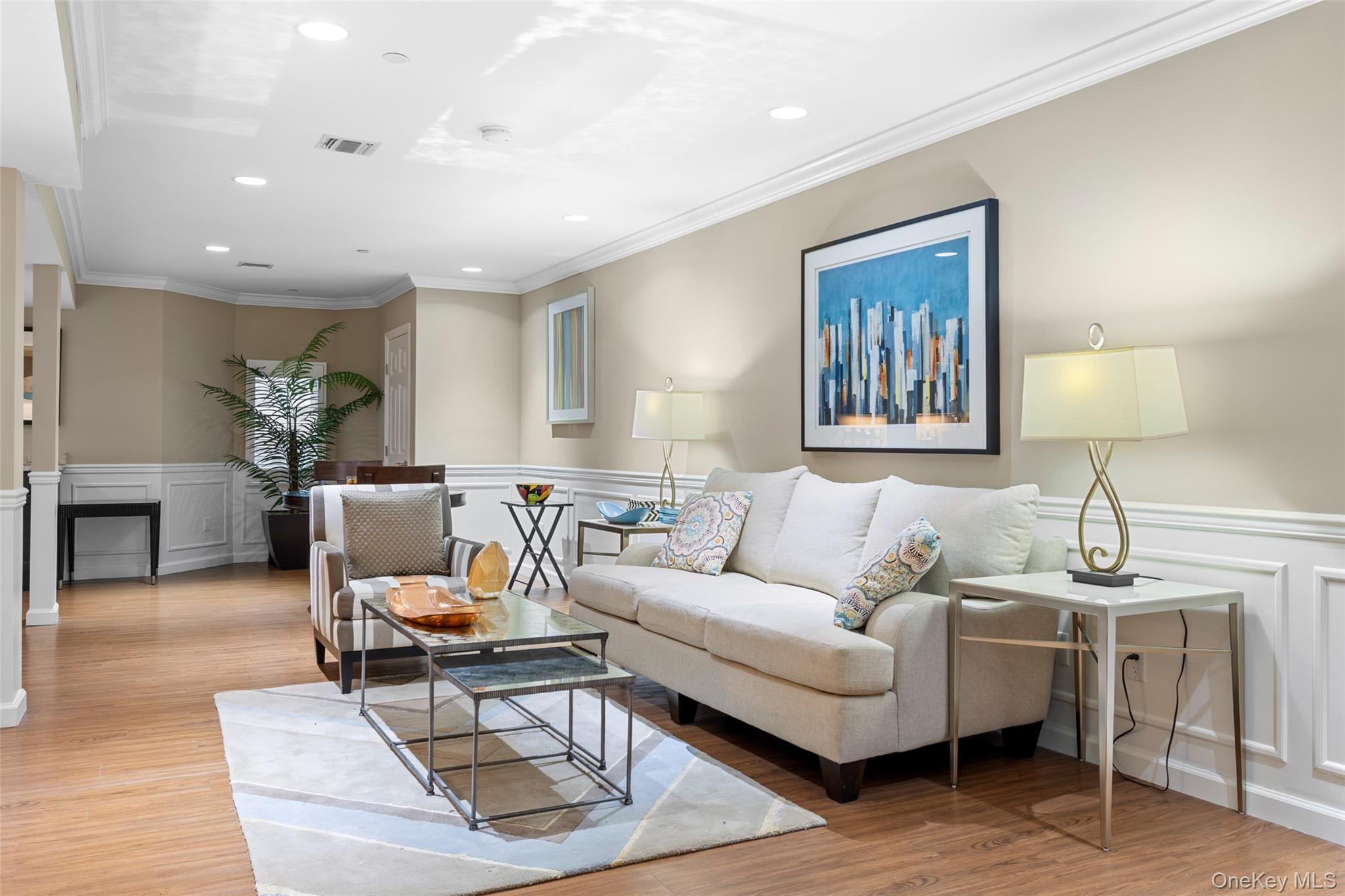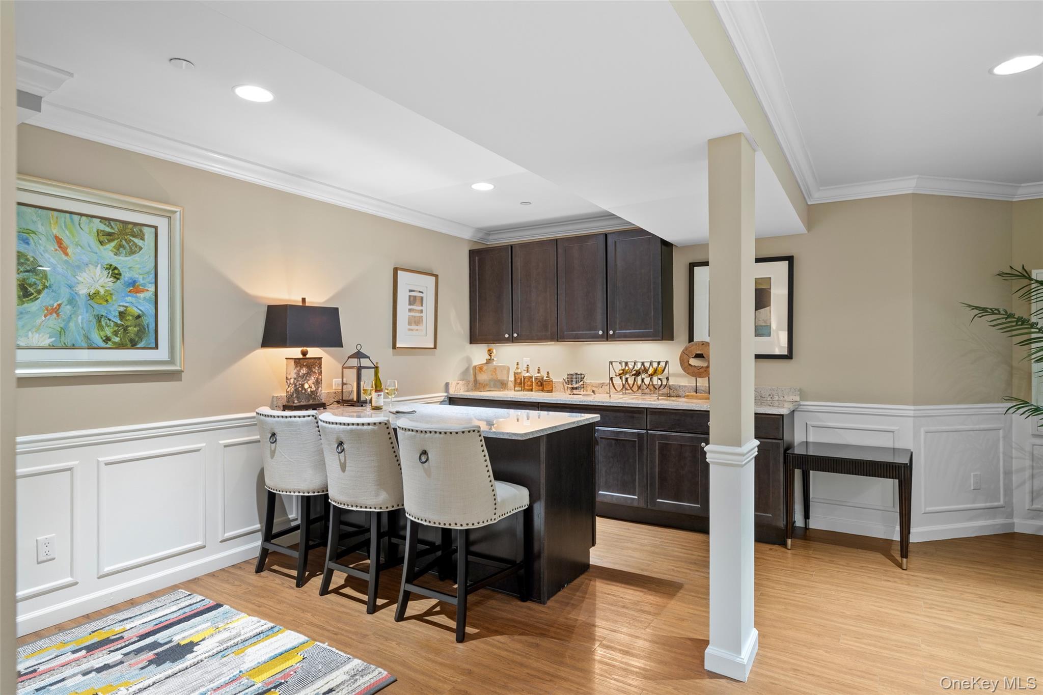 Have you been waiting for a ground-floor unit at The Seasons of Seaford? This is your opportunity to own the original MODEL UNIT, complete with every upgrade and luxury feature. This absolutely stunning home stands out from the rest. In addition to the standard two-bedroom, two-bath layout, it features high ceilings with elegant crown moldings, recessed lighting, an open-concept kitchen with a marble backsplash, and gleaming hardwood floors. The beautifully finished basement doubles your living space, offering an additional half bath, detailed wainscoting, and an entertainer’s dream bar with built-in cabinetry and granite countertops. Every available upgrade is included. All of this is ideally situated in a prime location, featuring a private patio overlooking the pool. The Seasons of Seaford, a 62+ community, offers resort-style living at its finest.
