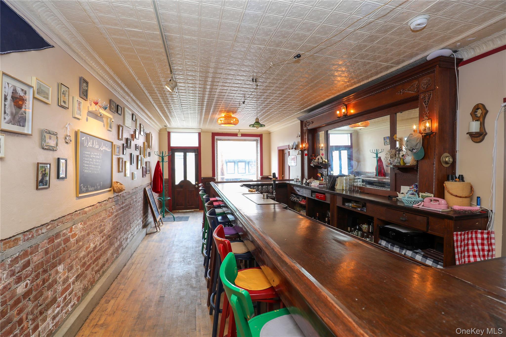 Now available in the heart of Rosendale, this approximately 1, 650 SF storefront offers a unique opportunity to lease a fully built-out restaurant or hospitality space. The space features a welcoming front bar with exposed brick, original tin ceilings, hardwood floors, and strong natural light, along with a secondary dining area that allows for flexible seating. The rear includes a functional commercial kitchen with prep and dish areas, supporting a wide range of food and beverage concepts. The layout includes two bathrooms--one off the main area and a second located at the end of the rear hallway--as well as a washer and dryer conveniently situated off the bar. Positioned on Main Street, the property benefits from steady foot traffic and a vibrant local business environment. Lease terms are 3-5 years with a four-month security deposit; utilities are not included, and the full equipment list is included in the documents.