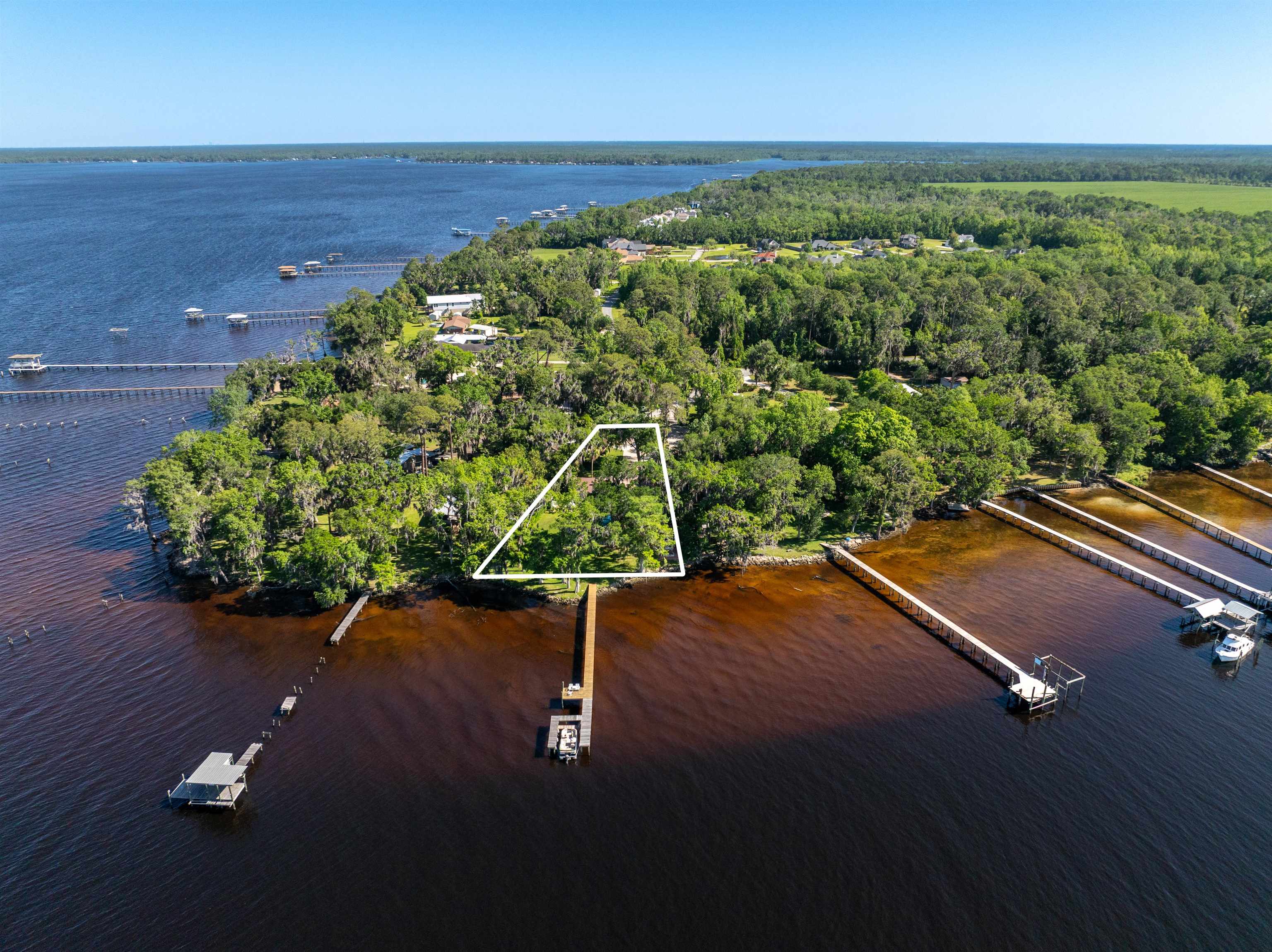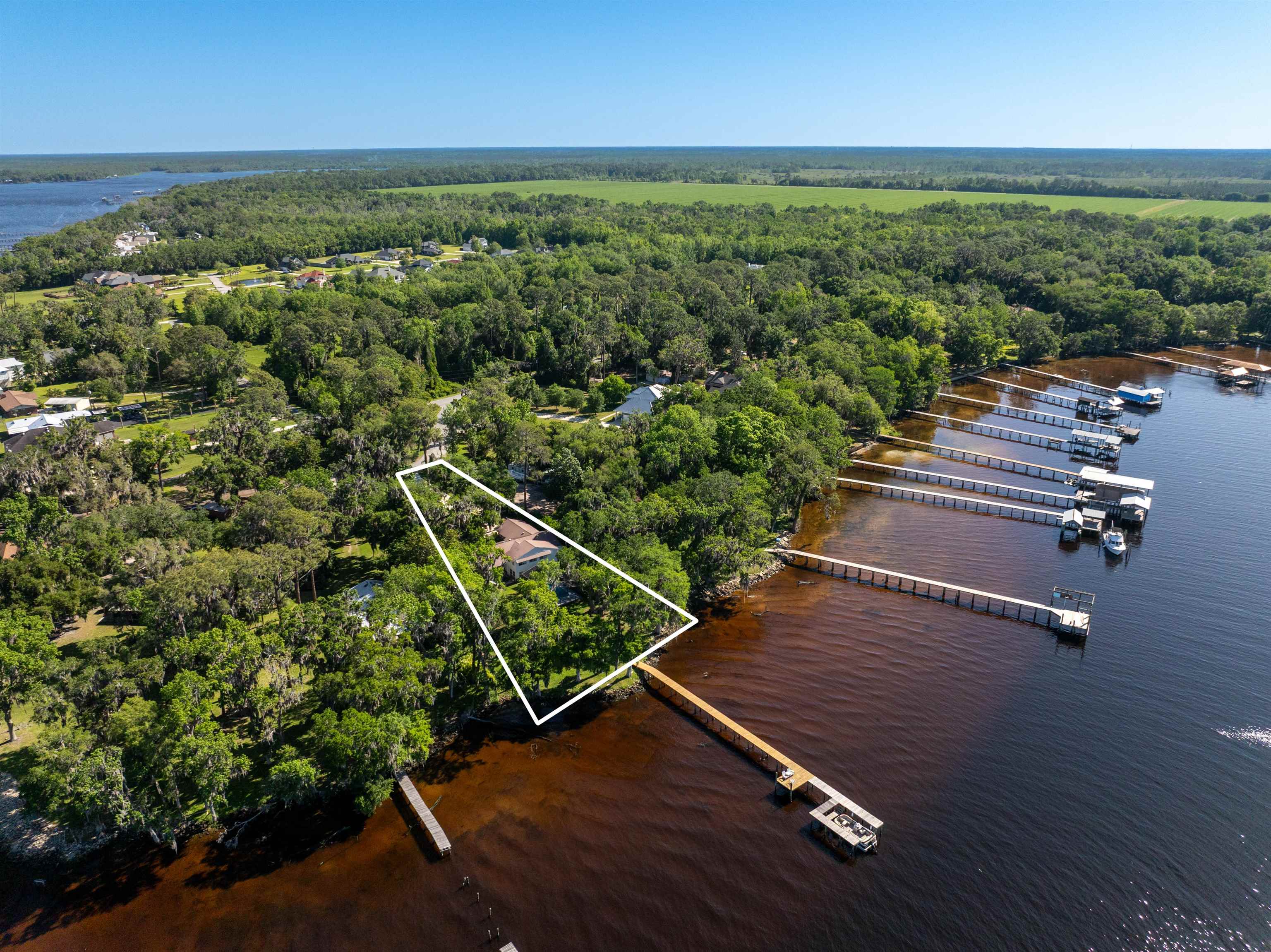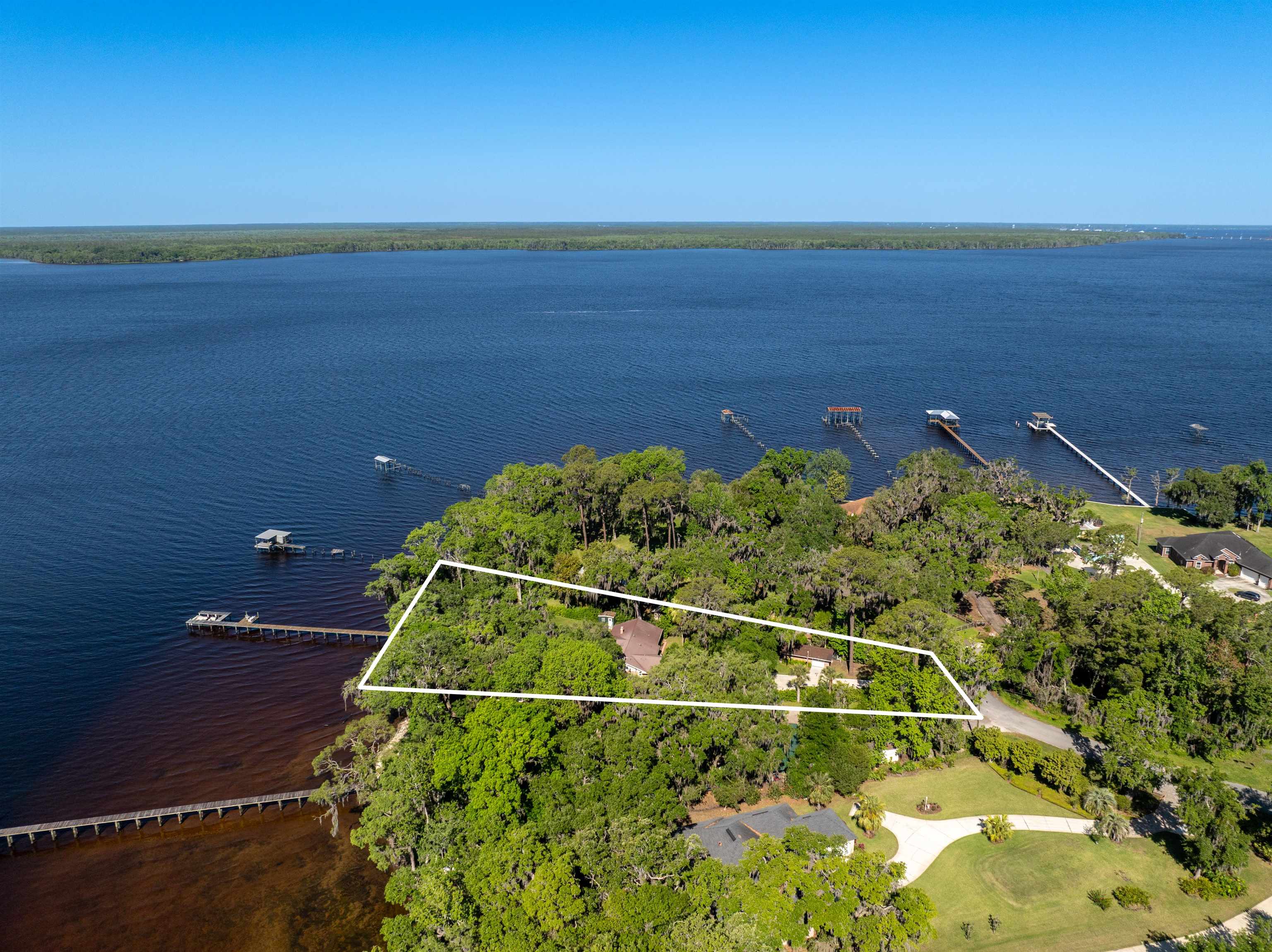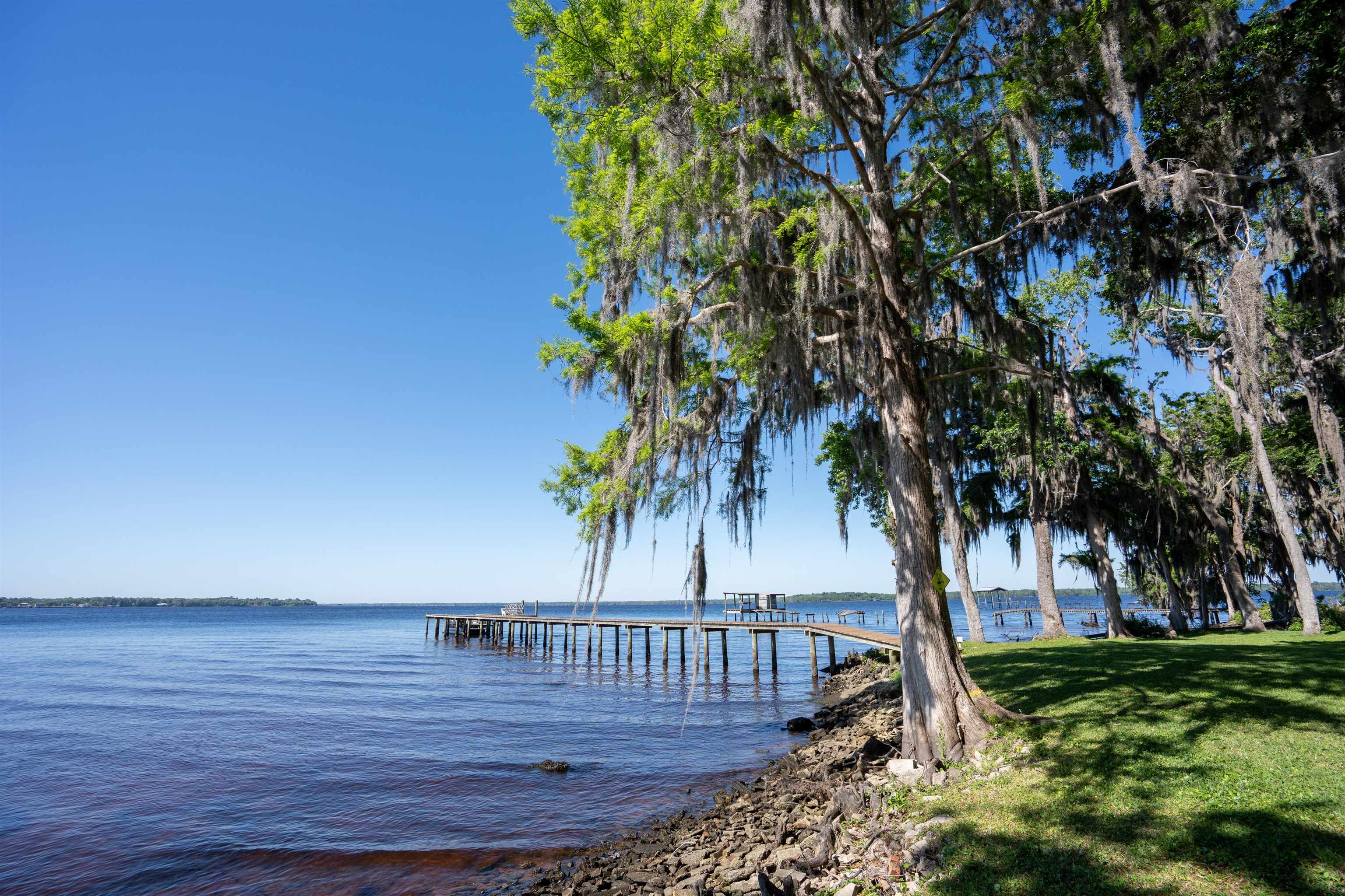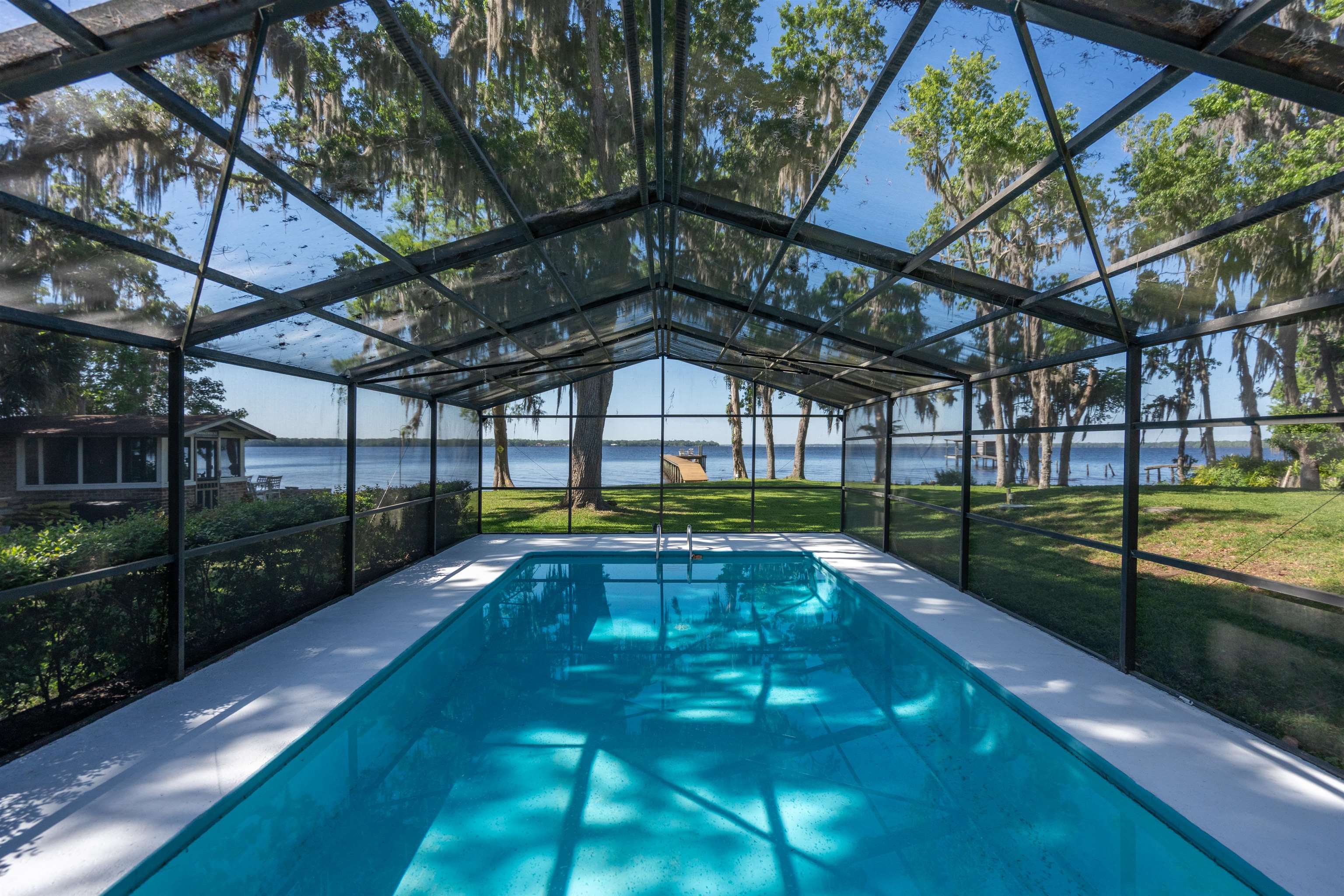 Welcome to your dream waterfront retreat! This beautifully renovated 4-bedroom, 3-bath brick pool home in the sought-after Colee Cove community offers nearly an acre of prime riverfront living on the St. Johns River. Privately situated in a serene cul-de-sac like setting and facing due south, the home is filled with natural light beneath a stunning canopy of mature oak trees—creating a peaceful setting with breathtaking sunrise and sunset views. Inside, an open and inviting floor plan showcases a wall of windows overlooking the water. The spacious kitchen features a large island, adjacent dining area, and a cozy keeping room with a wood-burning fireplace—perfect for everyday living or entertaining. The main level offers a split-bedroom layout with two generously sized bedrooms, plus a primary suite with a walk-in closet and en-suite bath. Upstairs, a second primary suite provides panoramic river views, a beautifully appointed bathroom, and an oversized walk-in closet. Additional flexible spaces include a screened porch and a bright “She Shed, ” ideal for hobbies, a studio, or a private retreat (non-climate controlled). Outdoor living is exceptional: Screened-in pool with cabana house and full bath Newer dock (2019) with boat slip Unique BBQ smokehouse for entertaining Detached outbuilding for storage or workshop use Recent upgrades include: new windows (2017), updated HVAC, water heater, plumbing and electrical (upstairs suite), whole-house water softener, upgraded fixtures, and pre-wired generator hookup. This rare riverfront property combines comfort, privacy, and unforgettable views—don’t miss your opportunity to make it yours.