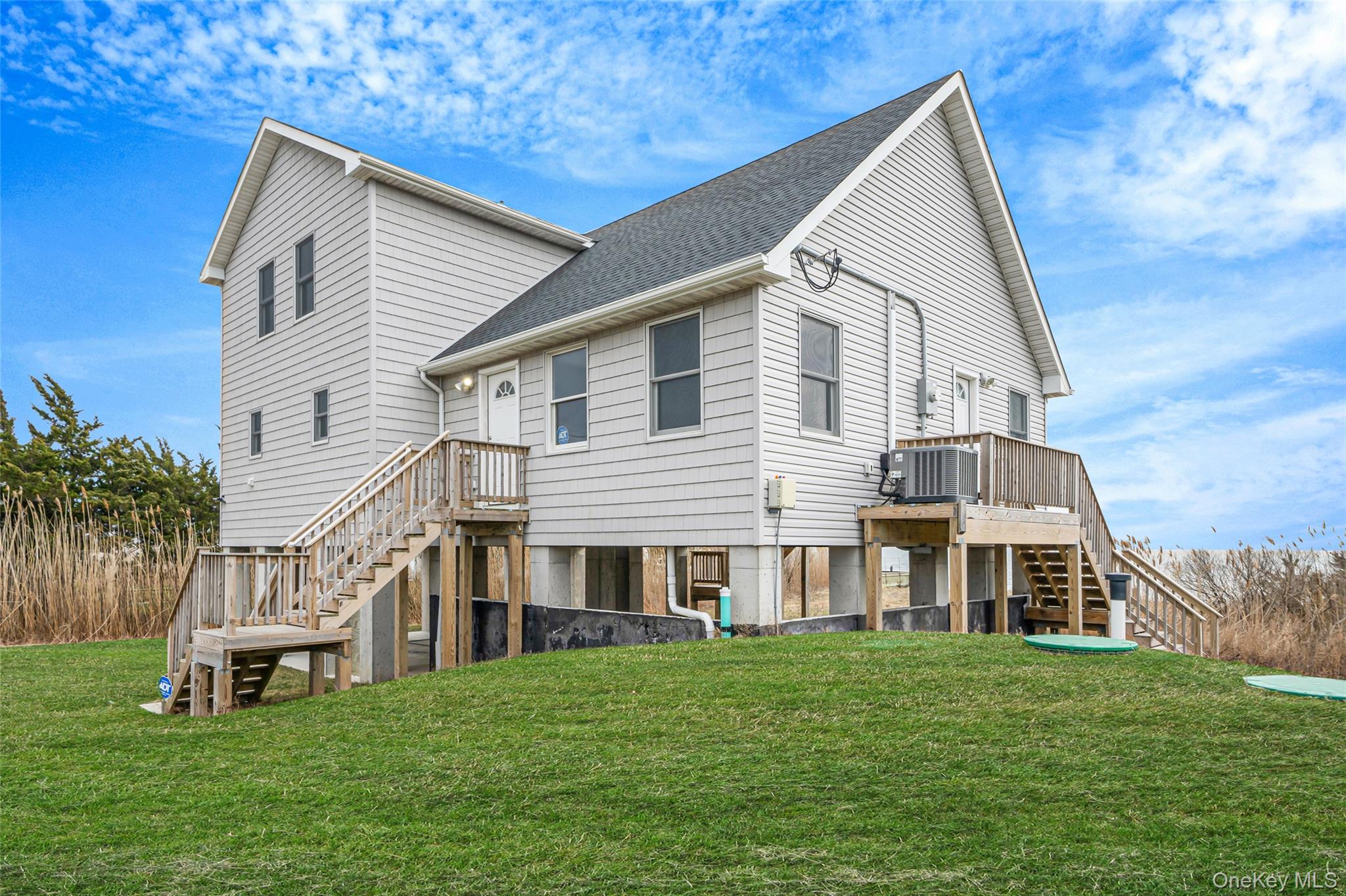 Waterfront Luxury Living | East Patchogue Welcome to an exceptional Bayfront new construction nestled in the desirable hamlet of East Patchogue, offering an expansive open-concept layout paired with breathtaking panoramic views of Fire Island and the Great South Bay — visible from virtually every room. The third bedroom and second bathroom remain unfinished, offering a blank canvas to design and customize to your exact vision. Designed with both elegance and peace of mind, this home meets all state and local requirements with all Certificates of Occupancy in place. Outfitted with a full sprinkler system connected to a private water line, hurricane straps, and a monitored alarm system tied directly to the local fire department and police station, this residence blends luxury with security and efficiency. Perfectly positioned on a dead-end street and elevated approximately 13. 5 feet, this home offers the rare advantage of no flood insurance required, making waterfront living even more desirable. Enjoy sun-drenched days on your private beach and unwind in the evening with stunning crimson sunsets over the bay — a true everyday escape. Why deal with Hamptons traffic when you can experience the same lifestyle with unmatched convenience? Ideally located just over an hour from New York City and in close proximity to the Long Island Rail Road, this property offers seamless access to Manhattan while also placing you minutes from ocean beaches and a short, scenic drive to the world-renowned North Fork vineyards and the Hamptons. An extraordinary opportunity to own waterfront luxury without compromise.
