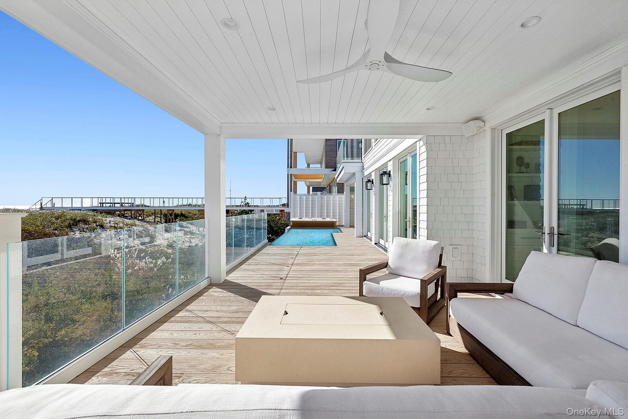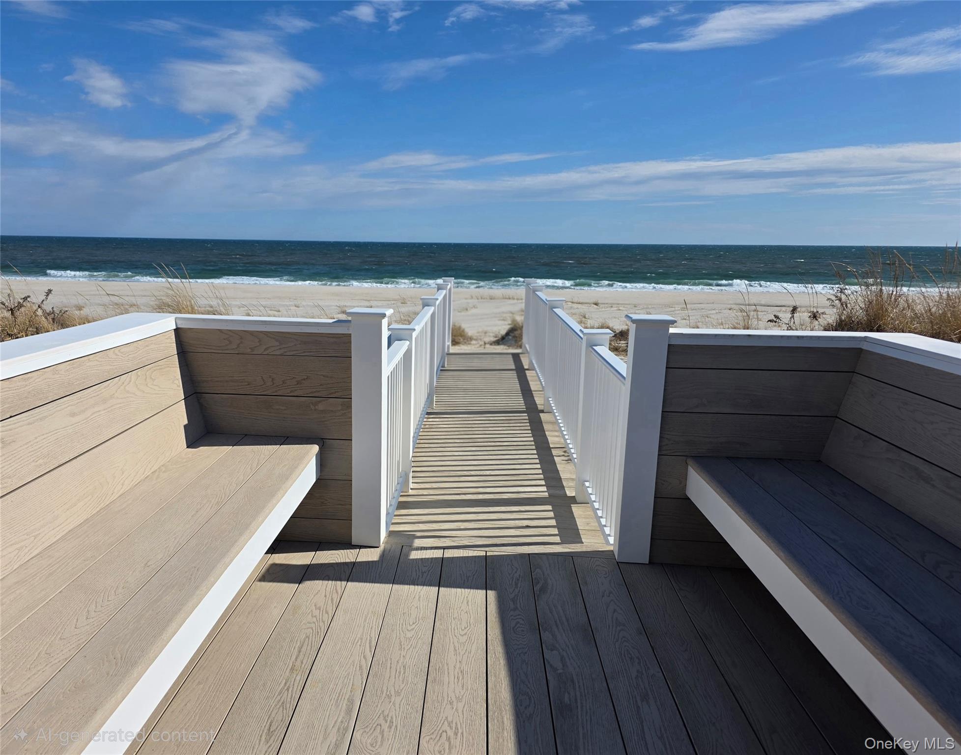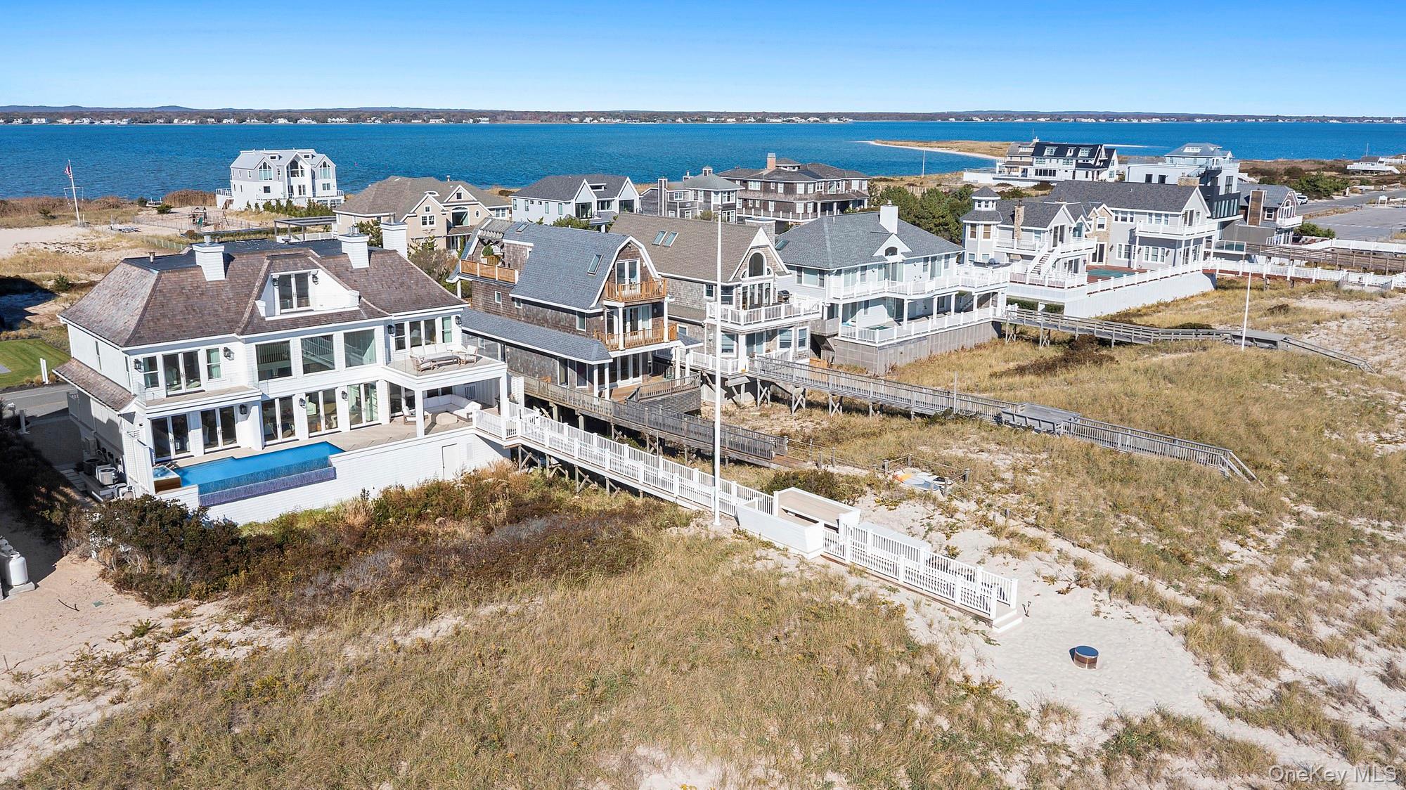 This southern-facing Custom Built Post Modern boasts 80' of ocean frontage with stunning breathtaking panoramic views of the Atlantic Ocean and bay. Newly renovated from the dunes up, this post modern residence encompasses 4, 610 SF of living space, 5 bedrooms, 5 full bathrooms, a custom heated infinity edge gunite pool with a waterfall, and more. Located on the south side of Dune Road, this esteemed renown address enjoys a seductive oceanfront location. From your spacious ocean front deck, built for entertaining and heated infinity edge gunite pool with a waterfall, your own private boardwalk takes you and your guests to the wide white sandy ocean beach. Floor-to- second story 18 ft. ceiling windows and elegant lighting illuminate the home's wide, open-concept living spaces. Enjoy indoor/outdoor living with seamless transitions from the great room to the outdoor pool deck with welcoming ocean vistas State-of-the-art kitchen with top-of-line appliances and center island with seating is perfection. The wet bar and bar area with separate seating for intimate conversations is the ultimate entertainment accessory. The inviting dual primary bedrooms each features its own fireplaces with sliding glass doors to private ocean vista decks above the dunes, walk-in closets and spa-like custom full bathrooms. The three ample guest rooms all features en-suite custom bathrooms. High- end integrated smart home Brilliant modern technology system which can control the lighting, security, music, lock doors , arm security and dim the lights from wherever you are. Equipped with a comprehensive whole house power system generator ensuring that your coastal sanctuary remains a bastion of comfort and light regardless of the elements. Renowned shopping and dining on a vibrant Main St. in Westhampton Beach Village are just 4. 7 miles away. Experience state-of-the-art modern living on Dune Road. Sunrises and Sunsets over the ocean are yours in this waterfront, newly renovated home available for immediate occupancy. Amenities