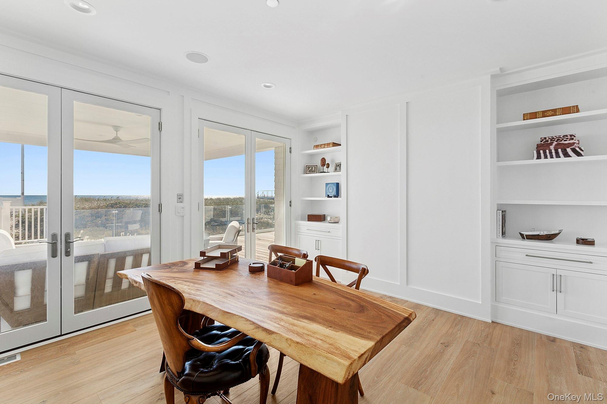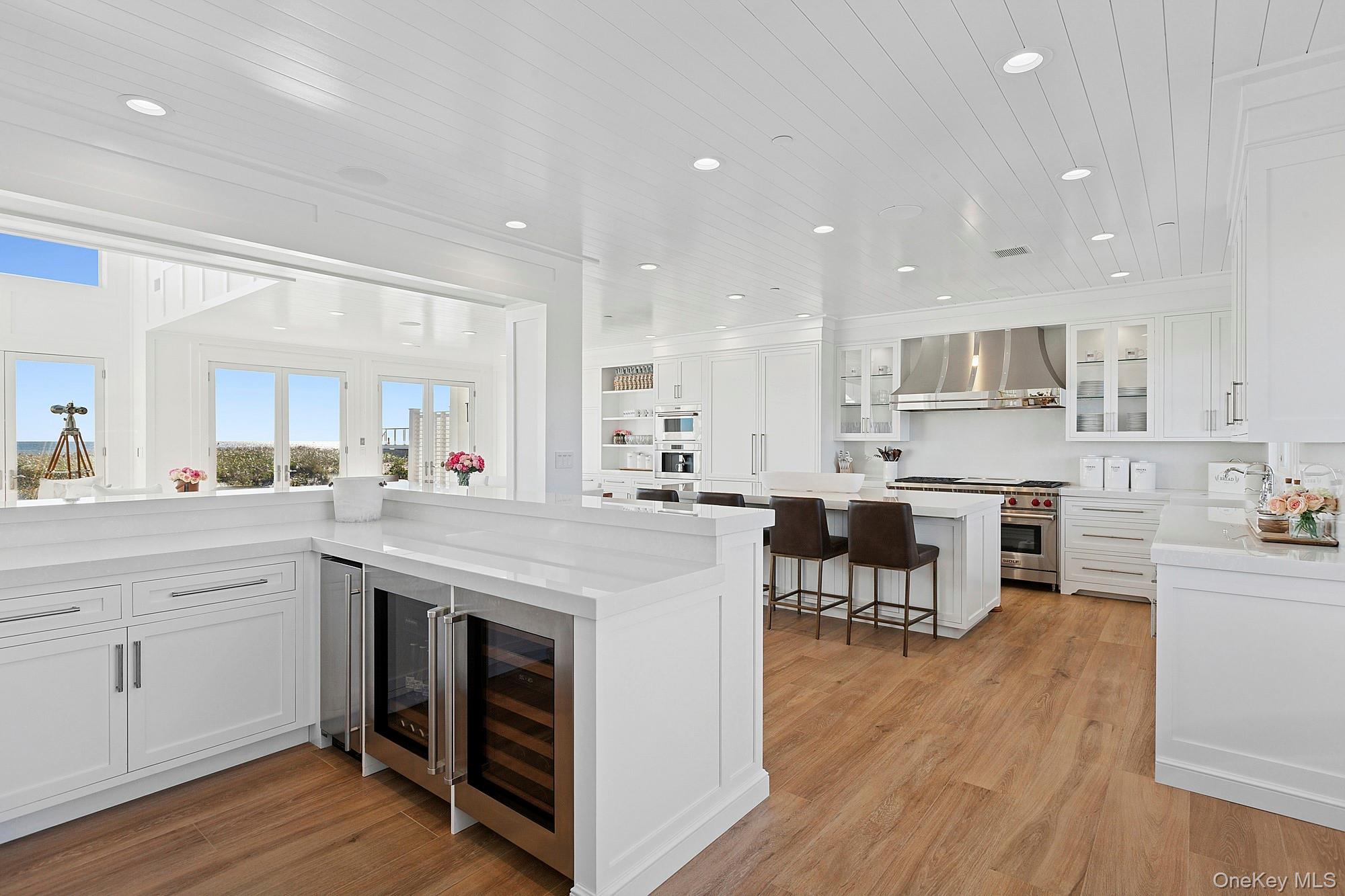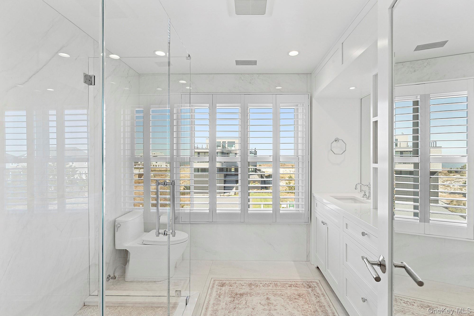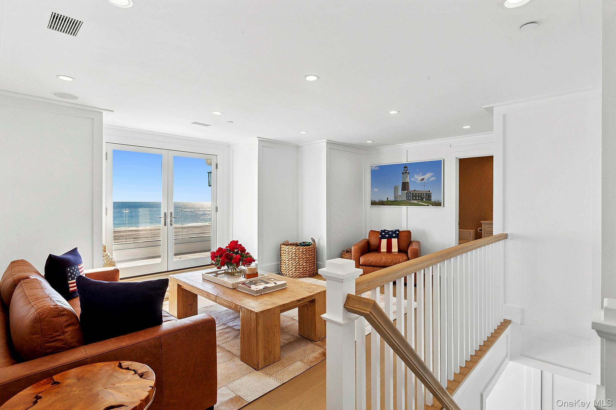 This southern-facing Custom Built Post Modern boasts 80' of ocean frontage with stunning breathtaking panoramic views of the Atlantic Ocean and bay. Newly renovated from the dunes up, this post modern residence encompasses 4, 610 SF of living space, 5 bedrooms, 5 full bathrooms, a custom heated infinity edge gunite pool with a waterfall, and more. Located on the south side of Dune Road, this esteemed renown address enjoys a seductive oceanfront location. From your spacious ocean front deck, built for entertaining and heated infinity edge gunite pool with a waterfall, your own private boardwalk takes you and your guests to the wide white sandy ocean beach. Floor-to- second story 18 ft. ceiling windows and elegant lighting illuminate the home's wide, open-concept living spaces. Enjoy indoor/outdoor living with seamless transitions from the great room to the outdoor pool deck with welcoming ocean vistas State-of-the-art kitchen with top-of-line appliances and center island with seating is perfection. The wet bar and bar area with separate seating for intimate conversations is the ultimate entertainment accessory. The inviting dual primary bedrooms each features its own fireplaces with sliding glass doors to private ocean vista decks above the dunes, walk-in closets and spa-like custom full bathrooms. The three ample guest rooms all features en-suite custom bathrooms. High- end integrated smart home Brilliant modern technology system which can control the lighting, security, music, lock doors , arm security and dim the lights from wherever you are. Equipped with a comprehensive whole house power system generator ensuring that your coastal sanctuary remains a bastion of comfort and light regardless of the elements. Renowned shopping and dining on a vibrant Main St. in Westhampton Beach Village are just 4. 7 miles away. Experience state-of-the-art modern living on Dune Road. Sunrises and Sunsets over the ocean are yours in this waterfront, newly renovated home available for immediate occupancy. Amenities