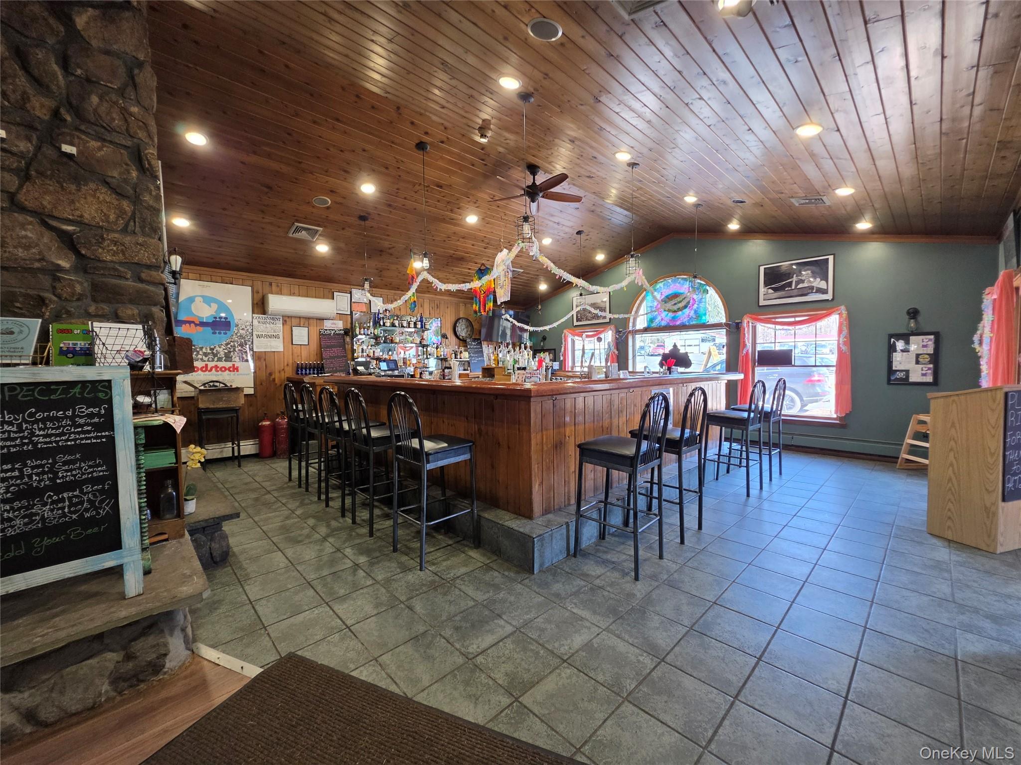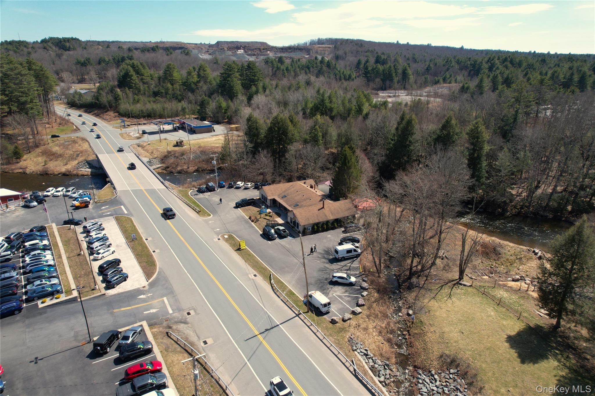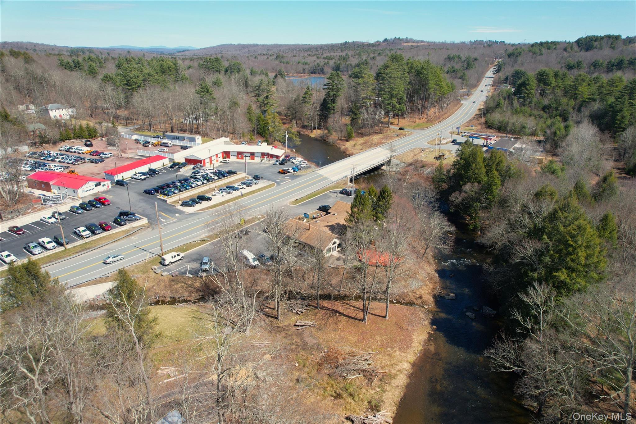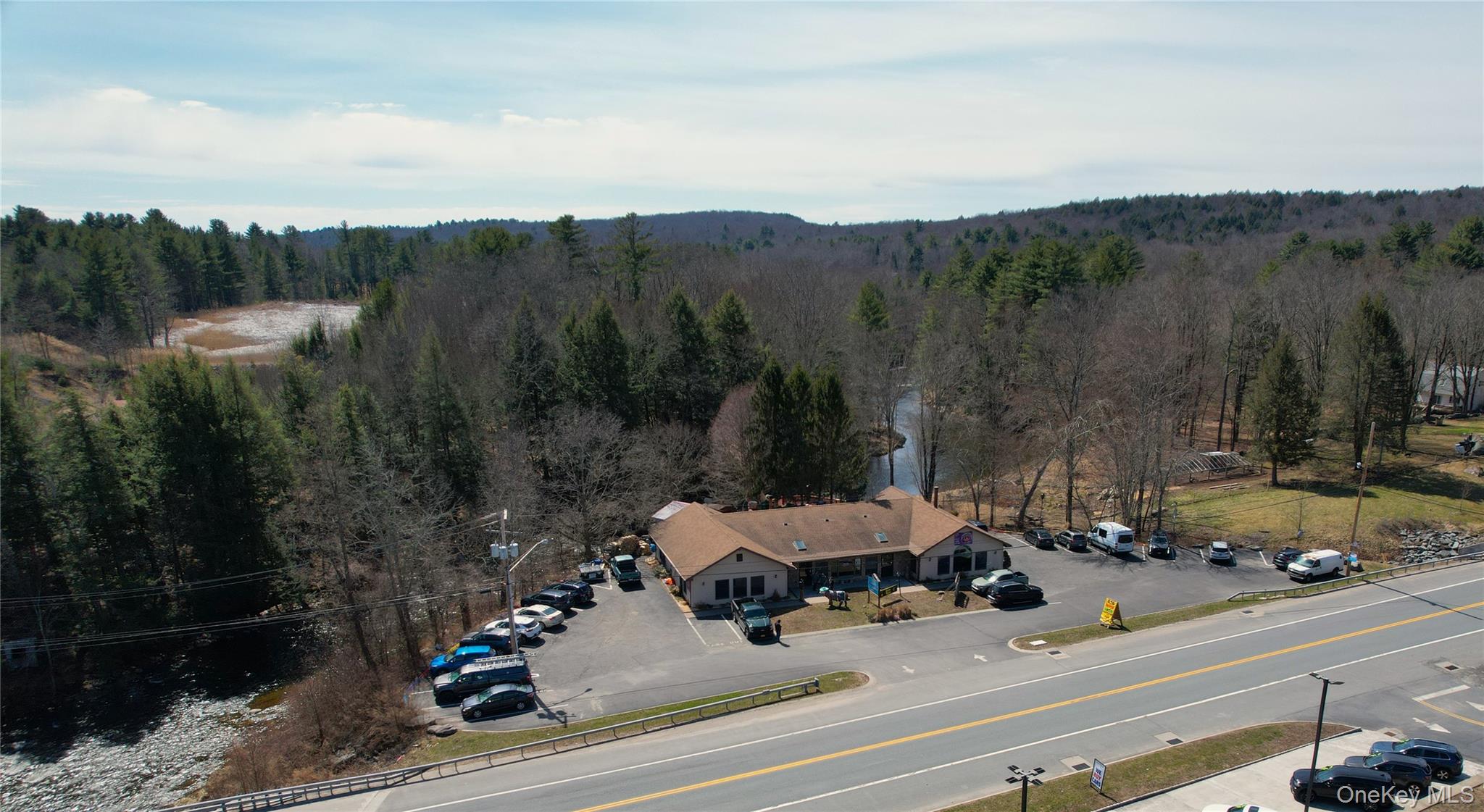 Turn-key waterfront restaurant/ retail/ office opportunity in Bethel, New York is ready for the next chapter. This space could easily be reinvented, possibilities are endless. Located on NYS Rt 17B aka “The Woodstock Way”, the gateway to the 1969 Woodstock Music Festival site which is now Bethel Woods Center for the Arts, this is a premium location. The set up in this prime commercial building is unique, as the building is divided into three units (with four electric meters). One space, presently set up as a party/ catering room, can be retail, ice cream, bakery, deli, coffee shop, office space, etc. The middle space is currently used as a pizza parlor complete with brick oven and seating but can also be easily re-imagined. The largest space is a restaurant/bar with outdoor seating on the spacious deck overlooking the beautiful Mongaup River. The double-sided stone fireplace offers ambience, and is a gorgeous main focal point viewed from the dining room and bar area. The building features a fully equipped commercial kitchen with walk-in refrigeration, fully equipped bar, common reception/ lobby space with two restrooms, office with private restroom as well as accessory storage buildings. Seating inside is for a total of 120 plus an additional 50 on the deck. This is a bustling restaurant now and has so much potential to suit your needs as your own eatery concept, catering facility, retail establishment(s), an income investment, medical facility, professional offices, and more. With a WOW location, favorable zoning, ample parking, and extreme high traffic and high visibility, this is a winning investment. The Sullivan County Catskills has so much to offer: Including world class entertainment at Bethel Woods, Kartrite Waterpark, Resorts World Casino, Lakes, hiking, fishing, area lakes for water sports and fishing, and relaxation only 2 hours from NYC.