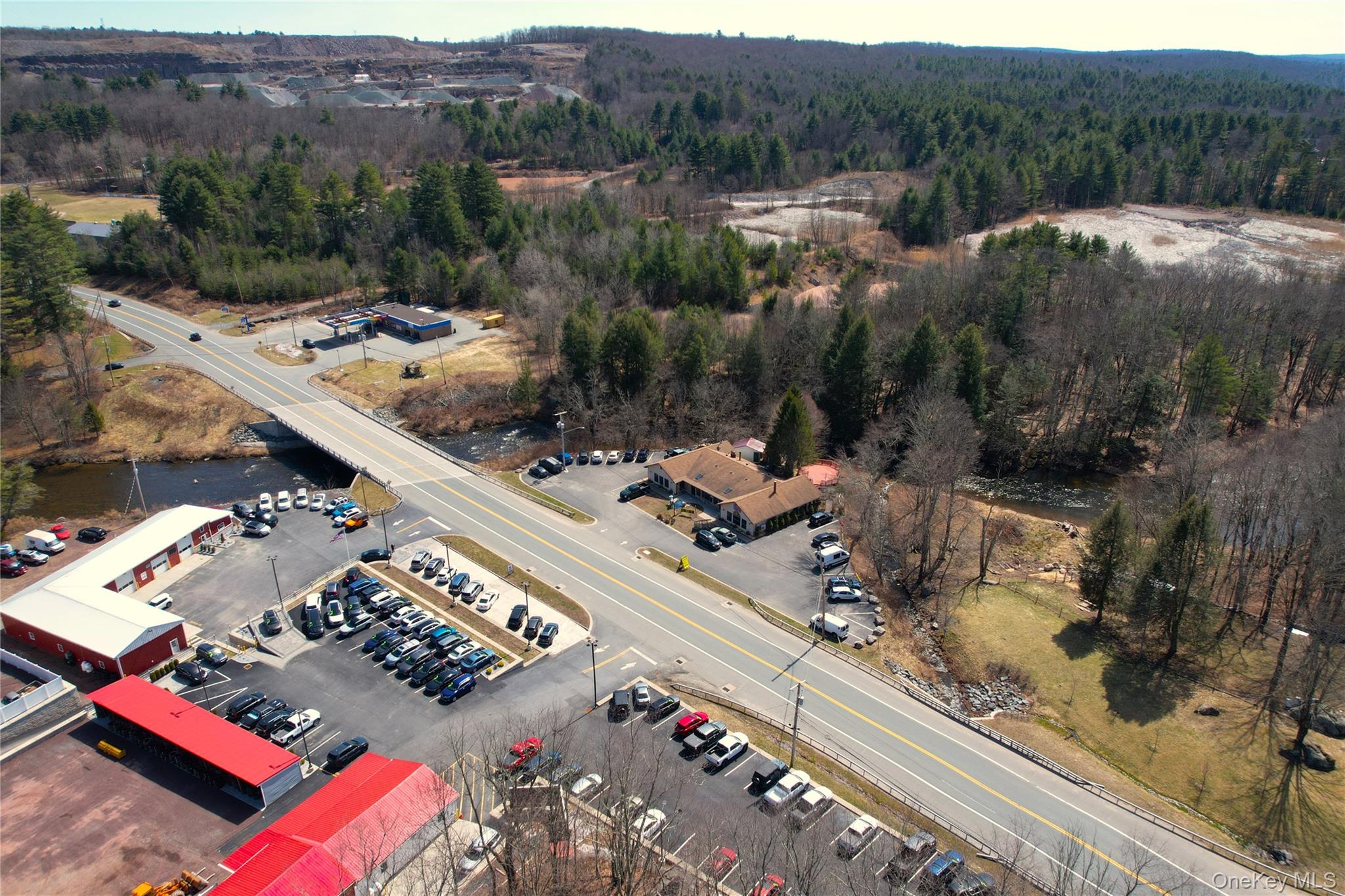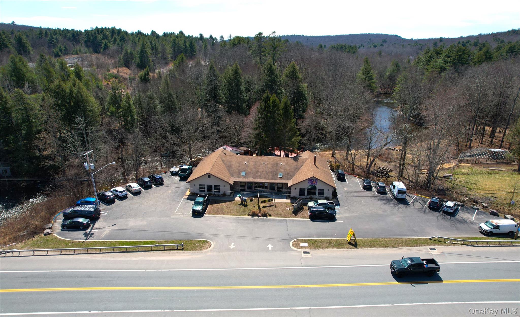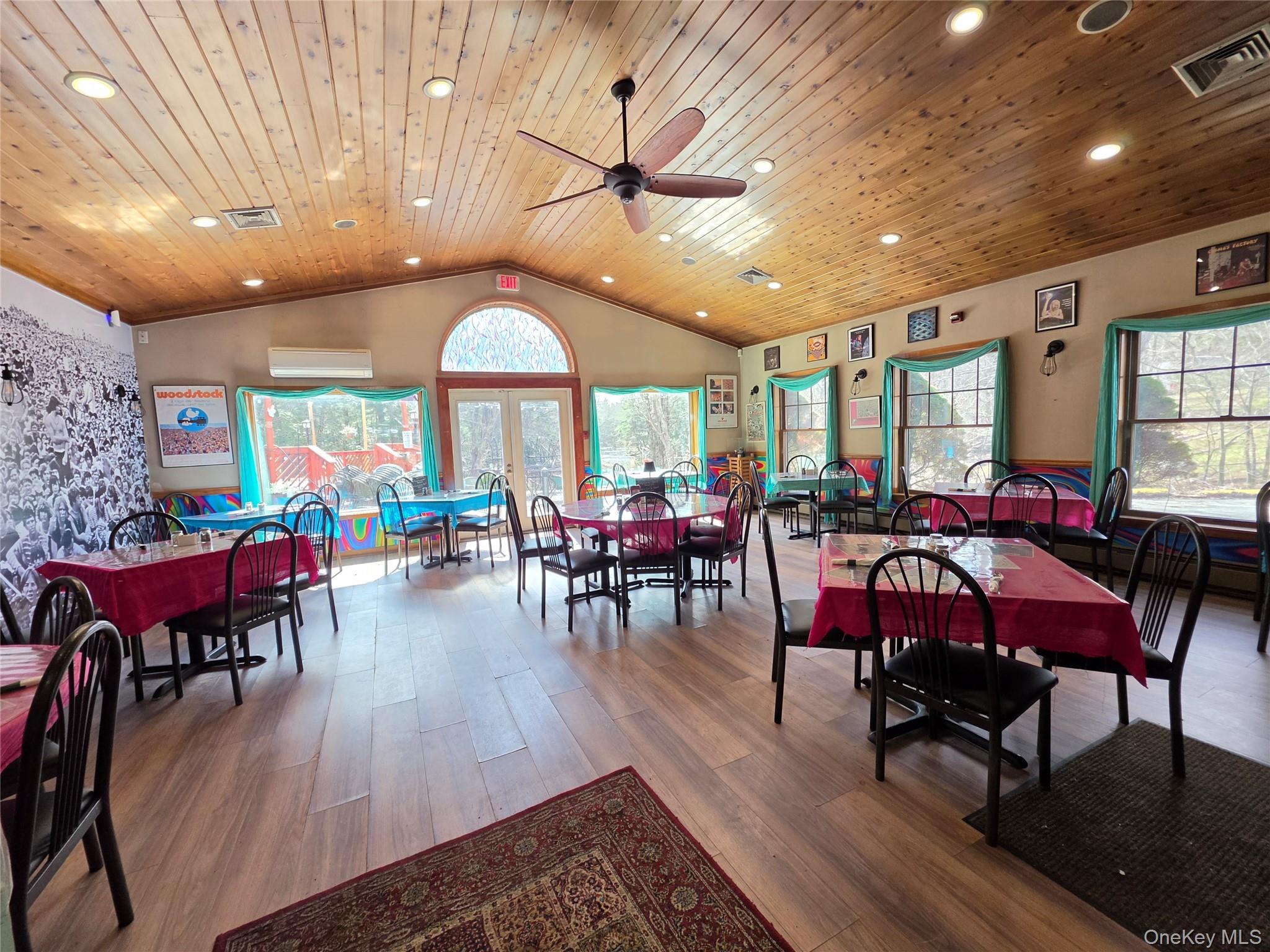 Turn-key waterfront restaurant/ retail/ office opportunity in Bethel, New York is ready for the next chapter. This space could easily be reinvented, possibilities are endless. Located on NYS Rt 17B aka “The Woodstock Way”, the gateway to the 1969 Woodstock Music Festival site which is now Bethel Woods Center for the Arts, this is a premium location. The set up in this prime commercial building is unique, as the building is divided into three units (with four electric meters). One space, presently set up as a party/ catering room, can be retail, ice cream, bakery, deli, coffee shop, office space, etc. The middle space is currently used as a pizza parlor complete with brick oven and seating but can also be easily re-imagined. The largest space is a restaurant/bar with outdoor seating on the spacious deck overlooking the beautiful Mongaup River. The double-sided stone fireplace offers ambience, and is a gorgeous main focal point viewed from the dining room and bar area. The building features a fully equipped commercial kitchen with walk-in refrigeration, fully equipped bar, common reception/ lobby space with two restrooms, office with private restroom as well as accessory storage buildings. Seating inside is for a total of 120 plus an additional 50 on the deck. This is a bustling restaurant now and has so much potential to suit your needs as your own eatery concept, catering facility, retail establishment(s), an income investment, medical facility, professional offices, and more. With a WOW location, favorable zoning, ample parking, and extreme high traffic and high visibility, this is a winning investment. The Sullivan County Catskills has so much to offer: Including world class entertainment at Bethel Woods, Kartrite Waterpark, Resorts World Casino, Lakes, hiking, fishing, area lakes for water sports and fishing, and relaxation only 2 hours from NYC.