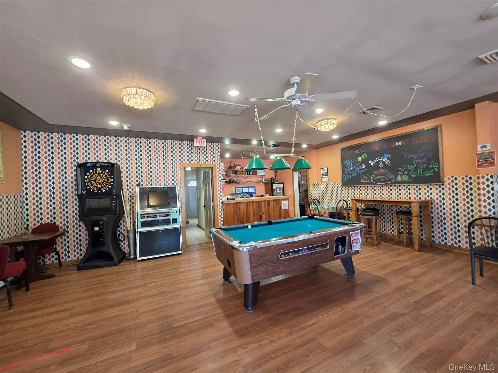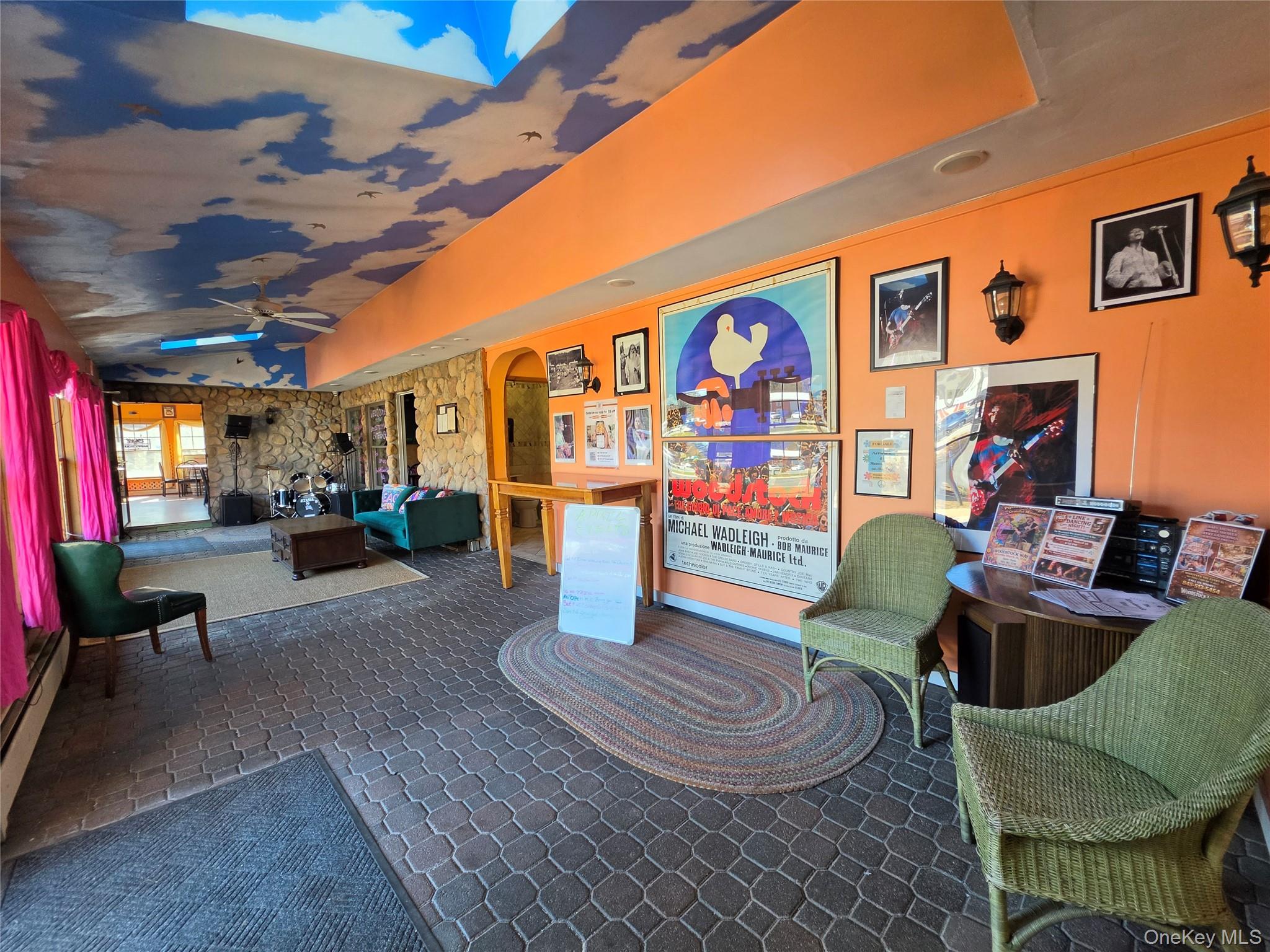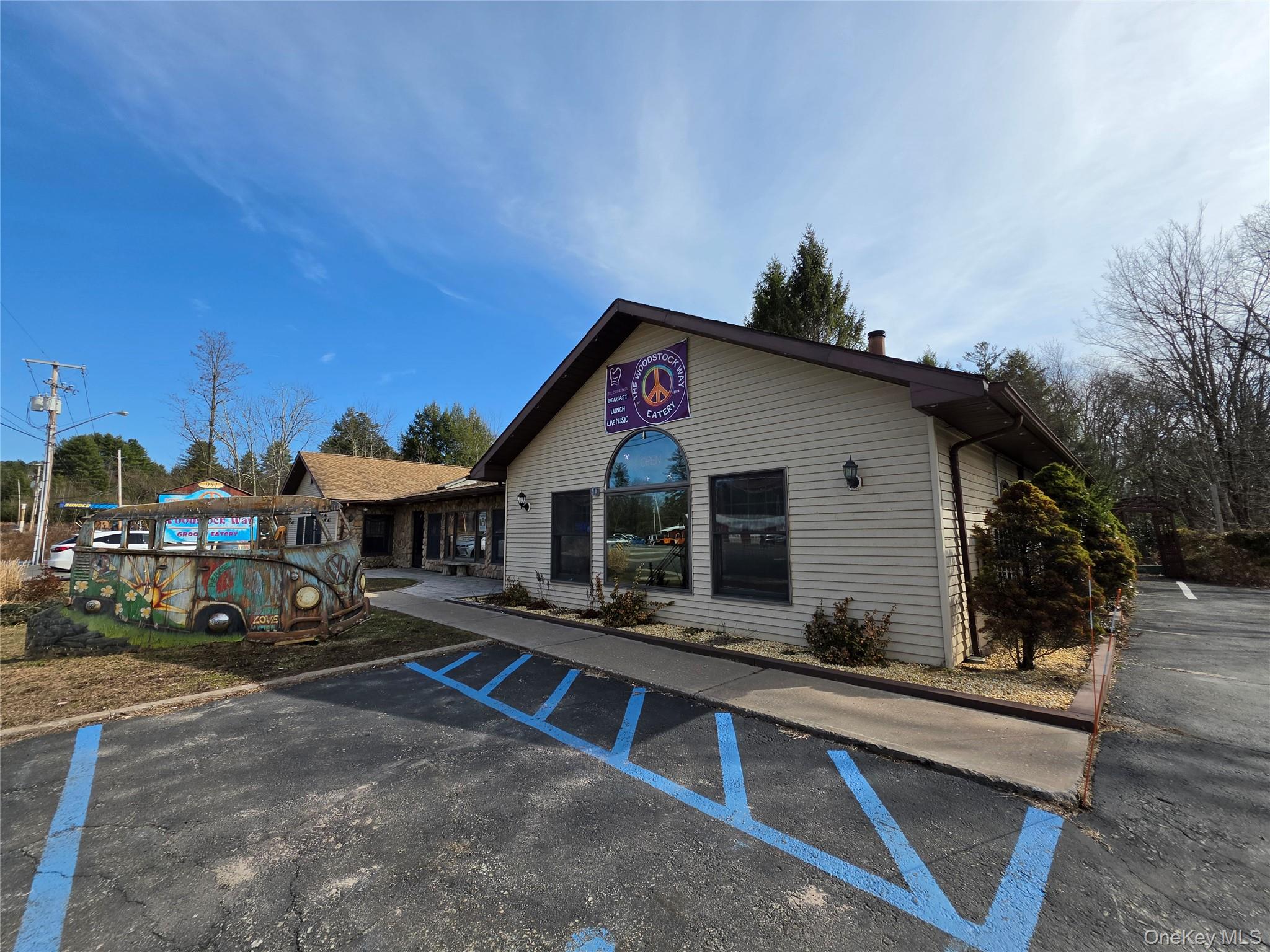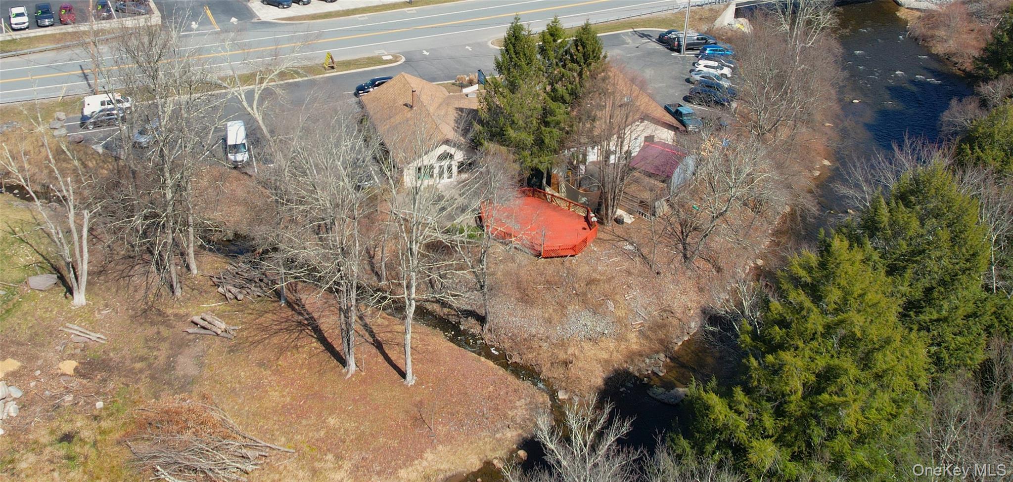 Turn-key waterfront restaurant/ retail/ office opportunity in Bethel, New York is ready for the next chapter. This space could easily be reinvented, possibilities are endless. Located on NYS Rt 17B aka “The Woodstock Way”, the gateway to the 1969 Woodstock Music Festival site which is now Bethel Woods Center for the Arts, this is a premium location. The set up in this prime commercial building is unique, as the building is divided into three units (with four electric meters). One space, presently set up as a party/ catering room, can be retail, ice cream, bakery, deli, coffee shop, office space, etc. The middle space is currently used as a pizza parlor complete with brick oven and seating but can also be easily re-imagined. The largest space is a restaurant/bar with outdoor seating on the spacious deck overlooking the beautiful Mongaup River. The double-sided stone fireplace offers ambience, and is a gorgeous main focal point viewed from the dining room and bar area. The building features a fully equipped commercial kitchen with walk-in refrigeration, fully equipped bar, common reception/ lobby space with two restrooms, office with private restroom as well as accessory storage buildings. Seating inside is for a total of 120 plus an additional 50 on the deck. This is a bustling restaurant now and has so much potential to suit your needs as your own eatery concept, catering facility, retail establishment(s), an income investment, medical facility, professional offices, and more. With a WOW location, favorable zoning, ample parking, and extreme high traffic and high visibility, this is a winning investment. The Sullivan County Catskills has so much to offer: Including world class entertainment at Bethel Woods, Kartrite Waterpark, Resorts World Casino, Lakes, hiking, fishing, area lakes for water sports and fishing, and relaxation only 2 hours from NYC.