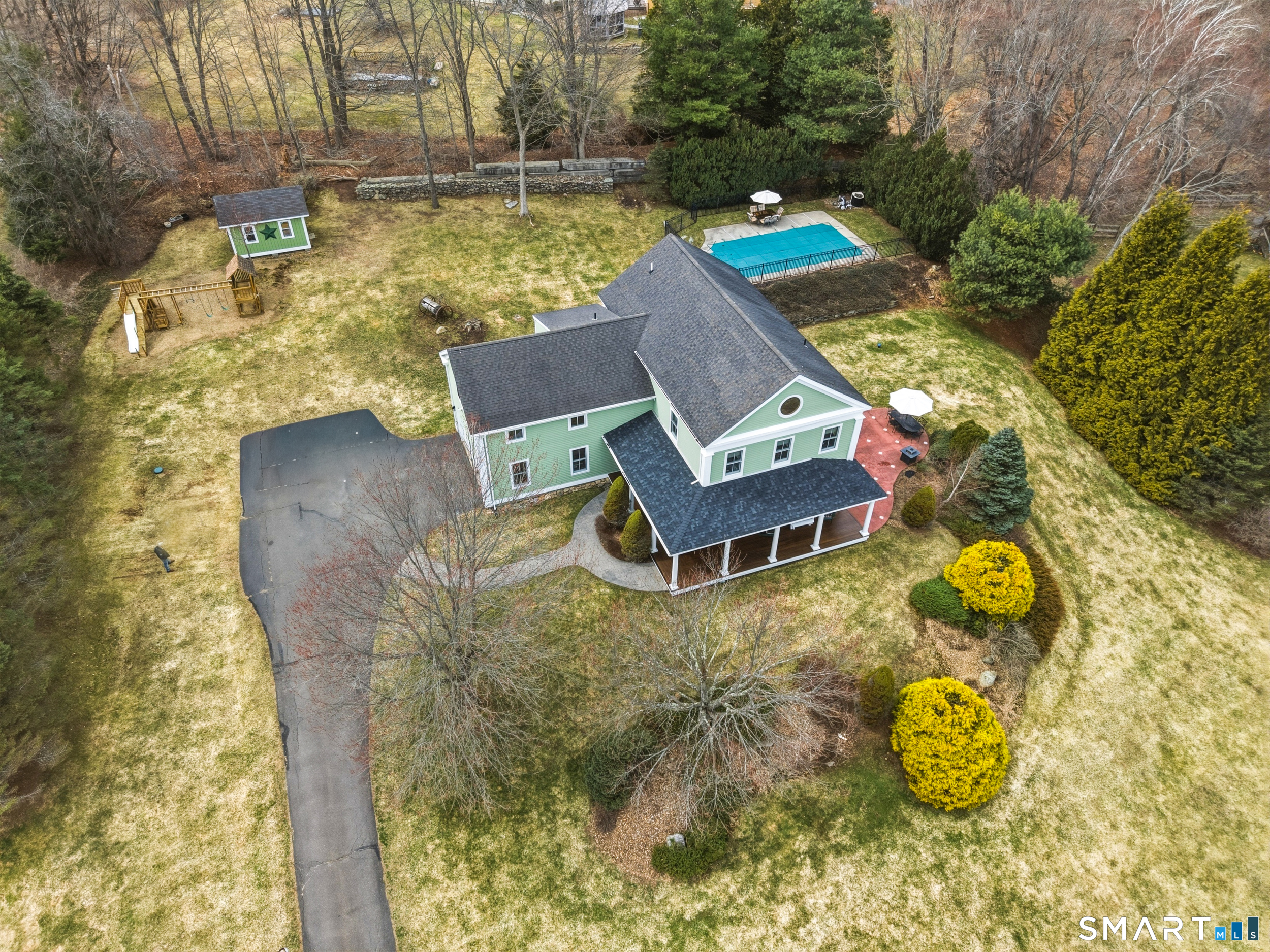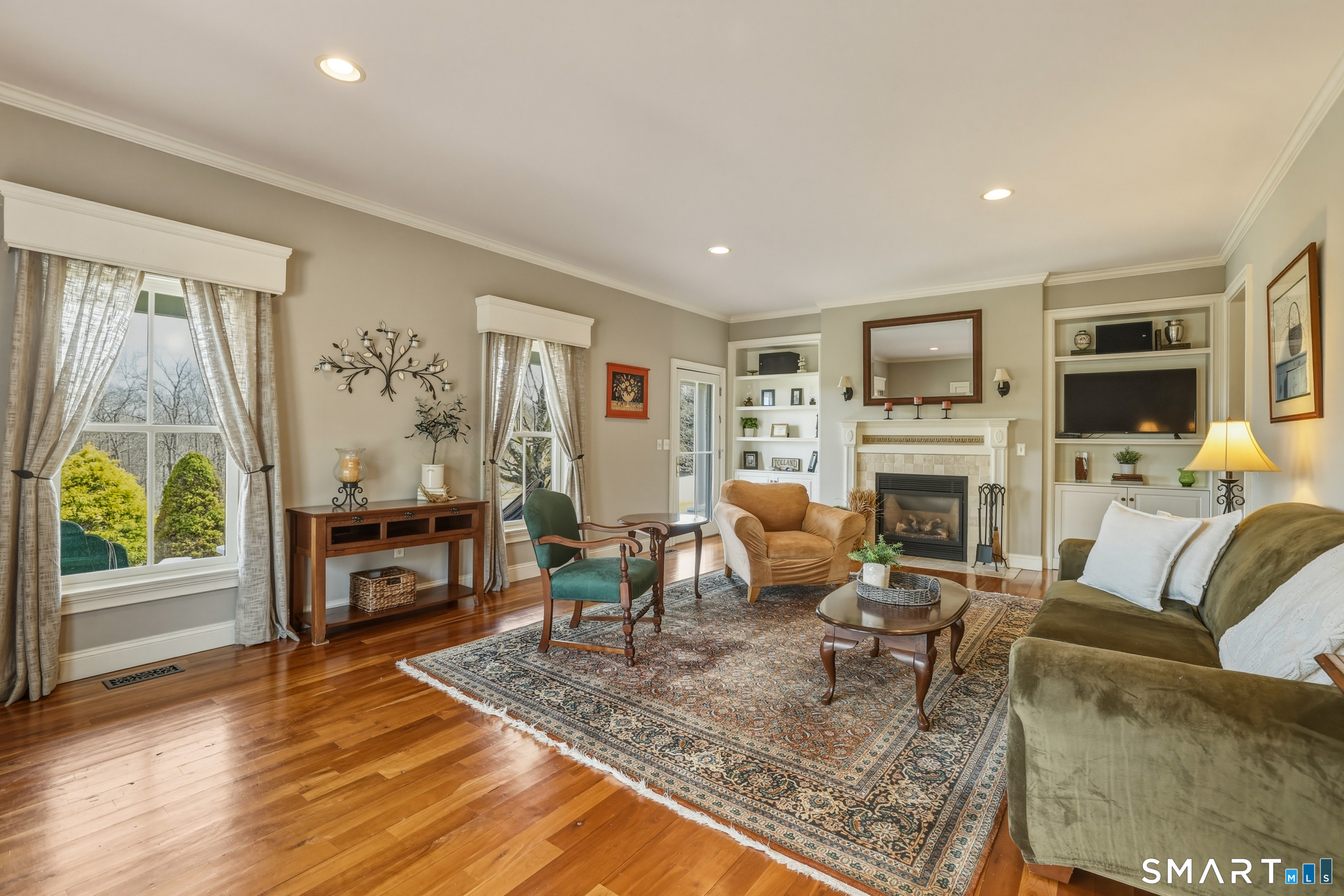 Beautifully designed and thoughtfully updated, this Tolland property blends timeless style with expansive living in a private and scenic setting. Crown molding throughout creates a refined and cohesive feel from room to room, while a wrap around porch sets the tone for relaxed everyday living. Inside, bright and sun filled spaces flow effortlessly from room to room, highlighted by a spacious kitchen with a breakfast nook that offers plenty of room for cooking and gathering while connecting seamlessly to both formal and casual living areas. The layout is ideal for entertaining or simply enjoying daily life with ease. Upstairs, the primary suite offers a true retreat with an attached office, perfect for work or quiet space, along with a spa inspired bath featuring a stall shower and soaking tub. The lower level expands your options with a finished area complete with a wet bar and sink, ideal for hosting or creating a hobby or rec space. Outside, enjoy a fenced in pool area designed for summer enjoyment along with a dedicated shed for outdoor equipment and storage. With multiple fireplaces, spacious rooms, and a versatile layout, this property offers both comfort and flexibility. Conveniently located near local amenities, parks, lakes and a golf course, this is a standout opportunity to enjoy space, privacy, and lifestyle in one of Tolland's most desirable settings.