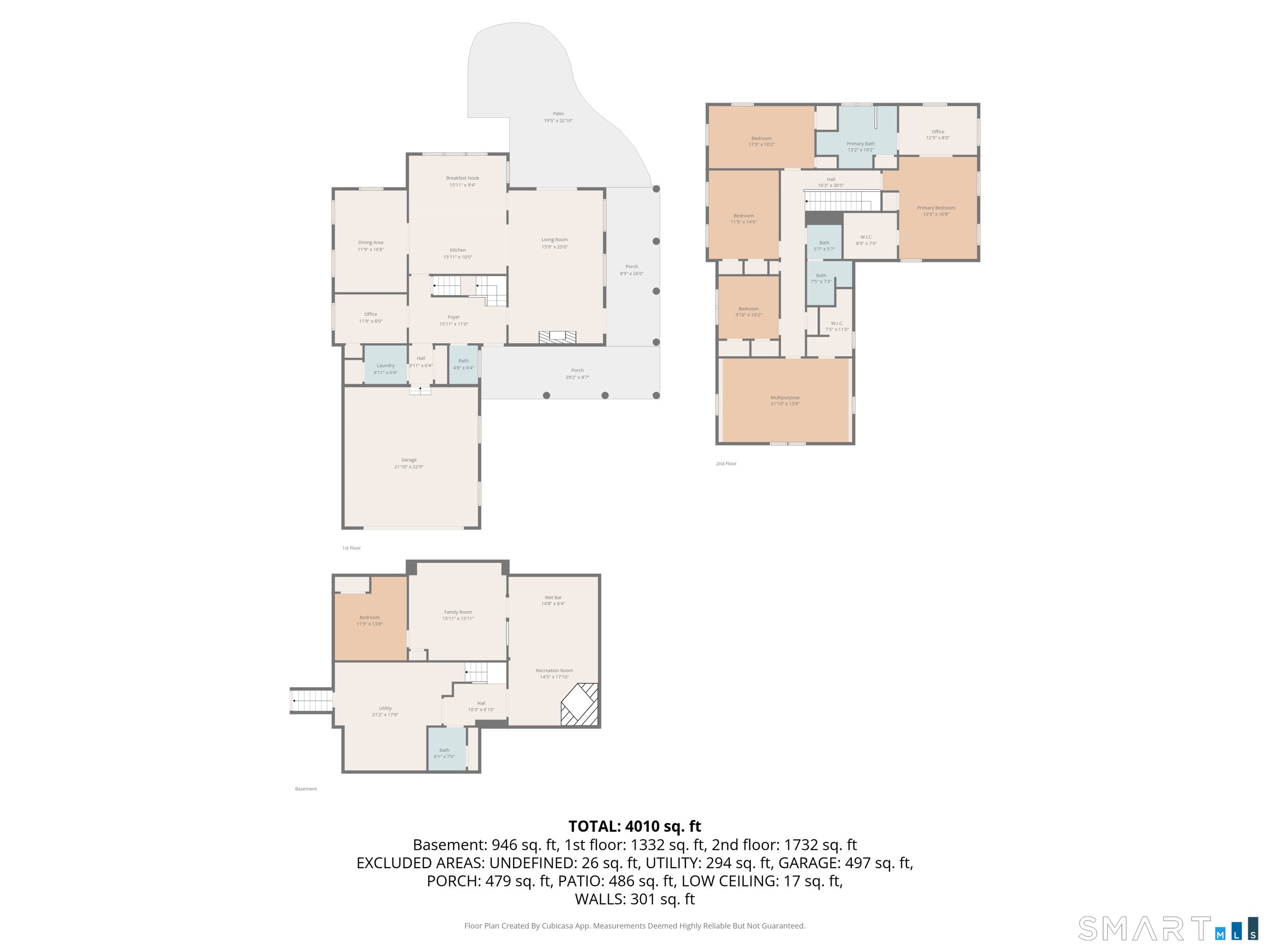 | Primary Bath | 9 ft+ Ceilings,Stall Shower,Whirlpool Tub,Tile Floor | 10.2 x 13.2 | Upper |