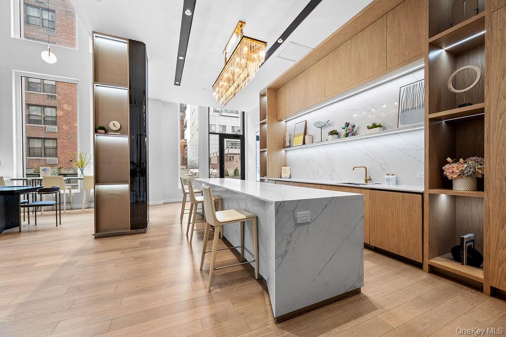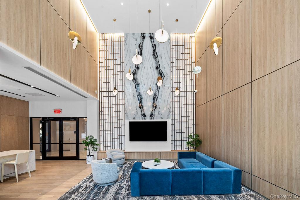 South-facing 1-bedroom 1 bath condominium unit with a balcony, soaring ceilings, and expansive windows that fill the home with natural light while capturing sweeping views from downtown Flushing to the distant skyline. Interiors are thoughtfully designed with wide-plank oak flooring and a refined kitchen featuring custom cabinetry and top-of-the-line appliances. Full-service building amenities include a 24-hour doorman, onsite parking garage, and a stylish resident lounge with an open kitchen and dining area for entertaining. Additional highlights include a fully equipped fitness center and a landscaped outdoor terrace with lounge seating, dining areas, and barbecue grills. Located at the Nusun Tower, residents enjoy immediate access to the vibrant heart of Downtown Flushing, known for its world-class dining, shopping, and cultural destinations. Convenient proximity to the 7 Subway Line, LIRR, and major highways ensures seamless connectivity throughout New York City and beyond.