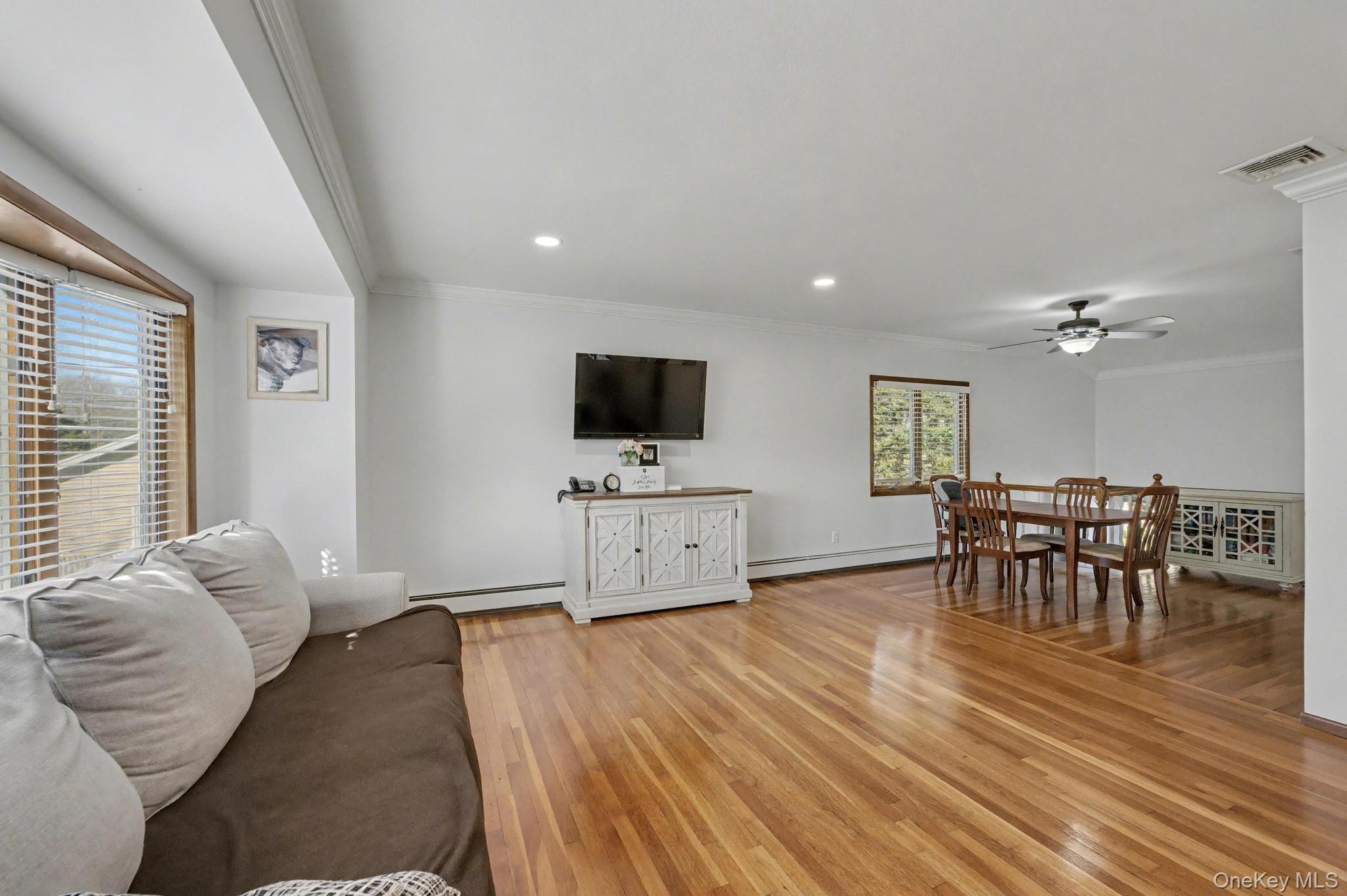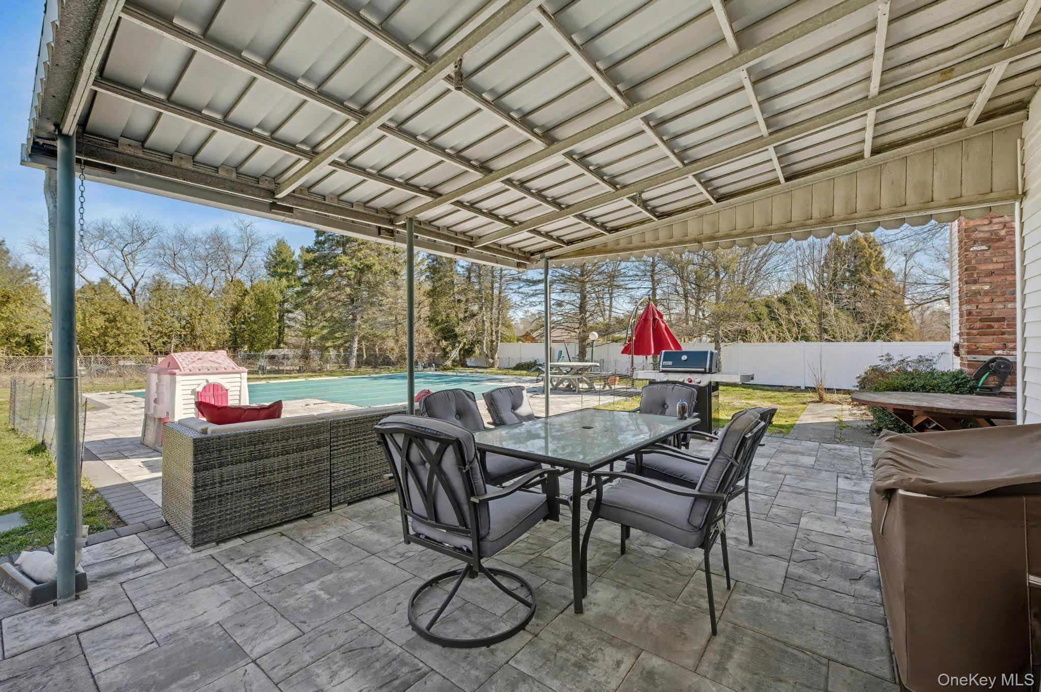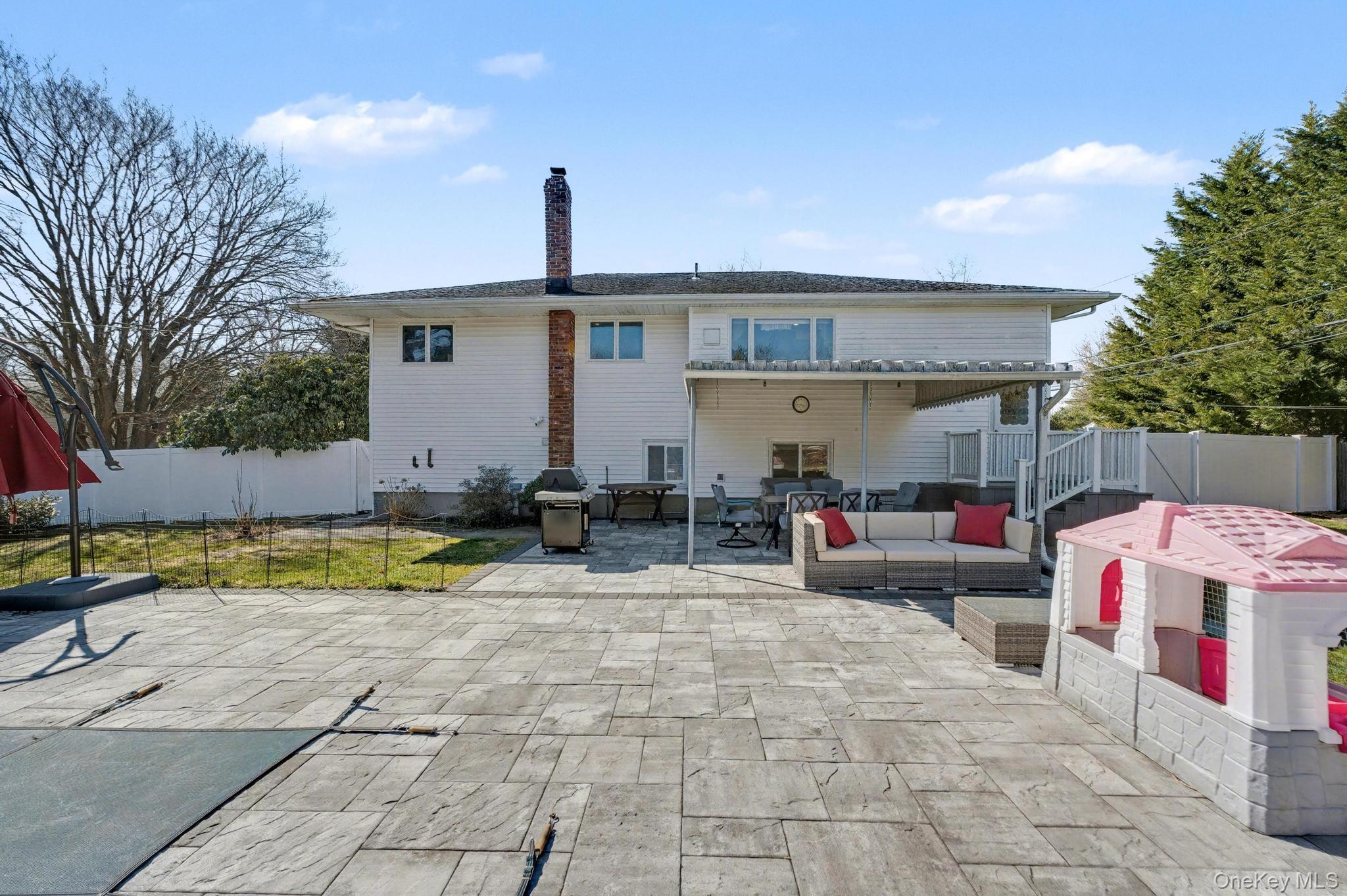 Welcome to this spacious 4-bedroom, 2-bath Hi-Ranch home nestled on an expansive . 76-acre property in the highly sought-after Commack School District. This property offers the perfect blend of comfort, style, and outdoor enjoyment. Step outside into your own private “staycation” oasis featuring a sparkling in-ground pool, beautifully designed paver patio, and a cozy firepit area—ideal for relaxing evenings or entertaining guests. The oversized yard also provides plenty of open space for recreation, play, or future possibilities. Inside, the home boasts hardwood floors and Andersen windows, filling the space with natural light. The large eat-in kitchen features classic oak cabinetry, granite countertops, and overlooks the stunning backyard. An open floor plan seamlessly connects the living and dining areas, creating an inviting atmosphere perfect for everyday living and entertaining. The lower level offers a spacious den, providing additional living and gathering space, along with an updated full bath—ideal for guests or extended living arrangements.