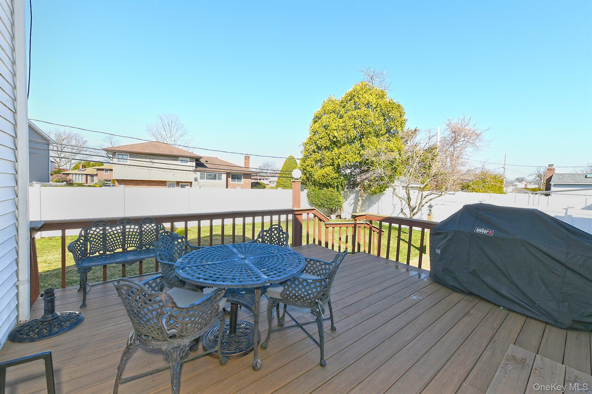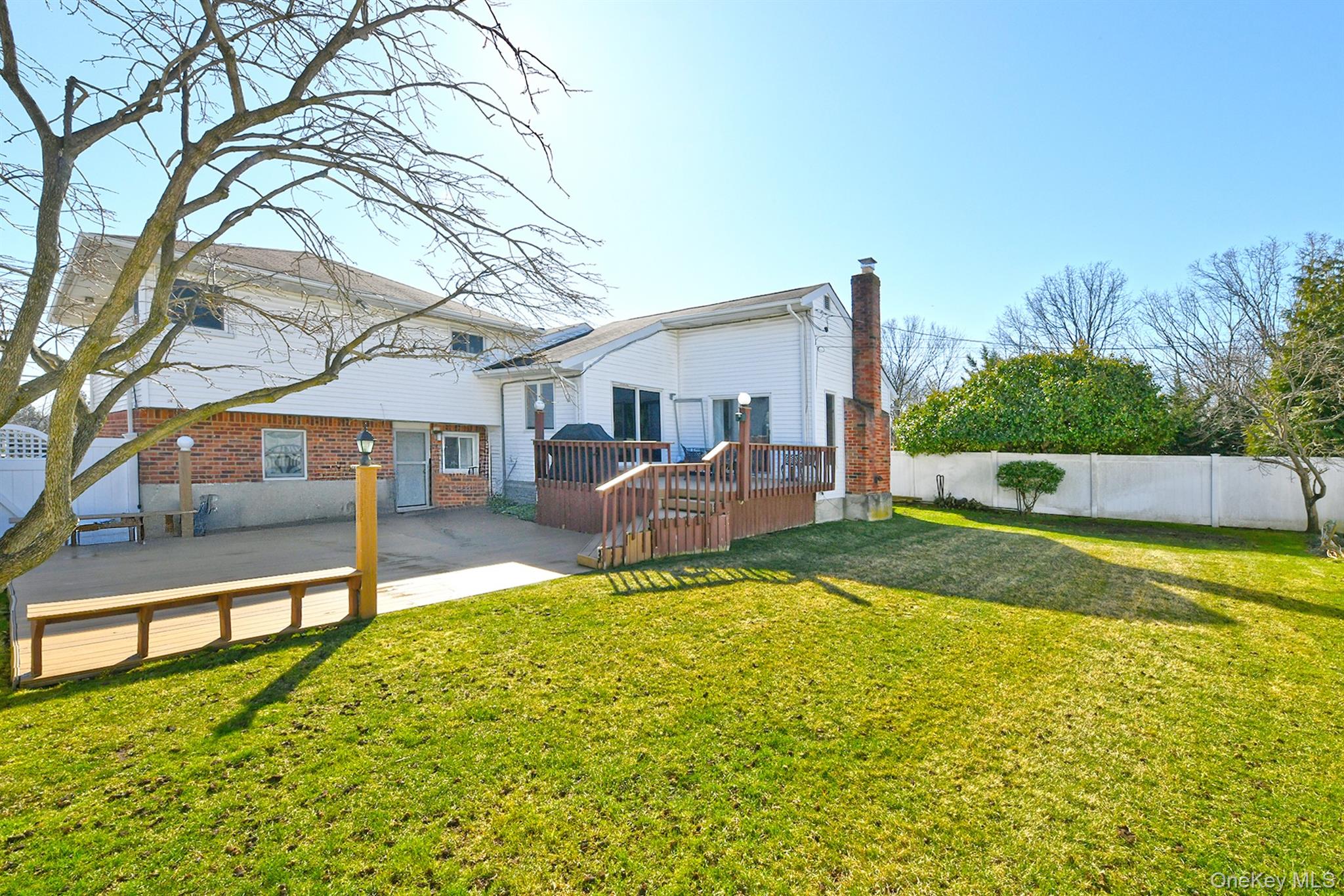 Spectacular 3 level split home with LARGE REAR EXTENSION, perfectly situated in the heart of Plainview. This house features sunny and bright living room, new expanded eat in kitchen with new stainless steel appliances. Warm and cozy extended family room with 16" soaring vaulted ceiling, 2 skylights, wood burning fireplace and sliding glass door to the private back yard. Spacious formal dining room, updated full baths, hard wood floors, Andersen windows, Hi-Hats through out, new hot water tank. Additional highlights include magnificent 2 tiers deck, inground sprinklers, garage(as is), new driveway. Well maintained fenced property is ideal setting for outdoor entertaining or quiet evening retreats. Located in the award winning Plainview-Old Bethpage school district, Stratford elementary school and POB middle school. This home combines comfort and convenience. Don't miss out!