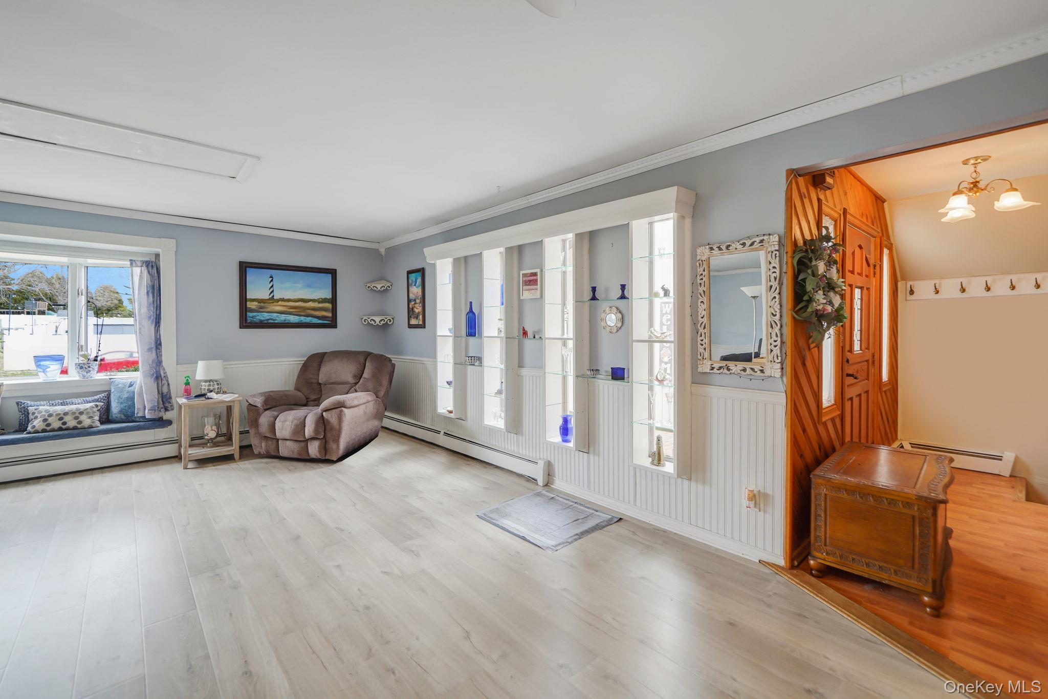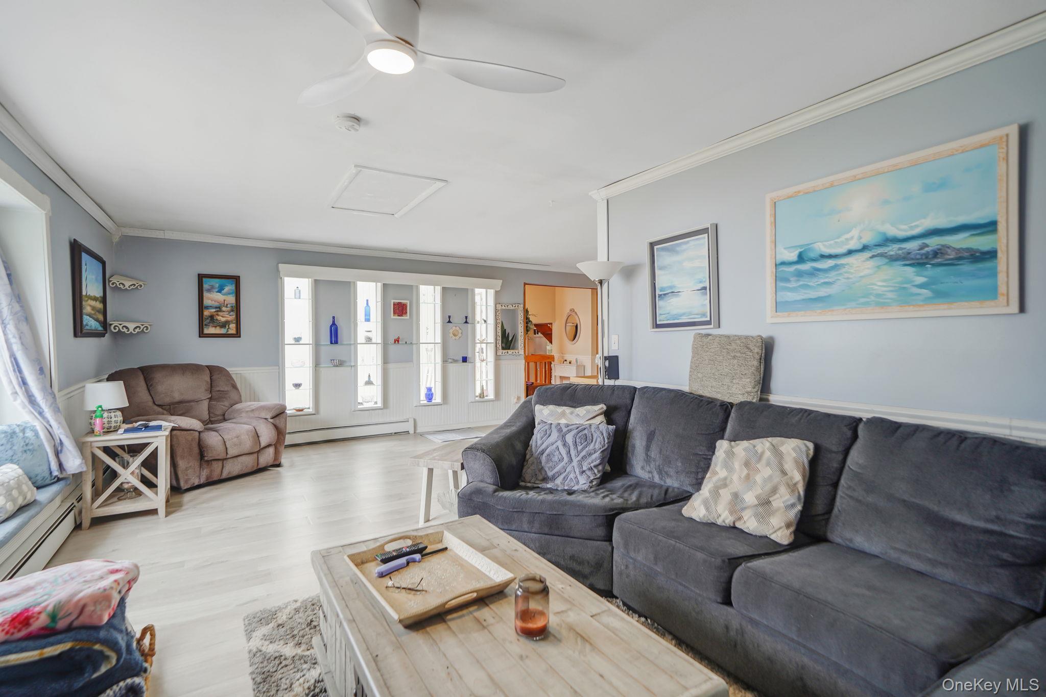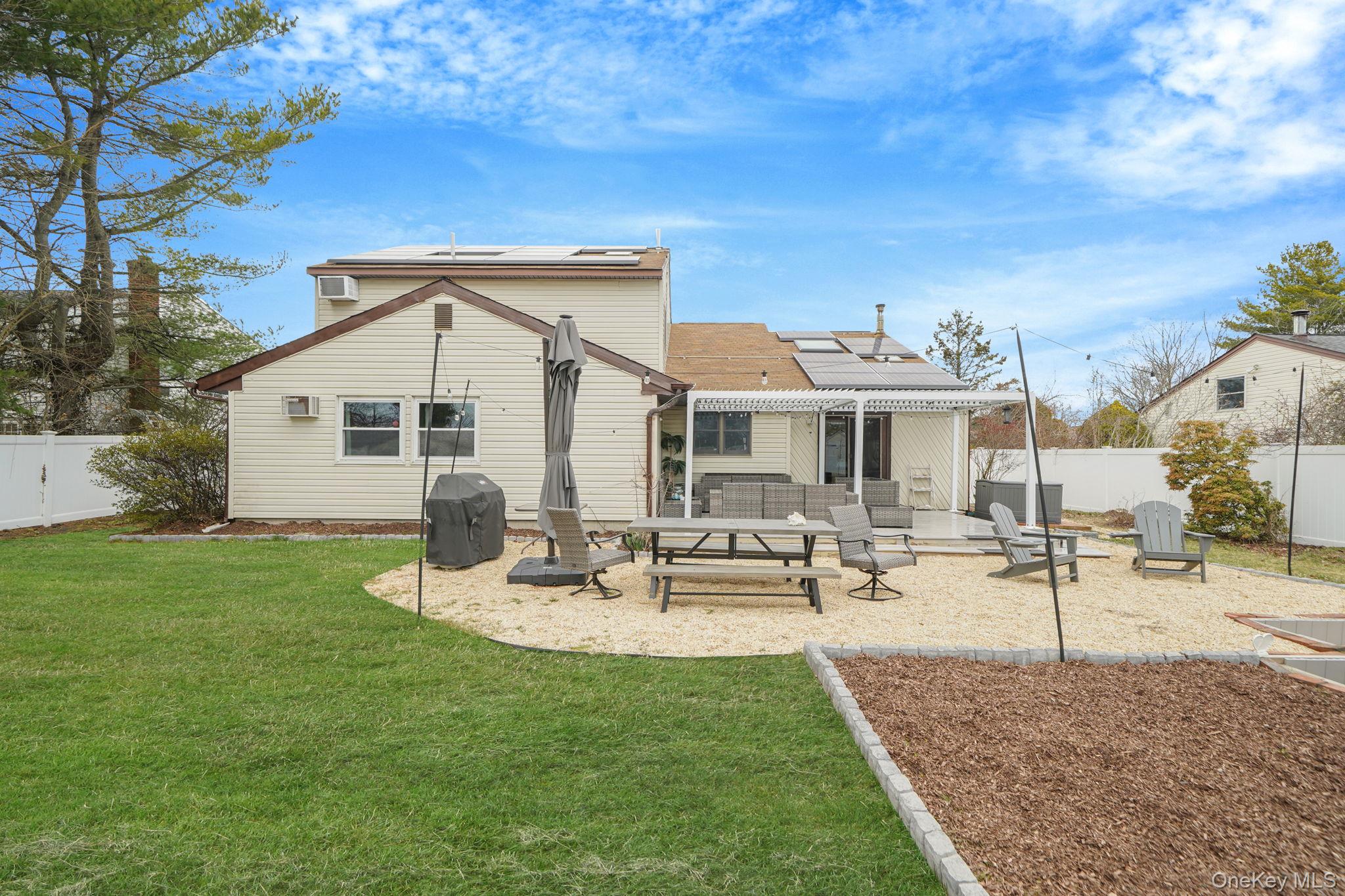 Welcome to 99 Rustic Avenue in Medford, a magnificent and spacious contemporary home offering approximately 2, 400 square feet of beautifully designed living space on a generous . 28-acre lot, perfectly nestled in a quiet community! This sprawling 4-bedroom, 3-bath home is filled with natural light from the moment you step inside! The expansive living room features a beautiful bay window, beadboard trim, crown molding, and an airy, open feel that makes everyday living and entertaining effortless. The spacious eat-in kitchen is complete with stainless steel appliances, a breakfast peninsula, ample cabinetry, and seamless flow into the formal dining room with soaring ceilings and sliders to your back deck! Designed with flexibility in mind, this home features TWO primary en-suites, making it the perfect setup for multi-generational living. The main level primary offers a spacious layout with a WIC and full bathroom. Upstairs, the second primary en-suite is truly impressive, featuring French doors, an oversized bedroom with a seating area, vaulted ceilings, and a beautifully updated full bathroom with a dual vanity and walk-in shower. The versatile loft offers the ideal space for a home office, den, or potential fifth bedroom! Step outside to your private backyard retreat set on . 28 acres, designed for entertaining and relaxation. Enjoy a spacious Trex deck with a new hurricane-rated pergola, PVC fencing, a cozy firepit area, two sheds for ample storage, and beautiful cherry blossom trees that enhance the serene setting. Additional highlights include underground utilities for added peace of mind, solar panels for controlled electricity costs, a 2019 Peerless oil burner, Burnham hot water heater, new Roth oil tank, newer windows throughout, and a one-car garage! The home is also connected to public sewers—an added bonus for convenience and ease. With its generous layout, thoughtful updates, and incredible indoor-outdoor lifestyle, this home is truly move-in ready and offers the perfect blend of comfort, space, and functionality. Don’t miss the opportunity to make 99 Rustic Avenue your next home!
